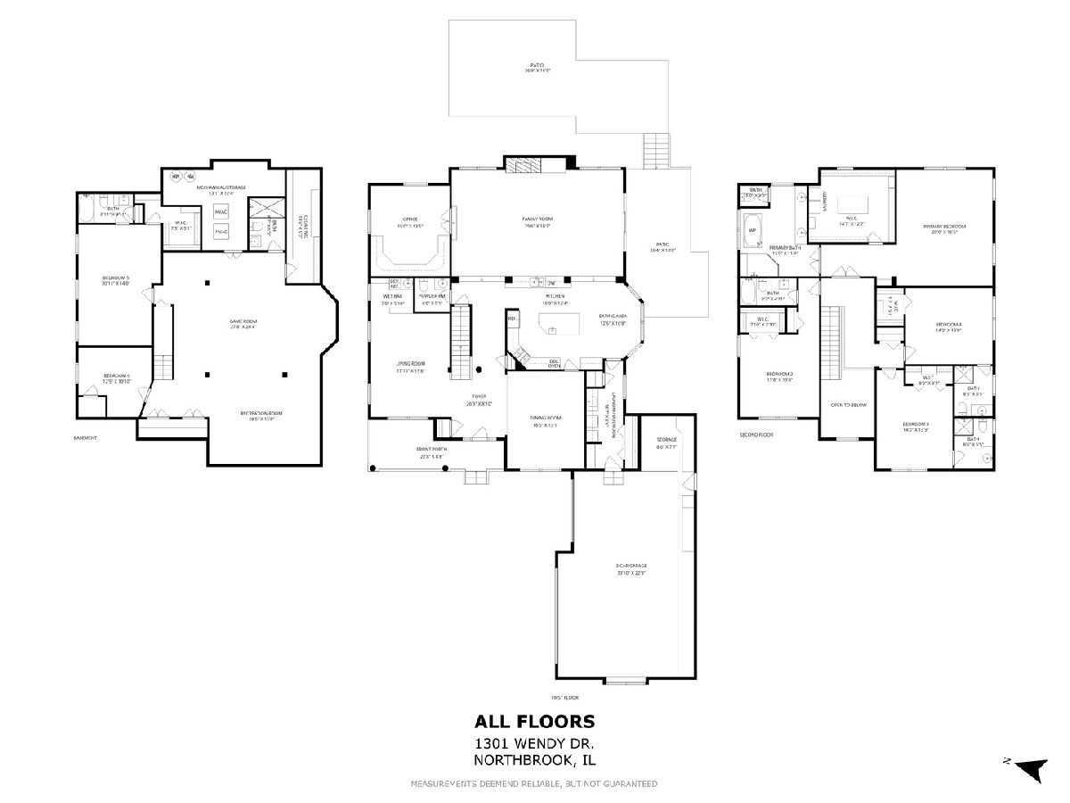 Prime East Northbrook cul-de-sac location just blocks from town, train and expressways to downtown Chicago! Move right into this fabulous updated 4,050 square foot 6 bedroom, 6.1 bath home with coveted 3+ car garage ideally nestled on a tranquil, tree-filled street in one of Northbrook's most desirable locations. A pretty paver driveway and inviting front porch provide a warm welcome to this exceptional home featuring 9'+ ceilings, an outstanding floor plan, renovated gourmet kitchen, main floor office, five ensuite bedrooms, up and down laundries, an enormous finished lower level and three wonderful outdoor entertainment areas. Step into the gracious foyer with attractive turned staircase which opens to the spacious living room, perfect as a second family room or additional office, complete with built-in bar, or to the banquet-sized formal dining room designed for hosting large gatherings with ease. The gorgeous all-white kitchen with striking granite counters and backsplash features stainless appliances, a large center island with second sink and a sunny bayed eating area that opens seamlessly to the oversized 30' x 18' great room with floor-to-ceiling built-ins and inviting fireplace. Glass sliders lead to the backyard retreat where mature trees and flowering perennials provide beautiful privacy year-round. Three interconnecting paver patios offer wonderful spaces to entertain, dine, relax or gather around the built-in outdoor fireplace. Adjacent to the family room, French doors open to the main floor office/study featuring two custom built-in desks and bookcases, perfect for studying or working remotely. There are six bedrooms in total. Four are located on the upper level and each has its own private bath, while two additional bedrooms are located in the finished lower level. Double doors open to the private foyer entrance of the primary suite which is truly a retreat unto itself. The suite includes a sitting area, luxurious spa-like bath with Jacuzzi tub, double vanities with make-up center, oversized glass-enclosed shower with built-in seating, separate lavatory and an exceptional walk-in closet with large double-sided center island and full-size laundry facilities. Fun and games can be enjoyed in the huge lower level offering a large recreation area and an XL game space that can easily accommodate both full-sized pool and ping pong tables. This level also includes two additional bedrooms (one ensuite), a sixth full bath and extensive storage including a walk-in cedar closet. The main floor mud room includes the second laundry, pantry, double closets and built-in seating and is conveniently located just off the attached 3+ car garage which features epoxy-coated flooring, two EV outlets, a large storage alcove and a separate entrance to the outside. Recent improvements include fresh interior and exterior paint, refinished hardwood floors, new LED recessed lighting and updated electrical throughout the main and lower levels (2026), new roof and gutters (2024) and two new hot water heaters (2024).With over 4,000+ square feet of thoughtfully designed living space and wonderful indoor and outdoor areas for everyday living and entertaining, this exceptional home is truly a special place to enjoy now and forever.