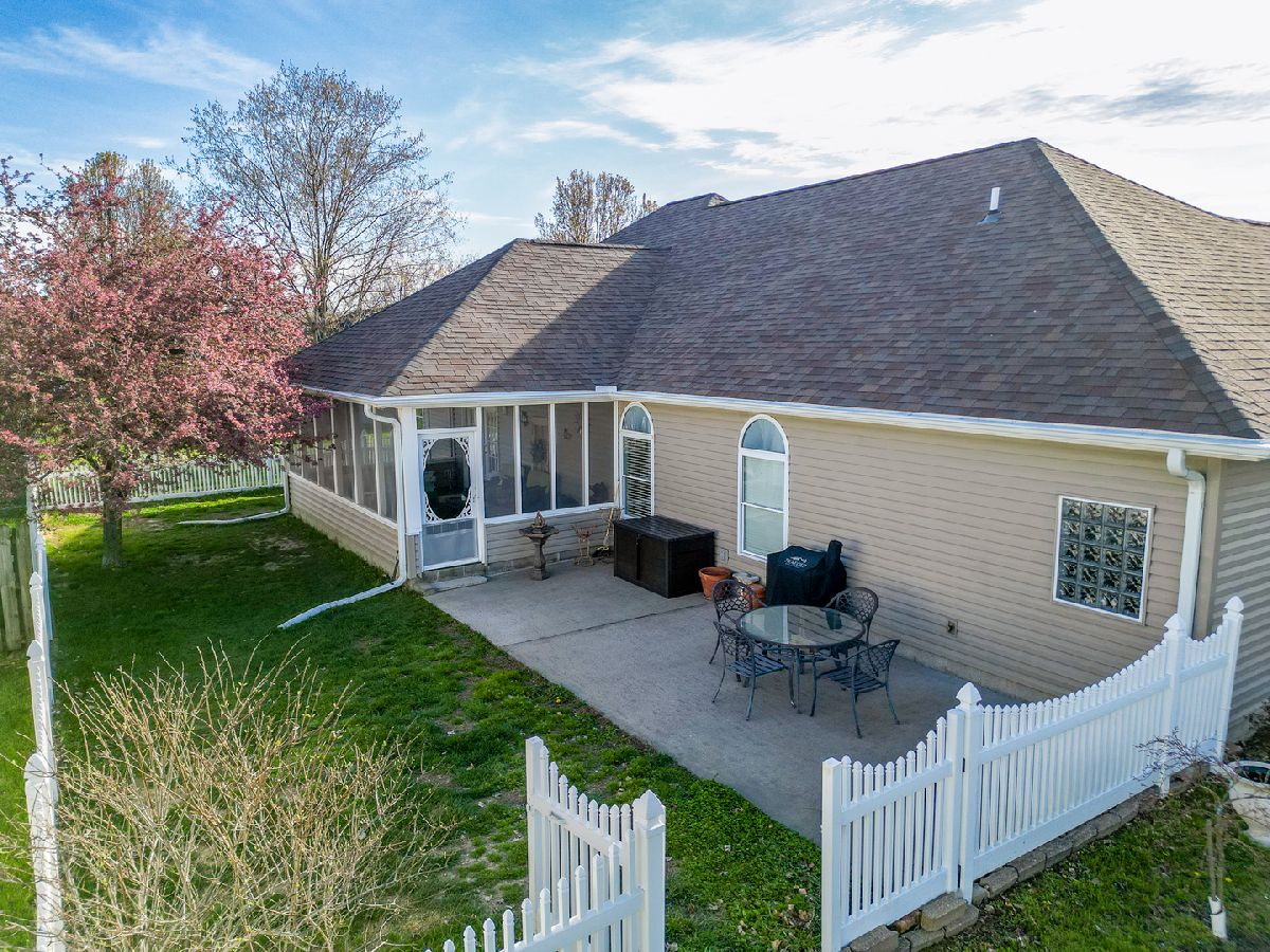 This immaculate, extremely well-maintained home is truly move-in ready and has been freshly painted throughout. Major updates completed in 2021 include a new furnace (described by the installer as a "Cadillac"), roof, water heater, flooring, and kitchen countertops - providing peace of mind for years to come. Additional insulation has been added to improve energy efficiency and help reduce utility costs. The home features a desirable open-concept layout with a spacious living room and a comfortable, well-designed kitchen offering abundant cabinetry, a center island, and a dining area perfect for everyday living or entertaining. A large pantry provides exceptional storage space. The split floor plan ensures privacy, with a generous master suite that includes a large bedroom, ensuite bath and 2 walk-in closets. An additional office space offers flexibility for working from home or relaxing. Enjoy outdoor living in the screened porch or host gatherings on the patio - ideal for grilling and spending time with family and friends. The attached 2 car garage includes a dedicated mechanical room for added convenience. Situated on a corner lot in a quiet cul-de-sac, this beautiful home is located in one of Marion's most desirable subdivisions. A truly exceptional property you won't want to miss!