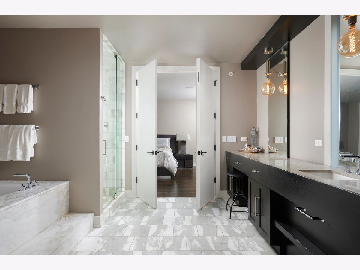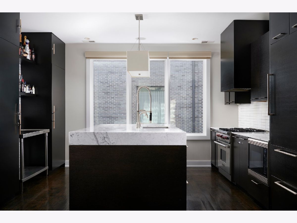 This unique 3 bed/3 bath Lincoln Park triplex has its own entrance with a private elevator and attached 2 car garage. A generous setback from Diversey Parkway introduces the property through a courtyard-an impressive entry defined by clean architecture, timeless materiality, and convenience. Inside espresso-hued hardwood floors, designer lighting, and curated wallcoverings establish a polished aesthetic. The ground floor seamlessly connects the front door, elevator, and the garage. The main level is anchored by a striking, open-concept living and dining space framed by floor-to-ceiling windows and a 16' x 5' balcony. A sculptural fireplace defines the living room while keeping the space visually open, flowing naturally toward the dining area and the impeccably designed kitchen. The floor-to-ceiling custom cabinetry, Sub-Zero and Wolf appliances-including a six-burner range-pair with marble countertops and backsplash. A matching dry bar with floating shelves elevates the room, offering both function and visual impact. This level also includes a full porcelain bath and a spacious bedroom that's currently styled as a home office. The top floor has a generous primary suite featuring two walk-in closets and an indulgent, marble bath with a dual vanity, a makeup station, an oversized tub, heated floors, and a glass steam shower. A second en-suite bedroom with two closets and a 19' x 10' terrace complete the top level. Additional callouts include Lutron-controlled lighting and window treatments, a laundry room on the main level, and the security of a gated driveway. Located in Lincoln Park-one of Chicago's most coveted neighborhoods-this property is close to refined dining, local boutiques, and parks offering a lifestyle as distinguished as the home itself.
