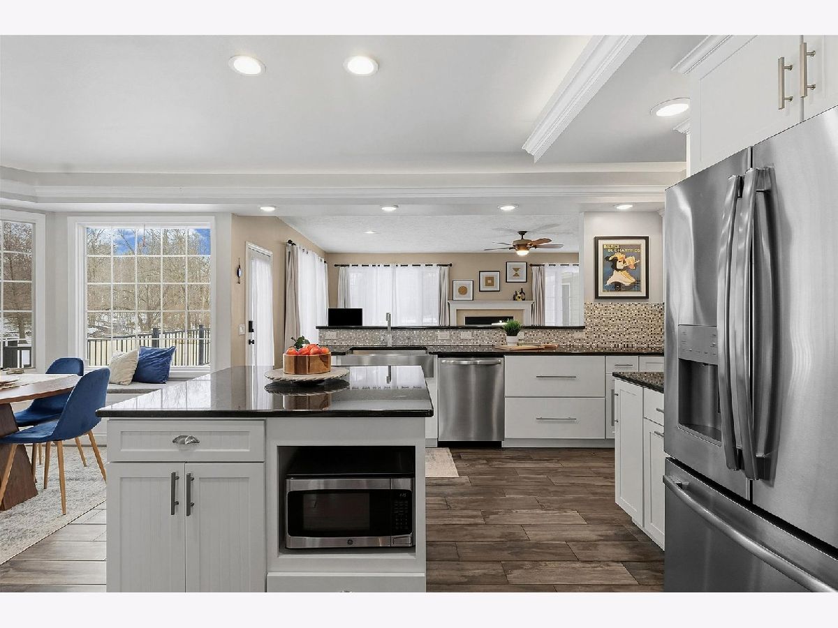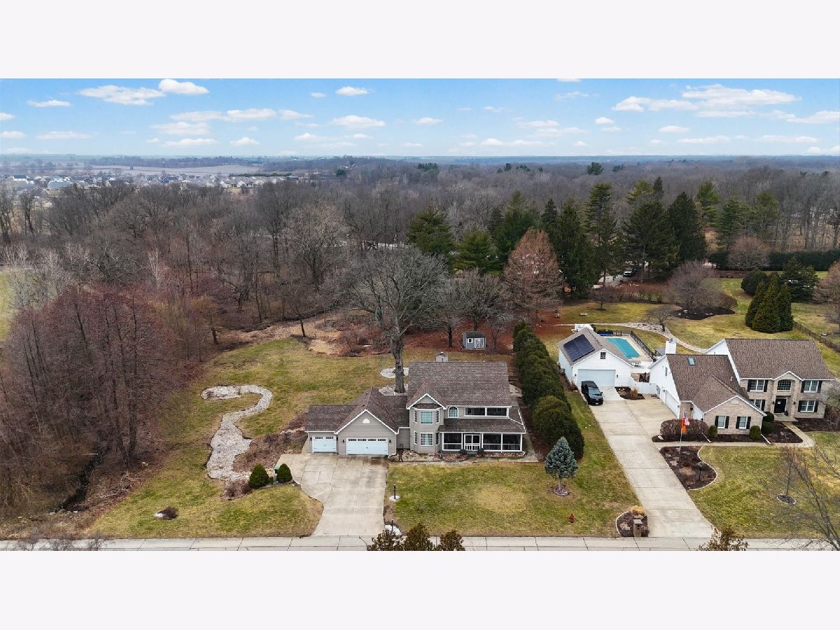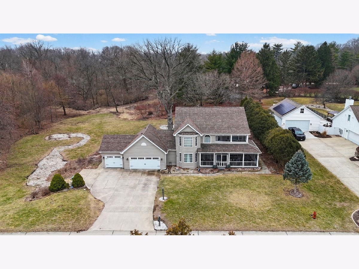 Located in the highly sought-after Oak Creek subdivision of Mahomet, this beautifully updated home sits on a lot exceeding one acre and offers a rare combination of space, privacy, and mature surroundings within town limits. Oak Creek is one of Mahomet's most desirable neighborhoods, known for its larger lots, established trees, and timeless architecture. A two-story foyer welcomes you into a flexible layout featuring five bedrooms and four and a half bathrooms, including a first-floor bedroom and full bath ideal for guest or in-law use. A thoughtfully designed addition, currently used as a workout room, includes a storm shelter and directly connects to the main level, adding exceptional versatility and further supporting in-law suite potential. The kitchen has been extensively remodeled with high-end finishes and opens seamlessly to a spacious breakfast nook and the living room, which features a gas log fireplace and expansive windows lining the back of the home, offering peaceful views of mature trees, abundant wildlife, and a creek running through the property. Upstairs, the owner's suite serves as a private retreat with a refinished clawfoot tub, double vanity with granite countertops, a custom tiled walk-in shower with rain showerhead, and the convenience of a laundry room located within the suite. Three additional bedrooms and two full baths complete the upper level, with one bedroom currently used as an office that opens to an upstairs loft-style balcony, creating a unique and inviting reading or flex space. A secondary laundry hookup is located on the main level in the mudroom or drop zone. Outdoor living includes a screened second-floor porch, screened front porch, and a newer deck overlooking the expansive yard. Additional features include a three-car garage, shed with electricity, Pella windows throughout, newer roof and mechanicals, and a pre-inspection completed for buyer convenience.