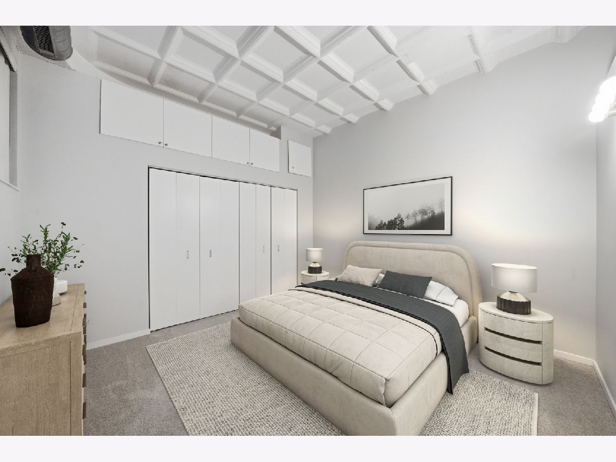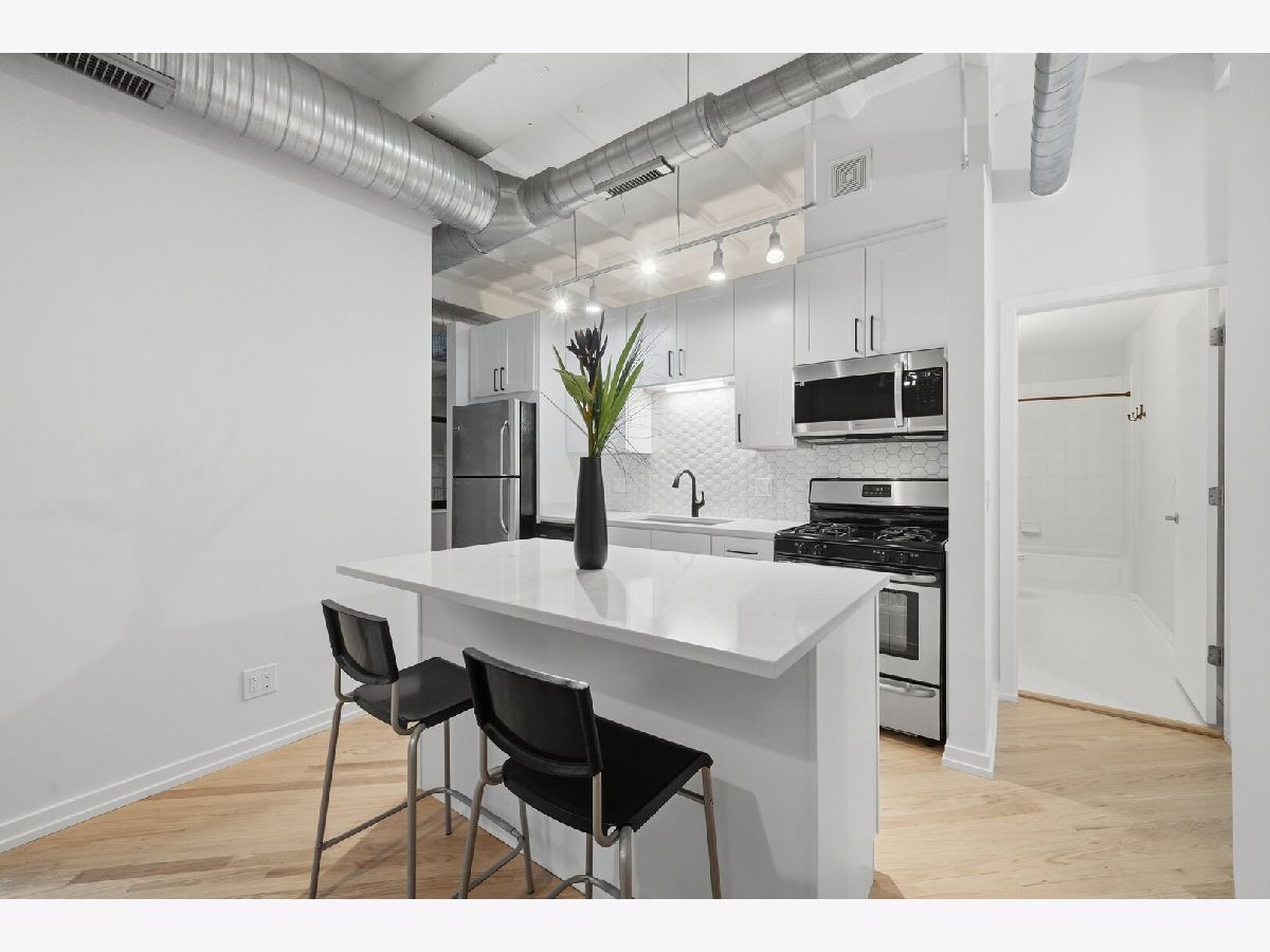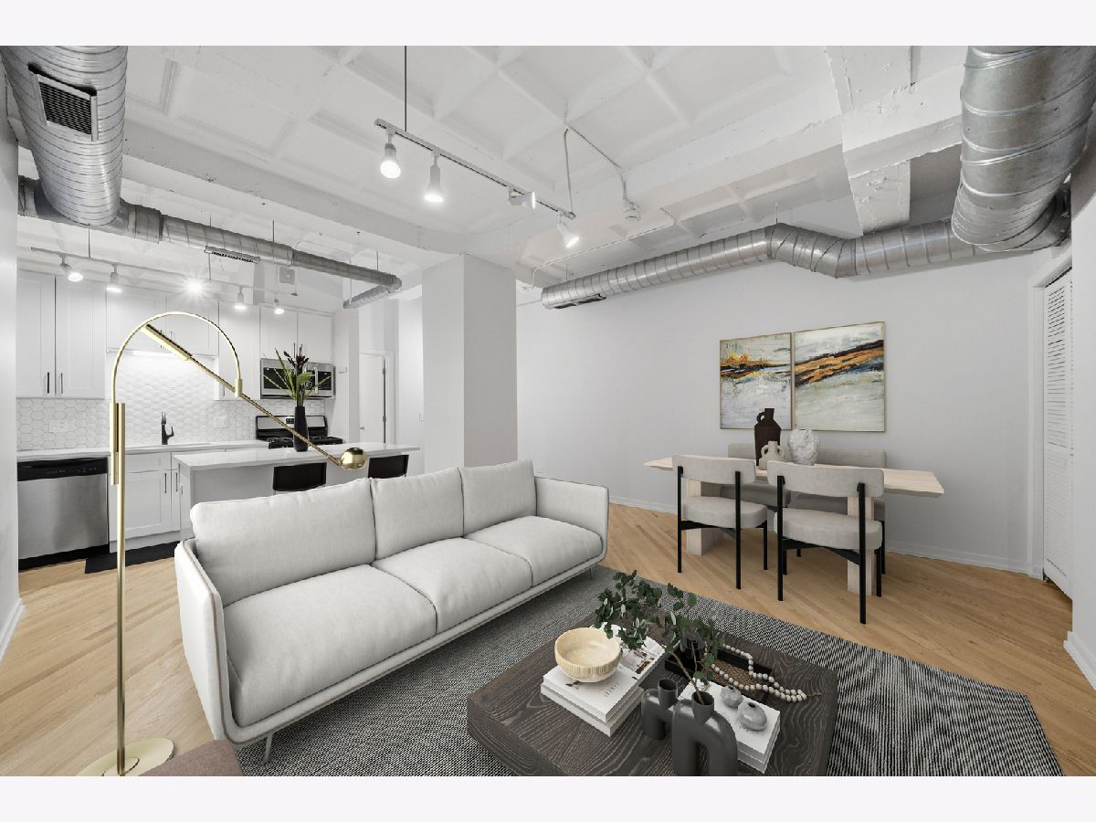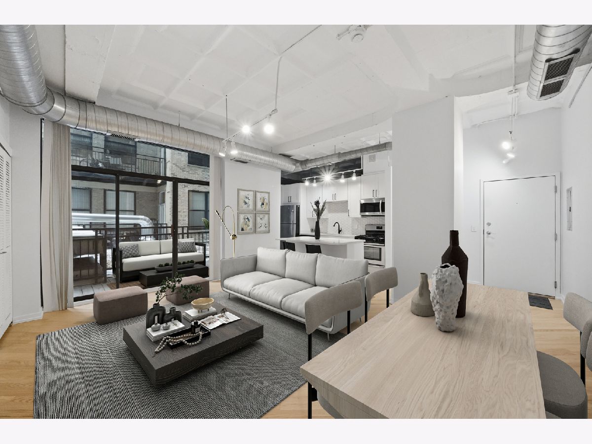 No cookie cutter condo here! Check out this chic and charismatic 800 Sq Ft * 1 bed/1 bath concrete loft in historic Film Exchange Lofts. Converted from Warner Bros corporate offices, this south-facing unit features 11 ft coffered ceilings, a big open concept living and dining area which flows seamlessly out to a large private patio perfect for relaxing with a cup of coffee entertaining with a glass of wine. Recent improvements and updates include: new kitchen with modern white shaker soft close cabinets and drawers, white quartz countertops, hexagon tile backsplash, deep single basin sink, with matte black faucet and kitchen hardware, refinished white oak hardwood floors, fresh paint throughout, new carpet in bedroom, updated lighting, new furnace (2017), and upgraded in-unit washer/dryer and microwave. FEL is a professionally managed boutique elevator building with extra storage and bike storage included. Unbeatable location in the heart of the South Loop, baby steps from tons of locals favorite restaurants, Trader Joe's, Grant & Millennium Parks, Lakefront Bike/Jogging Trail, Museum Campus, and easy CTA and expressway access. One heated garage parking spot offered for $25K additional.