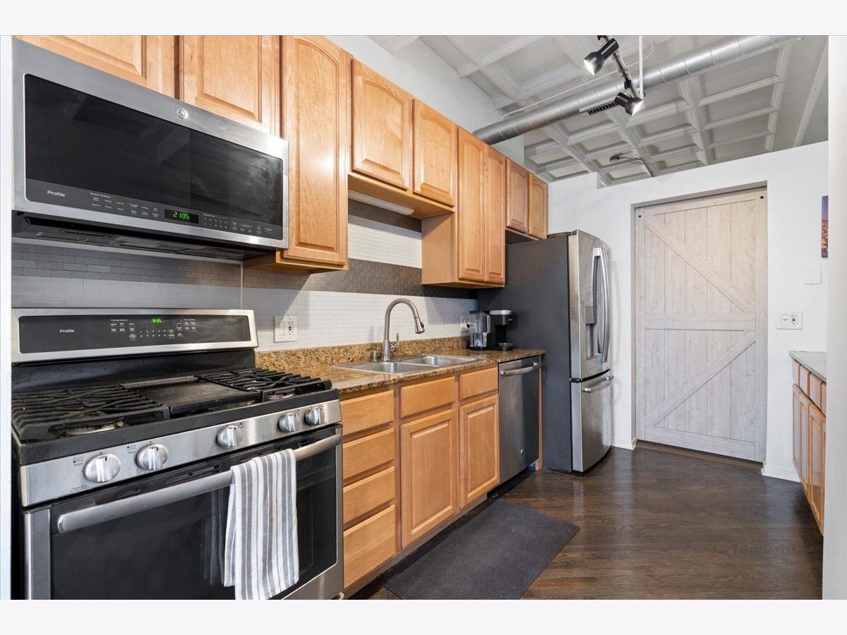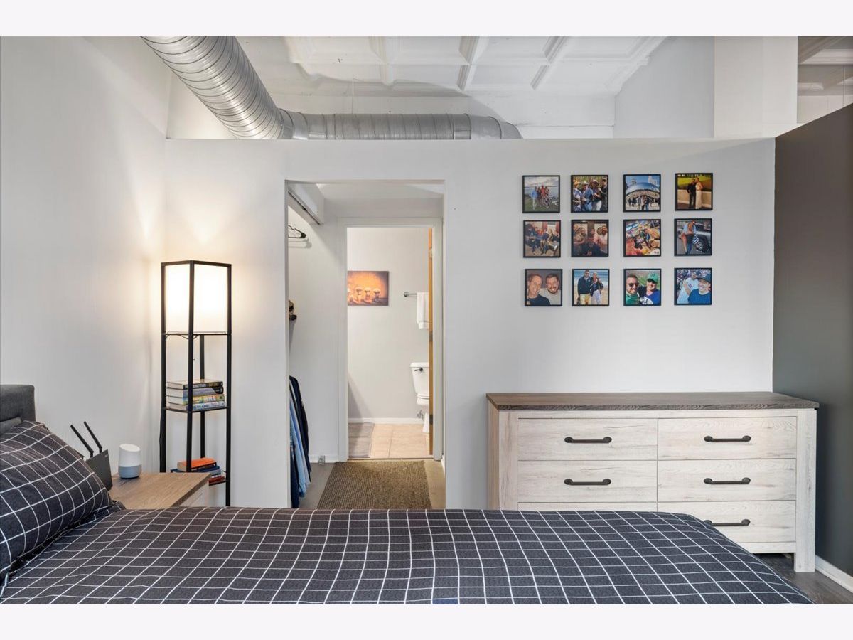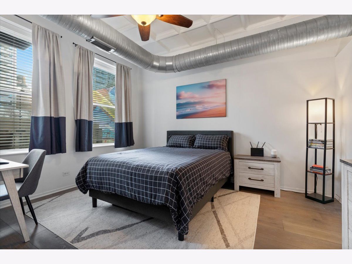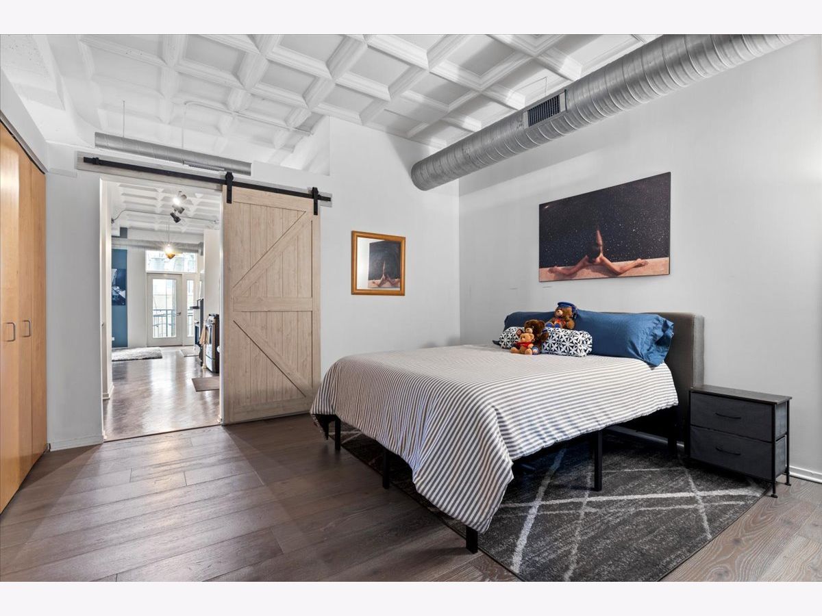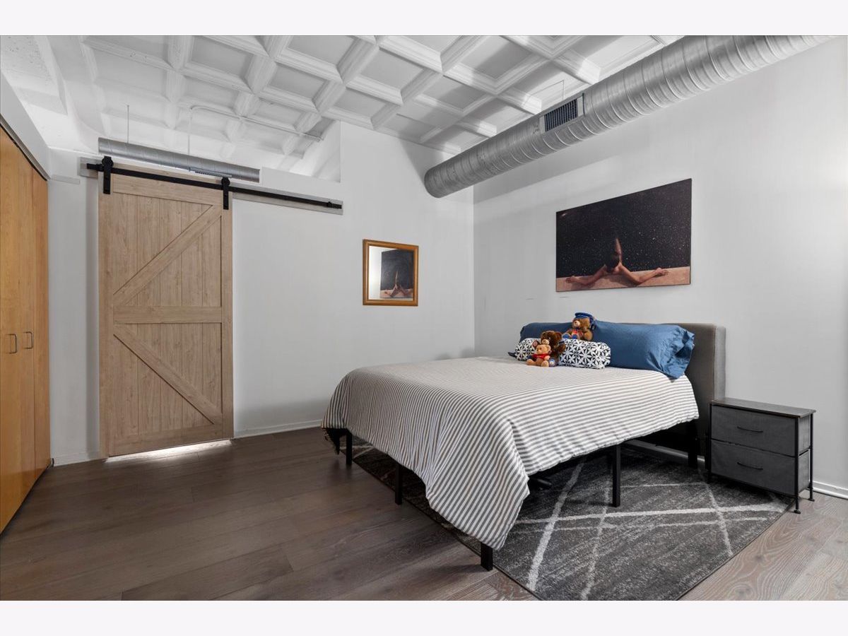 Bright and sunny split 2 bedroom 2 full bath at historic art deco Film Exchange Lofts built originally for Warner Brothers. 11 foot Coffered ceiling, gas fireplace, diagonal hardwood floors, huge windows and balcony - kitchen with stone counters, stainless steel appliances and over-sized island - Separate utility room with stack/washer dryer. Primary bedroom has walk-in closet - Double bowl vanity and separate shower in primary bath. Prime parking space #23 on first level of heated garage additional $35K. Investor friendly and no rental cap. Perfect location. Close to all public transportation, City parks, playgrounds, South Loop Elementary, British, Old St. Marys, Daystar & Jones College Prep schools. Walk to Loop, Target, Jewel, Marianos, Trader Joes, Whole Foods, Roosevelt Collection movies, shops, museums, Grant/Millennium Parks and Lake Michigan. Easy access to all highways 90/94, 55, 290 and Lake Shore Drive