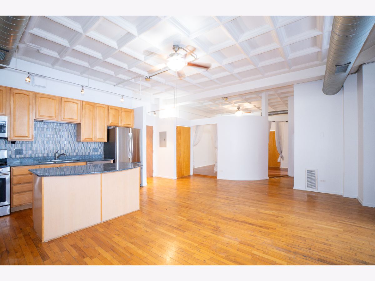 Phenomenal opportunity to call this rarely available 06-tier one-bedroom at the historic Film Exchange Lofts home! This spacious home features soaring 11-foot ceilings, hardwood floors, and an open kitchen with breakfast bar and in-unit laundry. Enjoy a private balcony with sunny southern exposure. Additional storage included, plus heated indoor garage parking available for $30,000. Incredible value in a prime location-just steps to public transit, Whole Foods, Target, Jewel, downtown, and the lake.