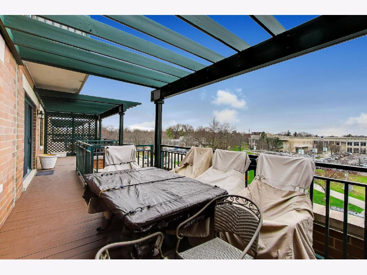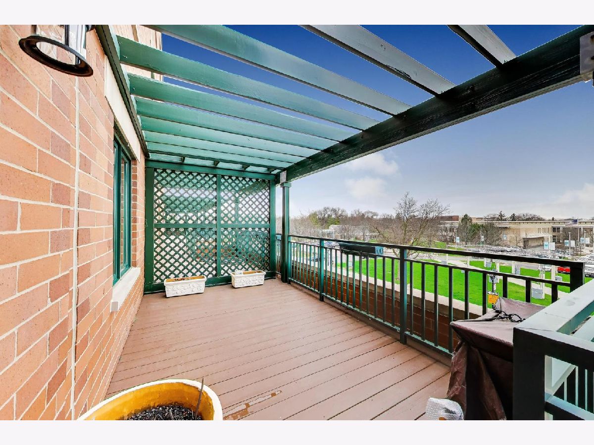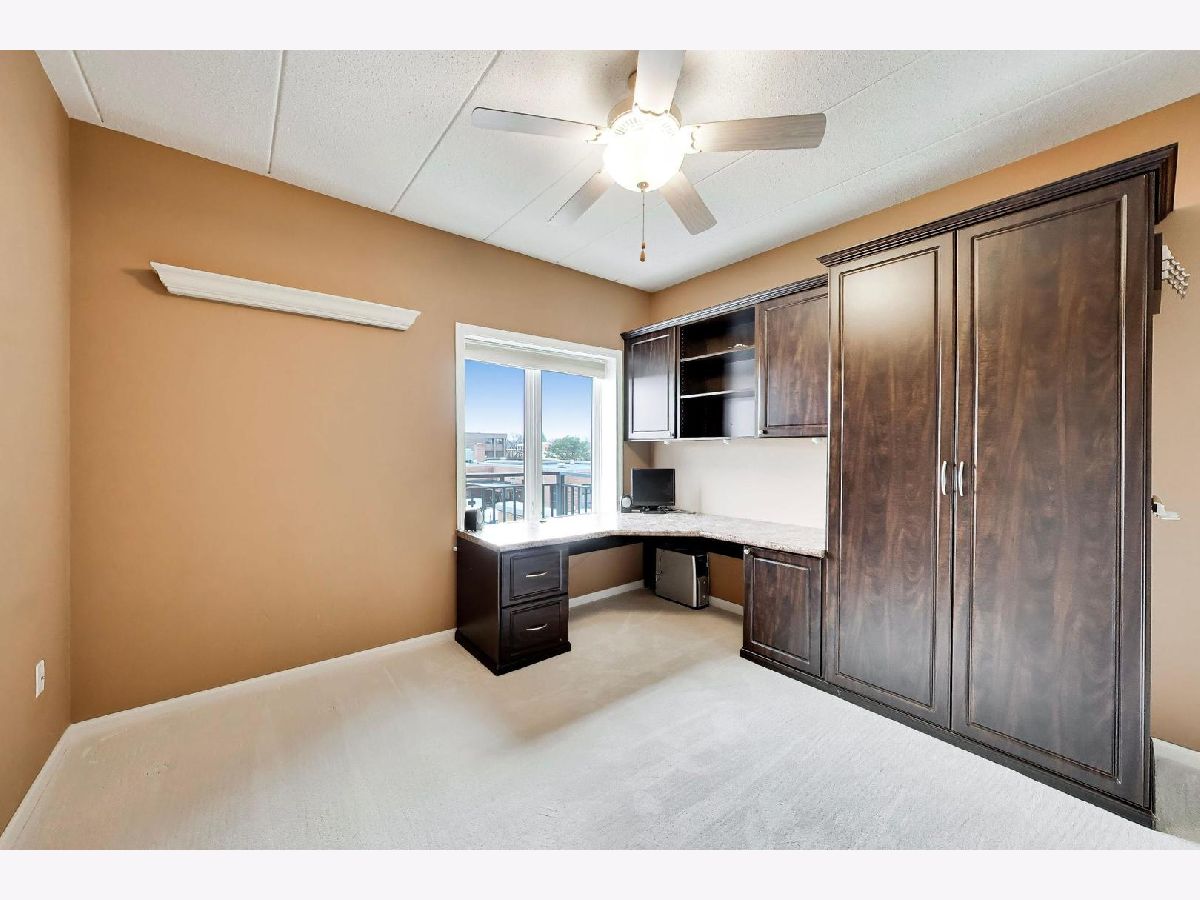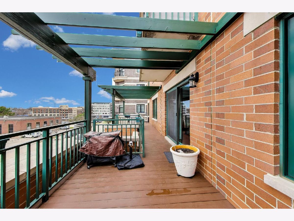 Nicely updated 2BR/2BA plus DEN end unit in Museum Square with 2 heated garage spaces! Amazing oversized 23 ft wide terrace facing library and Wilder Park! NEW carpet 2025! Heated Floors! Sound-proof windows! Eat-in kitchen with redone cabinets, backsplash and appliances. Primary suite features remodeled bath with new vanity, separate shower, whirlpool tub; gorgeous organizers in walk-in closet. Second bedroom features custom built-ins perfect for a home office! Cozy den with fireplace! Storage cage! Two Heated Garage spots! Perfect location in downtown Elmhurst! Across from Library and Wilder Park! Walk to train! Only 1 mile to Prairie Path!