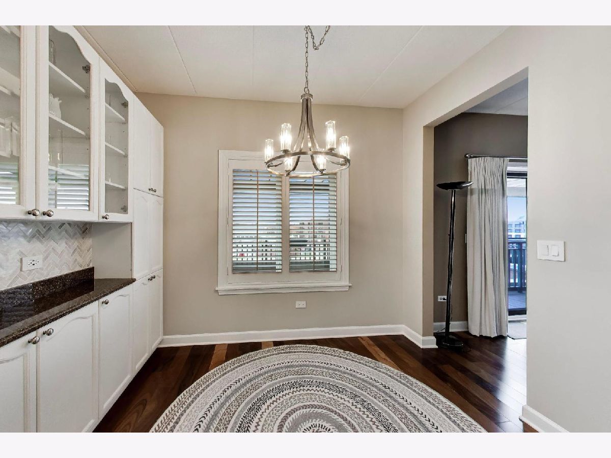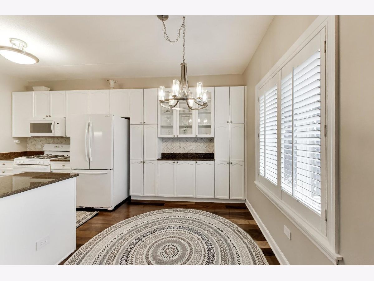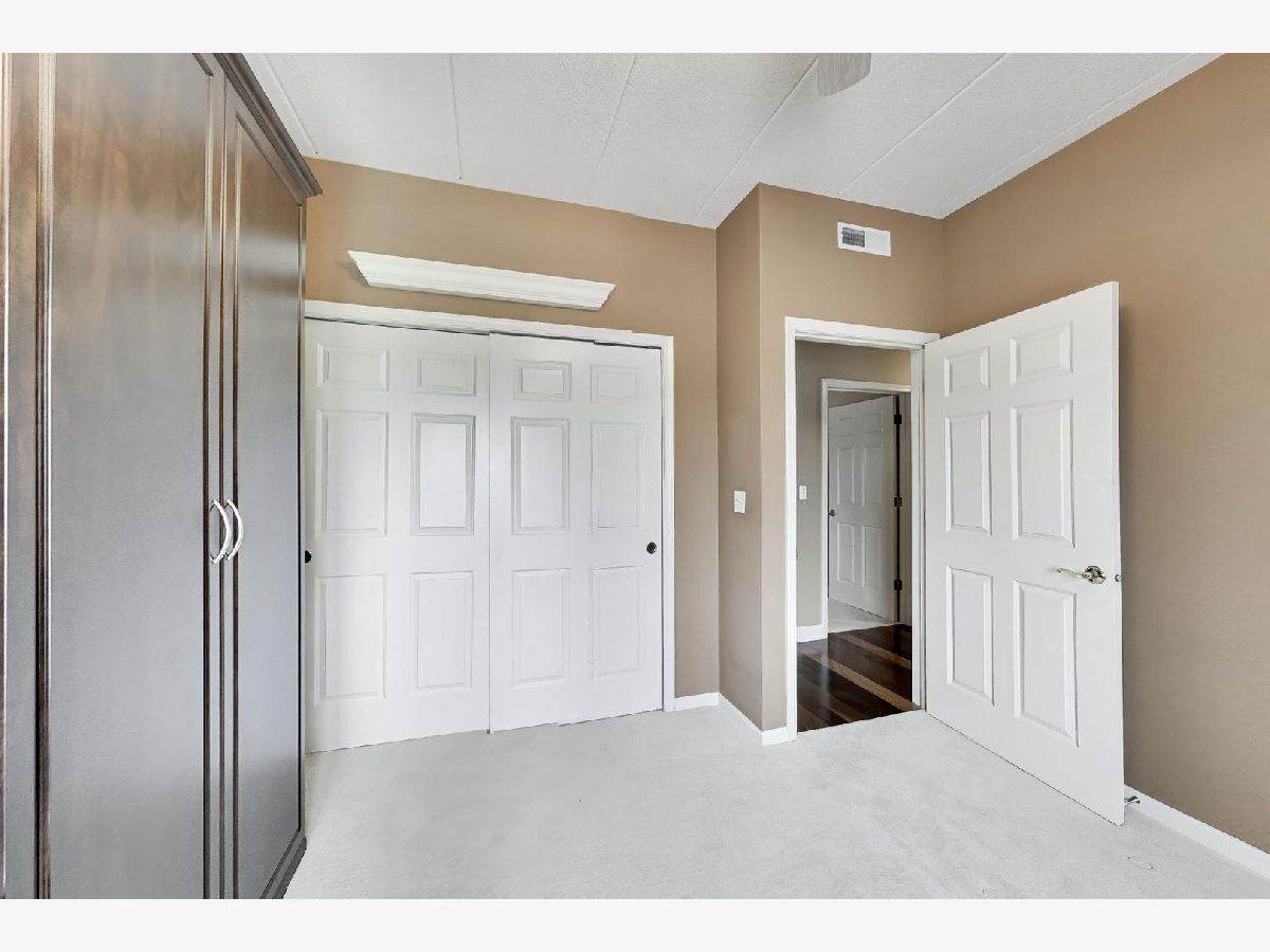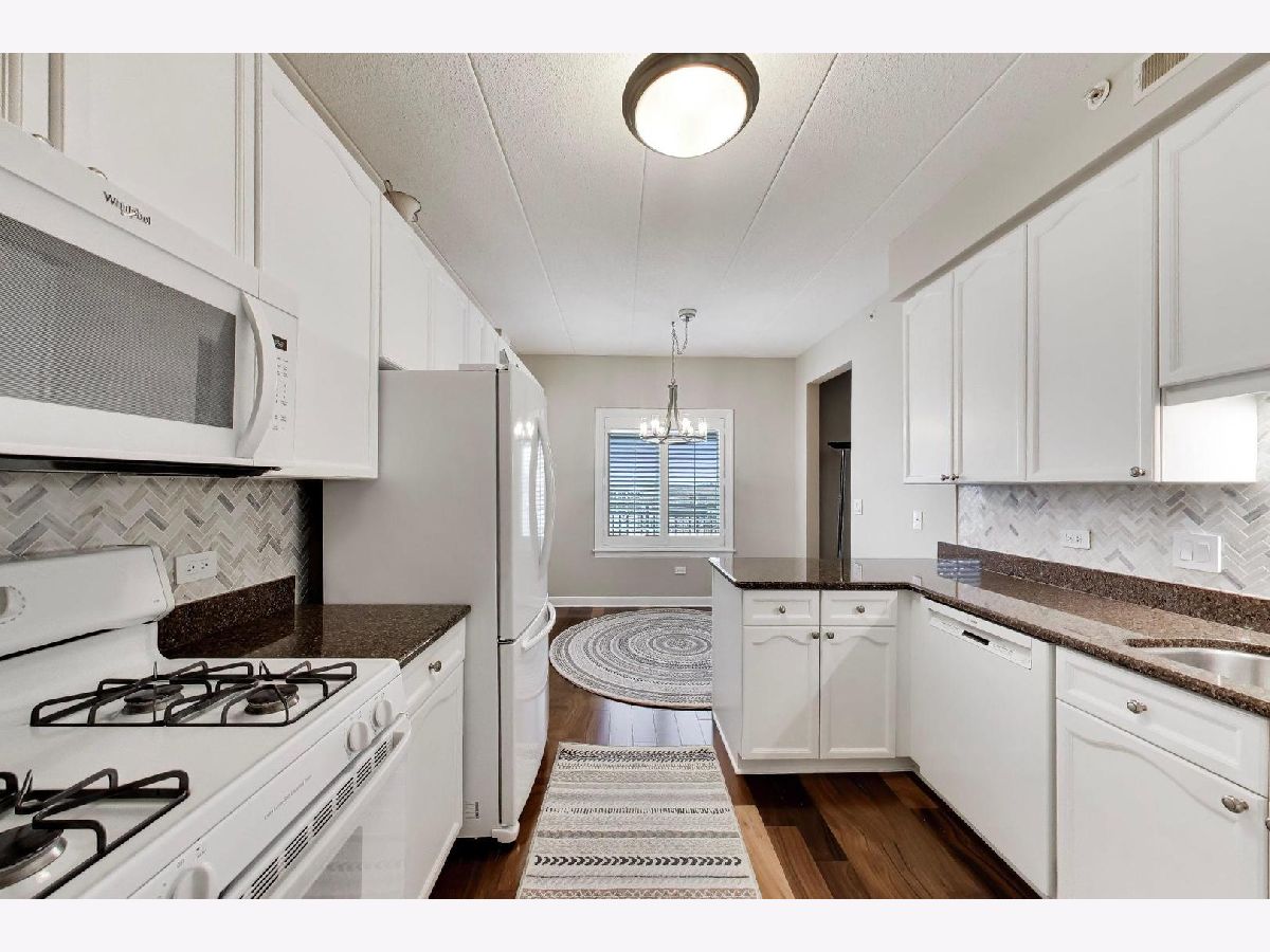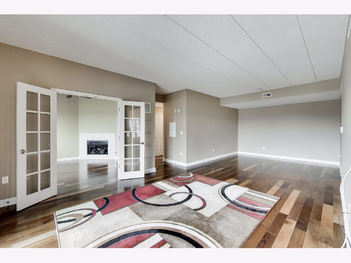 Nicely updated 2BR/2BA plus DEN end unit in Museum Square with 2 heated garage spaces! Amazing oversized 23 ft wide terrace facing library and Wilder Park! NEW carpet 2025! Heated Floors! Sound-proof windows! Eat-in kitchen with redone cabinets, backsplash and appliances. Primary suite features remodeled bath with new vanity, separate shower, whirlpool tub; gorgeous organizers in walk-in closet. Second bedroom features custom built-ins perfect for a home office! Cozy den with fireplace! Storage cage! Two Heated Garage spots! Perfect location in downtown Elmhurst! Across from Library and Wilder Park! Walk to train! Only 1 mile to Prairie Path!