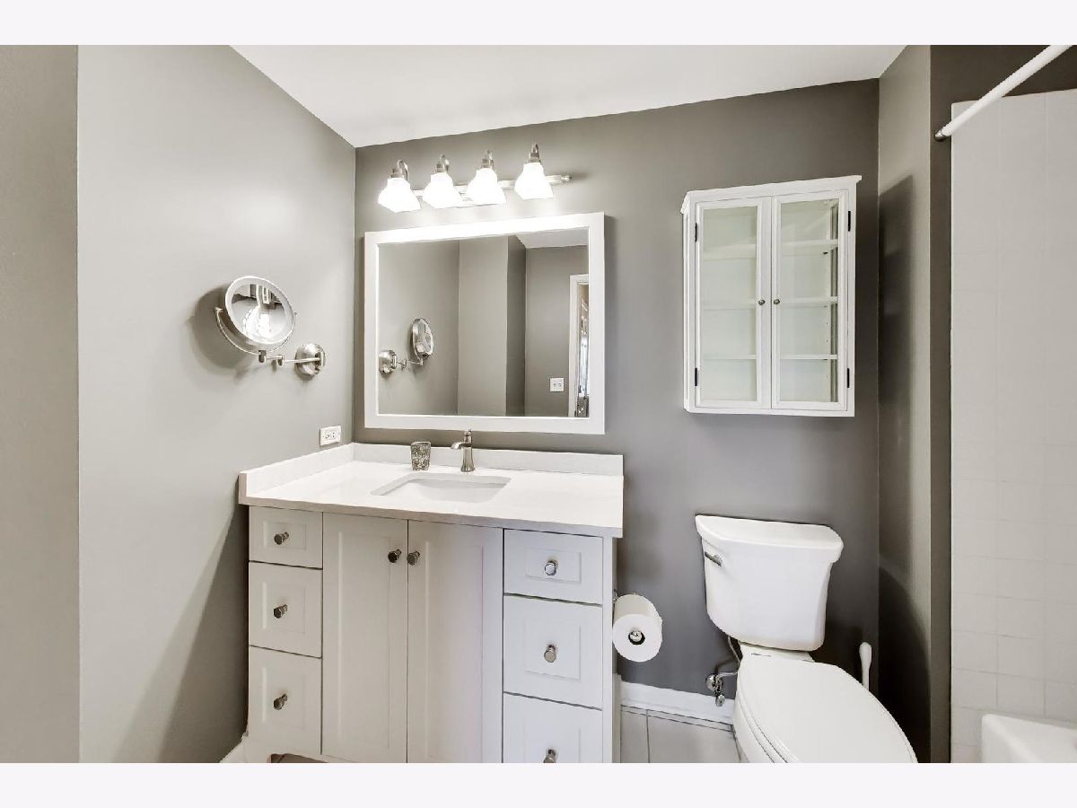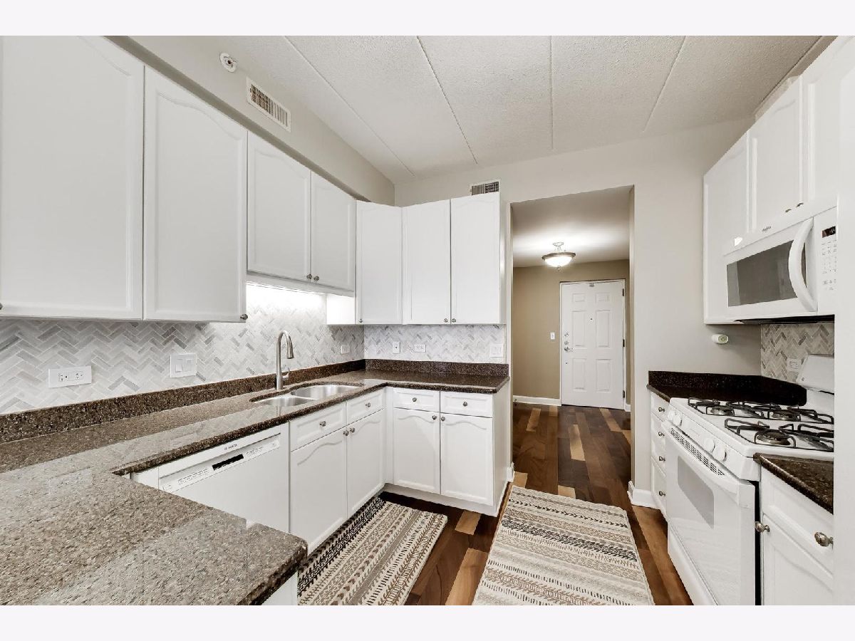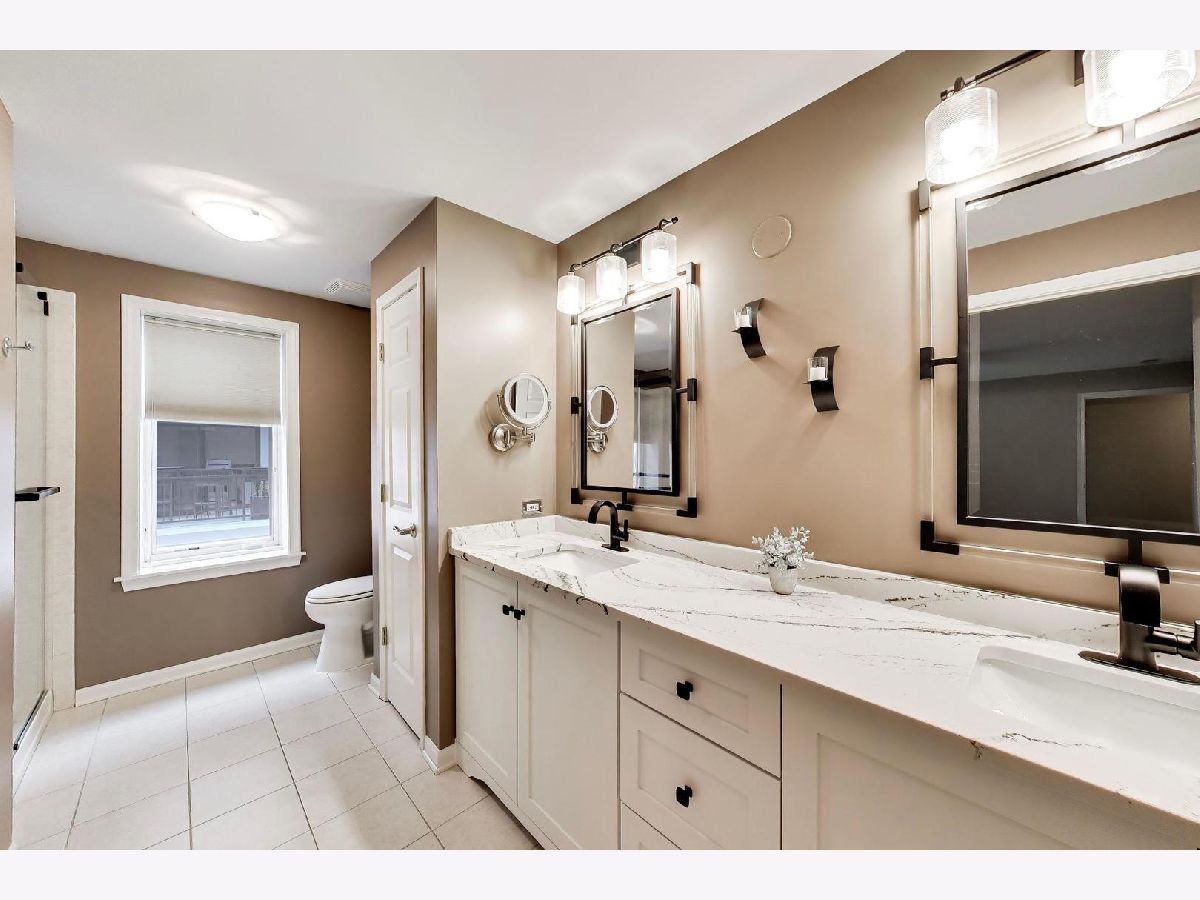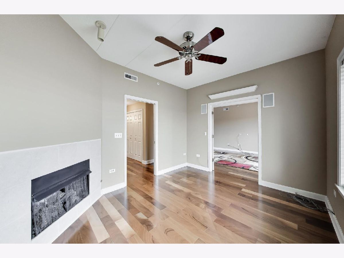 Nicely updated 2BR/2BA plus DEN end unit in Museum Square with 2 heated garage spaces! Amazing oversized 23 ft wide terrace facing library and Wilder Park! NEW carpet 2025! Heated Floors! Sound-proof windows! Eat-in kitchen with redone cabinets, backsplash and appliances. Primary suite features remodeled bath with new vanity, separate shower, whirlpool tub; gorgeous organizers in walk-in closet. Second bedroom features custom built-ins perfect for a home office! Cozy den with fireplace! Storage cage! Two Heated Garage spots! Perfect location in downtown Elmhurst! Across from Library and Wilder Park! Walk to train! Only 1 mile to Prairie Path!