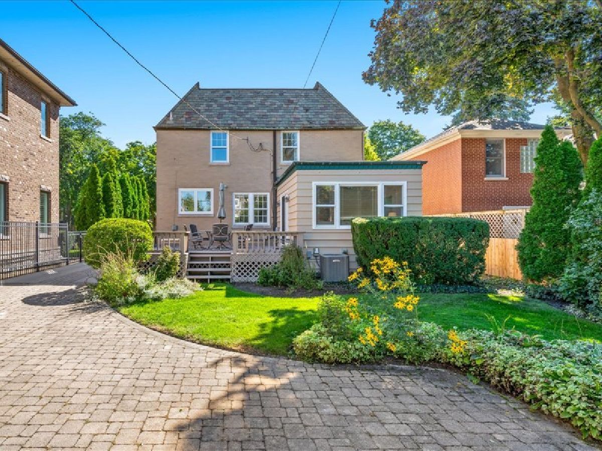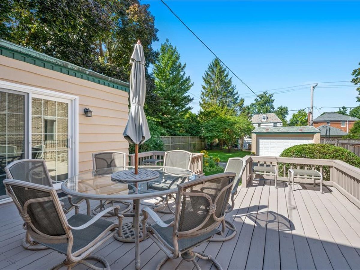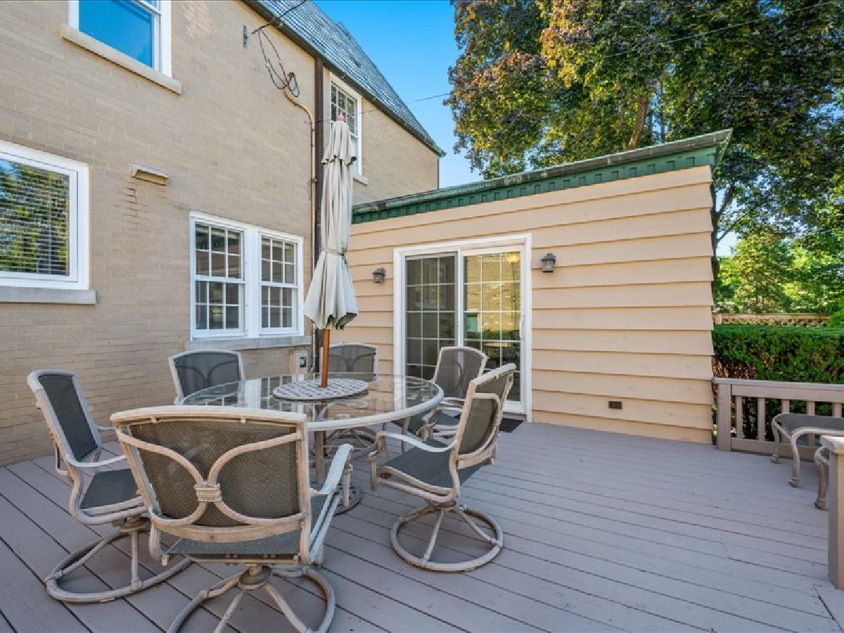 Welcome to this stunning home, just steps from everything River Forest has to offer! From the moment you walk up the bluestone pathway, you'll be impressed by the home's timeless blend of brick, stone, and glass, complemented by mature landscaping for exceptional curb appeal. Inside, the inviting foyer opens to warm hardwood floors and a bright, flowing floor plan that blends traditional charm with modern updates. Entertain with ease in the spacious formal living room, featuring a large picture window and wood-burning fireplace, or host gatherings in the formal dining room. The updated kitchen boasts 42" custom cabinetry, stone countertops, and a cozy eat-in area with additional built in storage. Perfect family room flows seamlessly with sliding glass doors that open to an oversized deck-perfect for outdoor dining and summer nights. The second level is highlighted by original handrails and offers three oversized bedrooms, each filled with natural light and hardwood floors. An updated full bath features both a walk-in shower and soaking tub, stone surround and linen. The finished lower level provides the ideal recreational space with abundant storage. Outside, the fully fenced backyard offers a serene retreat, while the 2-car garage adds convenience. All of this in a perfect walk-to-town location, just steps from top-rated schools, parks, restaurants, shops, and more. Fireplace is As Is.