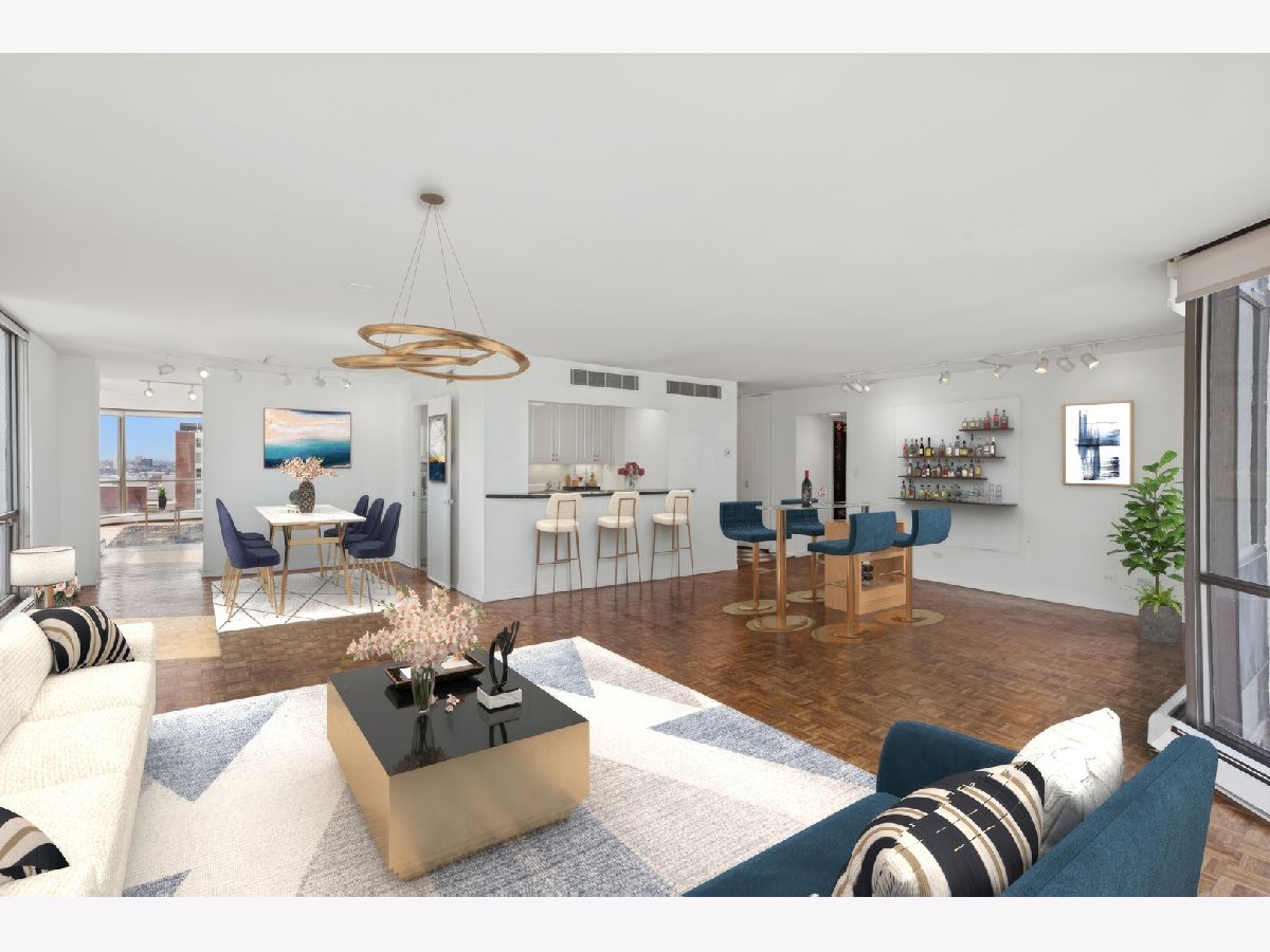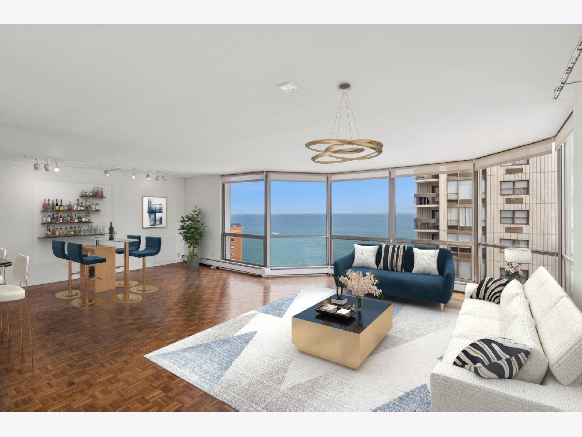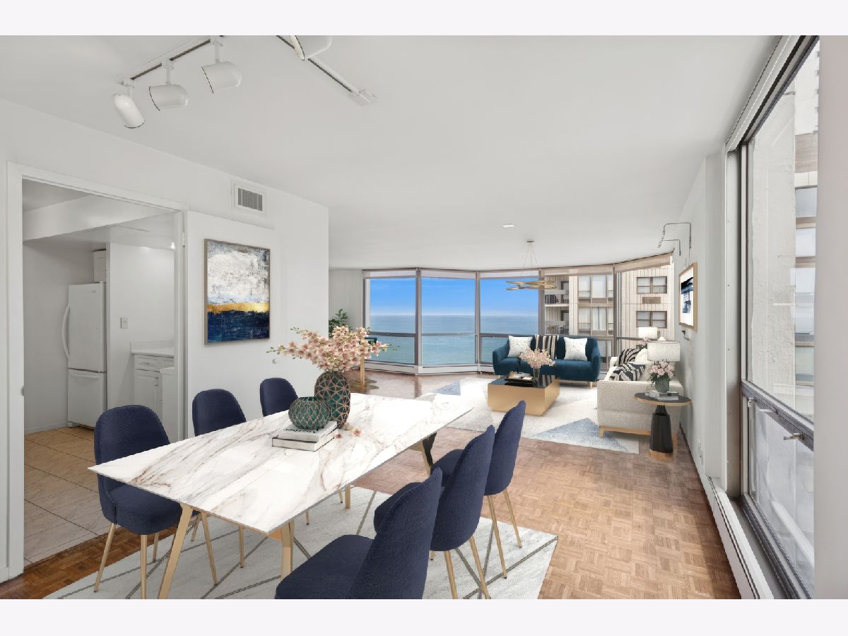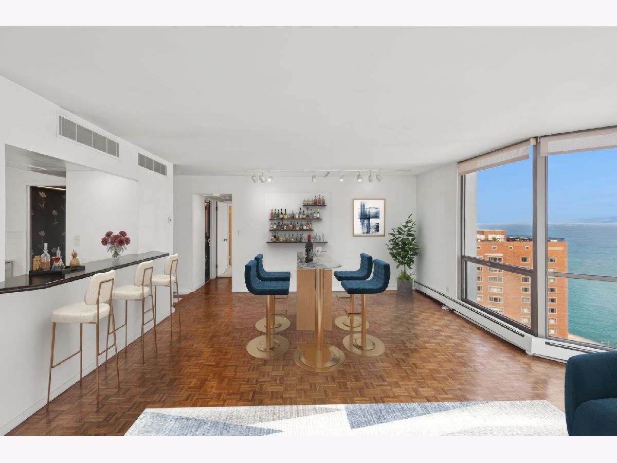 An exceptional opportunity to own a spacious home and create your ideal lifestyle in one of Chicago's most desirable and historic areas; the Gold Coast. This home offers breathtaking views of the lake, beaches, and Chicago skyline, providing a picturesque living experience. With approximately 3,000 sq. ft., the space was originally two units combined, creating ample space for entertaining with two kitchens,(one currently used as a laundry room) and two living/dining areas. The primary bedroom offers stunning water views, a walk-in closet, and additional built-in closets, while two additional bedrooms and baths provide a private space separate from the primary wing. The building comes with full-time staff, around-the-clock door staff, an on-site manager, outdoor pool, garden, and picnic area with Weber grills, along with a heated garage allowing guest parking. Its convenience is further enhanced by its proximity to restaurants, shopping, grocery stores, pharmacies, and parks, which contribute to an enriched urban lifestyle. Walking distance to Latin school, and Catherine Cook School. This home is ideal for those who value space, privacy, and a vibrant urban environment.