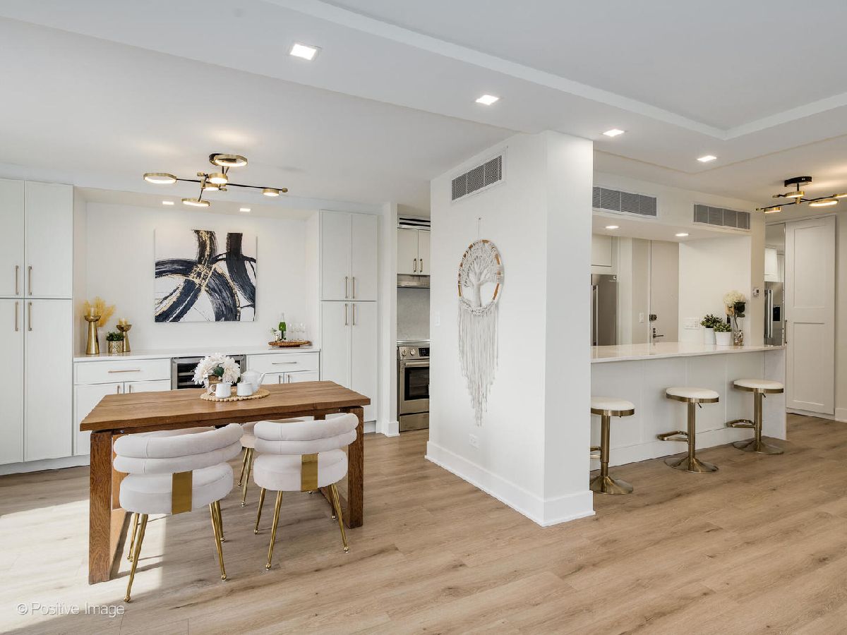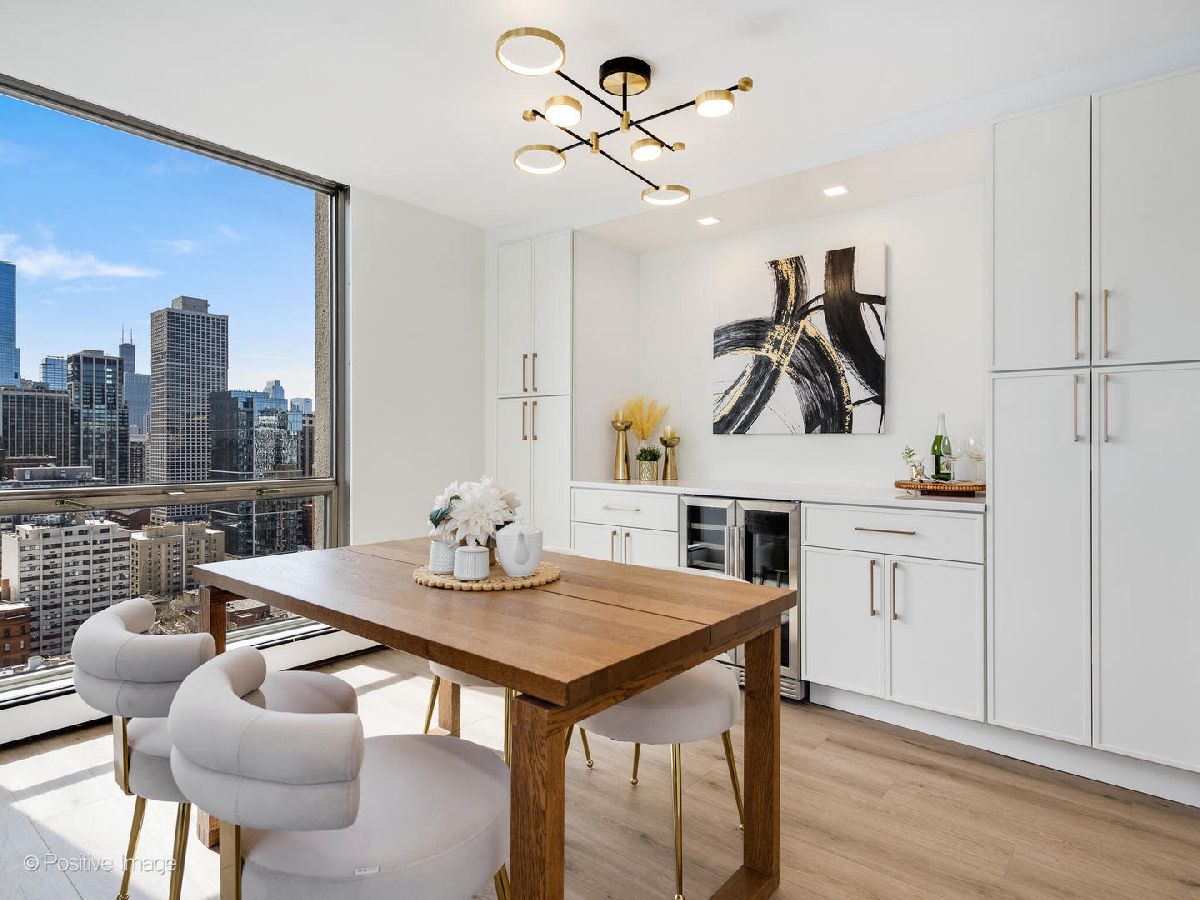 Presenting this stunning brand new gut renovated three bedroom unit in a prestigious location, on a high floor with stunning views, in the landmarked Ritchie Tower building. The newly redesigned floor plan provides a bright open space that has a chef's kitchen that opens to the living & dining areas for entertaining and family gatherings. The three bedrooms are generously sized and there are two luxurious new bathrooms. Be the first to live in this new unit with meticulous craftsmanship, attention to detail and finished to the highest standards. The kitchen has custom off-white slim shaker cabinets with under cabinet led lighting, gold accent hardware & fixtures, quartz countertops and large peninsula with breakfast bar & additional cabinet storage. High-end Bosch appliances - slide-in stove, French door refrigerator, cabinet-panel dishwasher, microwave drawer. The kitchen opens to the dining area with built-in credenza matching the kitchen cabinets, and a wine fridge for convenience. The open living room has floor to ceiling windows that wrap around providing amazing views of the Chicago skyline and Lake Michigan. At the heart of the living space is a rare wood burning fireplace with mantle (fireplaces are only in the top few floors of the building) The primary suite has lake views, it comfortably fits a king size bed, has a professionally organized large walk-in closet, the ensuite bathroom has slim shaker vanity with quartz top, soaking tub, finished with black & gold accent fixtures & hardware, contemporary large format tiled walls and floors. The second & third bedrooms both are also generously sized and have lake views and organized closets. The new guest bathroom has a walk-in shower with sliding glass door, slim shaker vanity with quartz top, finished in gold accent hardware and fixtures. Throughout the unit there are newly built-in recessed lights, wide plank light wood color floors, new electrical & plumbing, abundant professionally organized closets. (in-unit laundry is not allowed to be installed). The A+ location, in the heart of Gold Coast, is a timeless place that's second to none, surrounded by Chicago's most coveted amenities, attractions and architecture - The lakefront, beaches, parks, Michigan Avenue, Oak St, world class dining & entertainment are all at your doorstep. Ritchie Tower (1310 Ritchie) is a highly desired, full amenity, full service building, with 24 hour door staff, onsite management and maintenance/engineer. Amenities include an outdoor pool with sundeck, fitness room. The building has an attached parking garage. Additional large full height storage cage provided. Pets allowed. Healthy reserves with no upcoming big projects or special assessments. Low HOA fees for this three bedroom unit include heat, A/C, cable TV & internet and all building amenities, everything except electricty. This is truly a rare opportunity for an impressive new unit in a superb building with an amazing location.