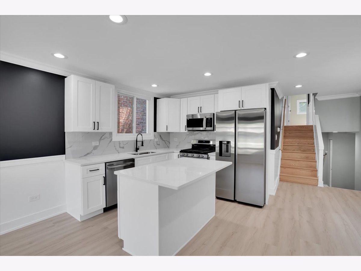 Discover the perfect balance of comfort, style, and location in this beautifully upgraded split-level home in Greater Grand Crossing. Tucked away on a quiet, tree-lined dead-end street, this residence offers 4 spacious bedrooms, 2 modern bathrooms, and a layout designed for relaxed living and effortless entertaining. Step into the luminous open floor plan, where the living and dining areas glow with rich wood laminate flooring, elegant crown molding, and custom chair rail detailing. A dazzling accent wall illuminated by recessed LED lighting and modern fixtures anchors the space with warmth and wow. The chef's kitchen is pure inspiration - featuring 42" white shaker cabinetry, a sleek center island, dramatic black fixtures, quartz countertops, full tile backsplash, and stainless-steel appliances. Upstairs, unwind in three tranquil bedrooms, each accented with wood laminate flooring, sleek black LED ceiling fans, and access to a beautifully updated bathroom adorned in contemporary ceramic tile and luxe black finishes. The fully finished lower level is where memories are made - with a cozy family room, electric fireplace framed by custom tilework, ambient recessed lighting, and a second bathroom boasting a large standup shower with designer black fixtures. Peace of mind comes standard thanks to new plumbing and electrical systems, as well as new vinyl siding, windows, roof, gutters, and downspouts. Outdoors, the spacious yard is your private escape-perfect for weekend lounging, summer cookouts, or simply soaking up the sunshine. Plus, parking for 2 plus vehicles or space to build a garage makes this home as practical as it is picturesque. Located just minutes from DuSable Lake Shore, South Shore Beach, the Museum of Science and Industry, local shops, parks, schools and so much more, you're perfectly positioned to enjoy the best of city living with a neighborhood feel. From top to bottom, this home has been lovingly finished with every detail in mind. All that's missing? YOU!