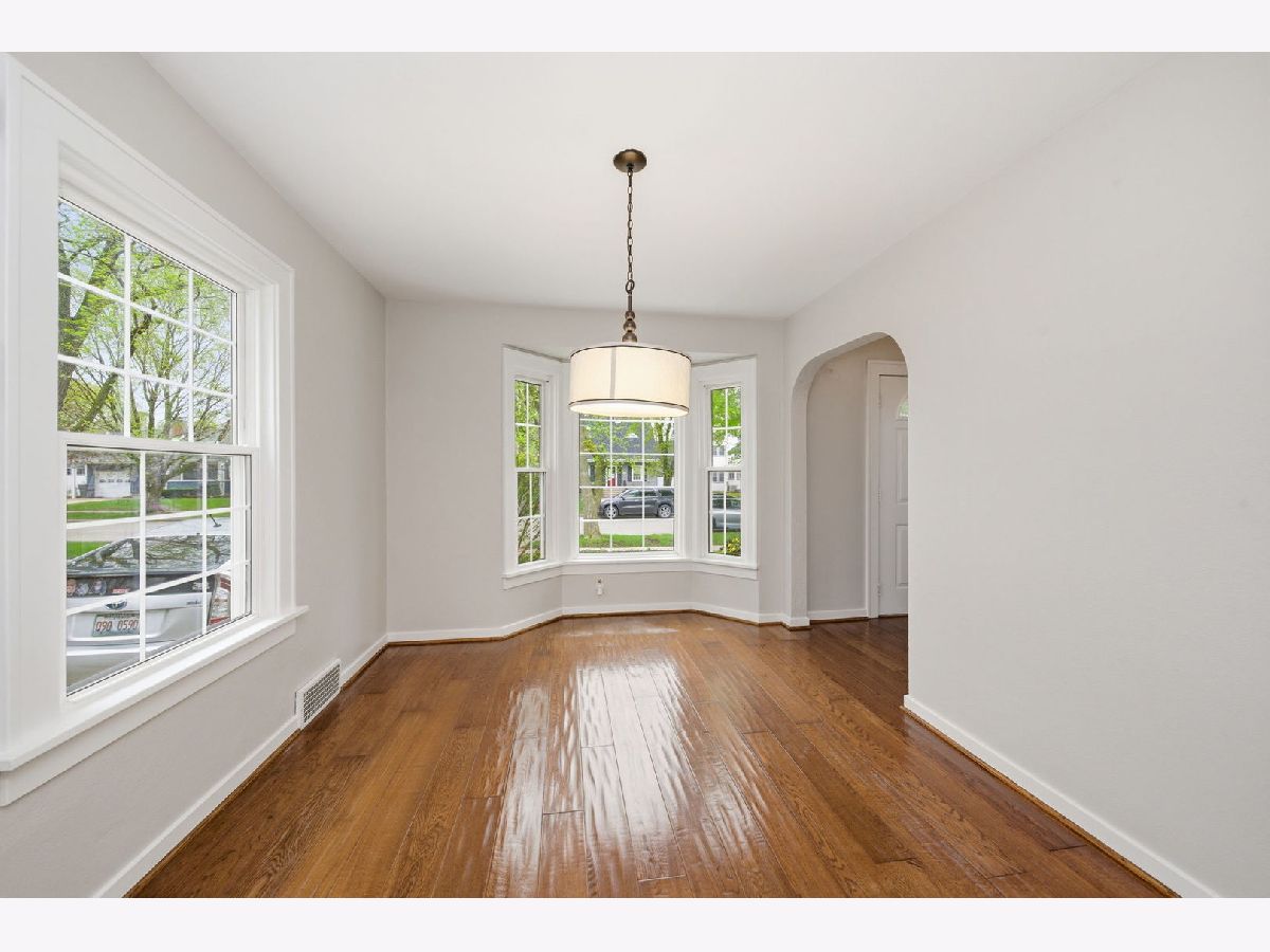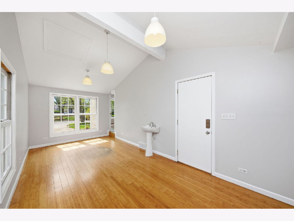 This Cape Cod will have you at hello! Red tulips and purple flowering perennials wrap around the large front deck, creating incredible curb appeal. As you step inside, to the left you'll find a spacious family room with access to a freshly painted sunroom/green room. To the right, you are welcomed by a lovely dining room and an updated kitchen. The former garage has been converted into a functional art space featuring a sink. The main floor features real hardwood floors throughout. The staircase leads to the second floor, where you'll find two spacious bedrooms and a full bathroom. The finished basement offers a room that could be used as a 3rd bedroom, complete with a closet and roughed-in and framed space for a full bathroom. The yard is fully fenced and professionally landscaped, and the outdoor space is a true bonus with a large deck and a brick paver patio-perfect for entertaining. The home has been freshly painted from top to bottom for the sale. SUPERB LOCATION: right off Larkin Avenue, 2 minutes to I-80 and Weber Road, and a short ride to all restaurants, multiple Starbucks and other coffee shops, five grocery stores, and Joliet Louis Mall. Welcome to 1311 Oneida Street, Joliet-an absolutely adorable Cape Cod with a blue door!