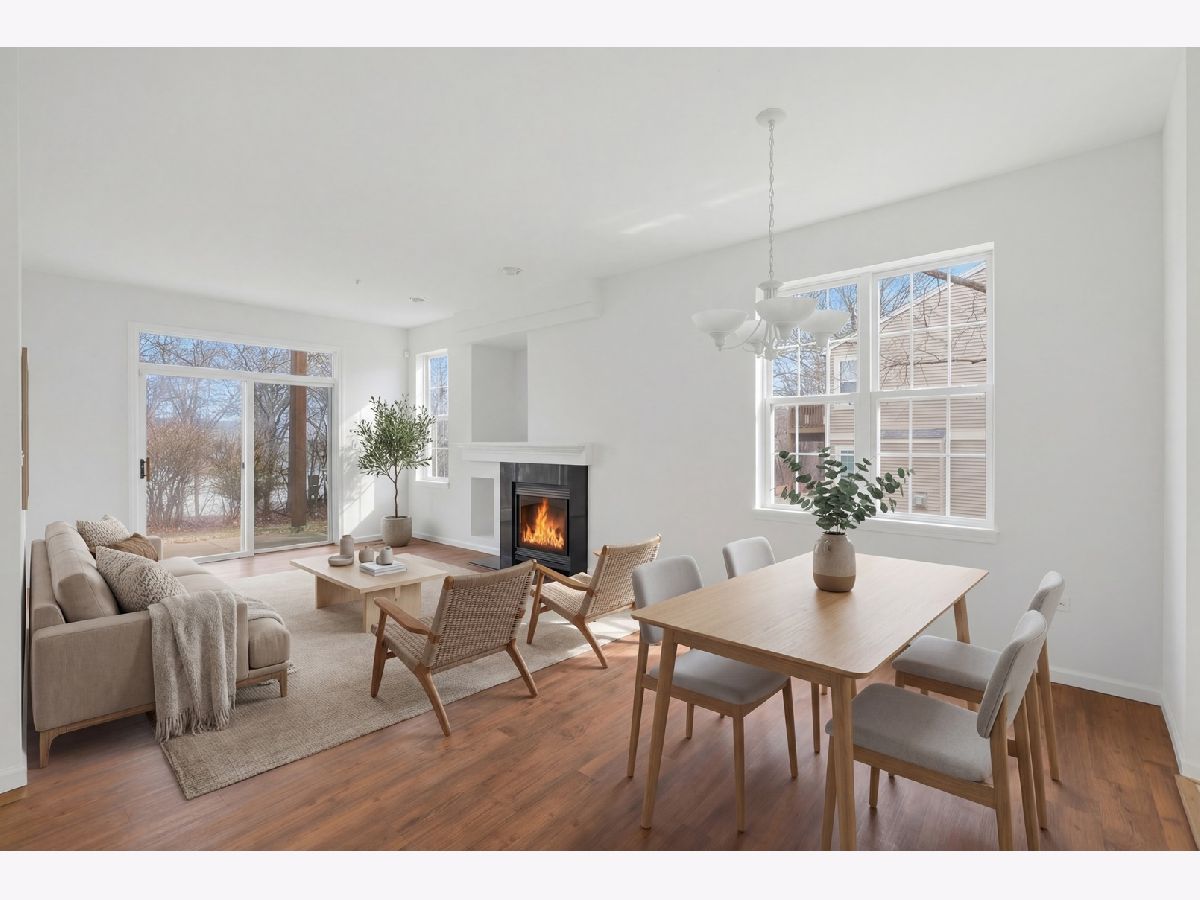 Rarely available first-floor corner unit townhouse, updated prior to listing with fresh paint throughout (walls, ceilings, doors, trim, and baseboards) and new carpet in both bedrooms. Featuring 2 bedrooms and 2 full bathrooms, this home offers an open-concept layout with large windows and a spacious living room with fireplace. Enjoy a private patio with peaceful, tree-lined views. Additional highlights include a separate laundry room and a one-car attached garage. Conveniently located near shopping, dining, and major routes. INVESTOR FRIENDLY - RENTALS ALLOWED, NO CAP