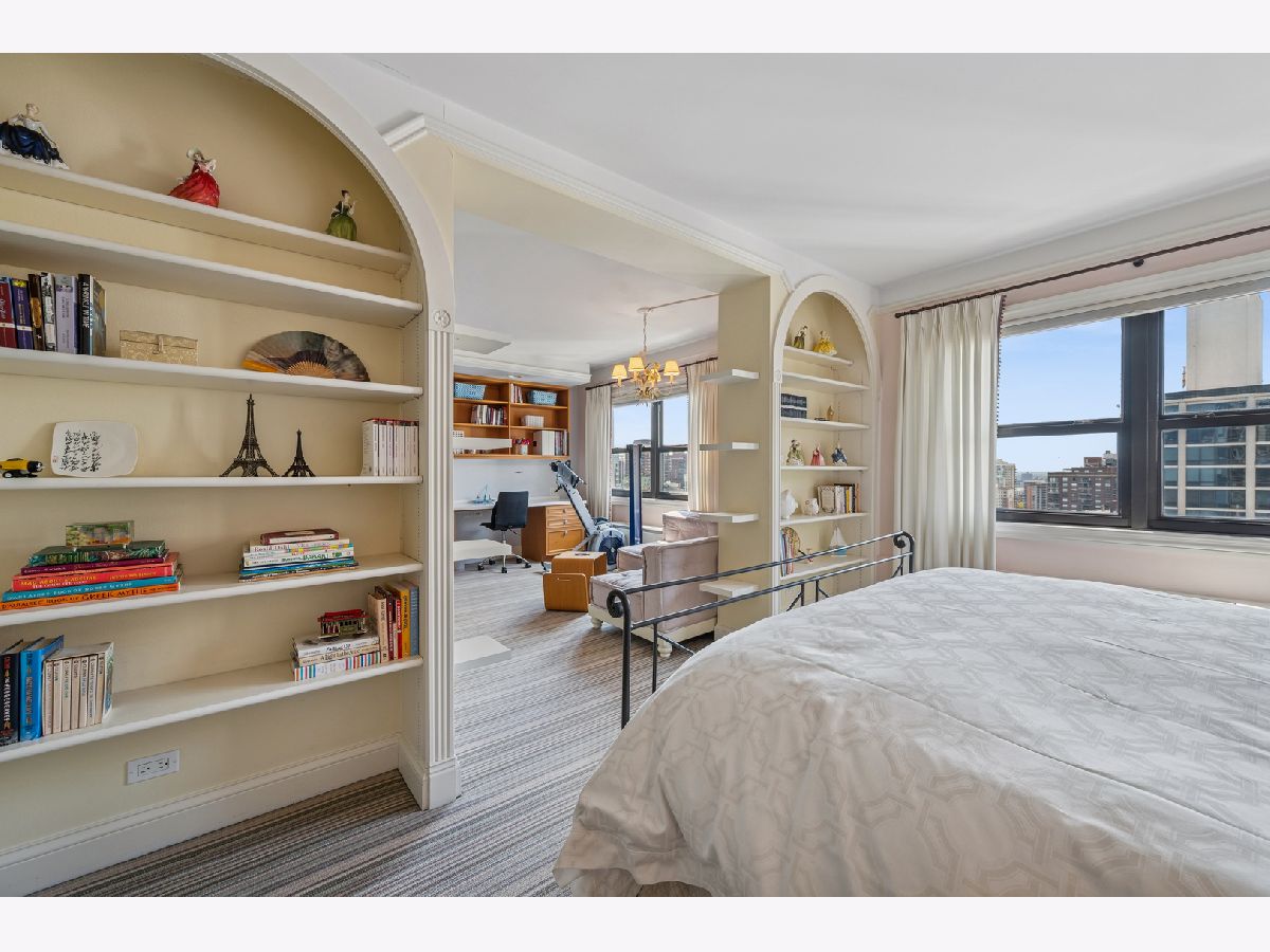 This Penthouse home is the Crown Jewel of Ritchie Court. Located in the most premier Gold Coast location featuring stunning Lake Views to the East, sparkling City Views to the South and sensational Sunset Views to the West. Designer inspired, luxurious home offers an expansive floor plan with generous room sizes and sophisticated contemporary finishes. Perfect for entertaining, family life and flooded with natural light. Oversized living room features a Wood-Burning Fireplace, warm toned Hardwood Floors with Carpet Inserts. Dry Bar and South-West facing Balcony w/stunning City views. Chef's Kitchen features Granite counter tops, Bosch, Dacor appliances including a Warming Drawer, South facing windows and large casual Dining Area with a South-East facing Balcony for grilling w/expansive Lake & City views. Separate Dining Room in addition to the cozy Library/Den for relaxing. Reminiscent of your favorite luxury hotel, over-sized Primary Bedroom Suite boasts two organized Walk-in Closets, gorgeous Primary Bath w/separate Vanities, oversized Soaking Tub and Lux Double Wide Shower. Well proportioned Flex Space, 2nd/3rd Bedroom featuring custom cabinetry, bookshelves and open for Playroom, Study or closed off for 3rd Bedroom. 3 Full Sized Bathrooms. Large Laundry/Utility Room with Bosch W/D, abundant Linen Storage. Additional Private Office/Den with built-in's and organized closet. Richly warm hardwood floors, designer lighting, custom window treatments and overly abundant built-in storage throughout. Tandem Deeded Parking Space available for additional $45K in the attached easy in-out, heated Self-Park Garage. 1313 Ritchie is a Full-Amenity Building with a 24 Hour Service Oriented Door Staff. Professionally Managed, On-Site Manager, Full-Time Engineer & Janitorial Staff. Outdoor Pool & Sundeck, Fully Equipped Fitness Room, Bike Room, Community Room, Receiving Room and Package Delivery Monday-Friday. Luxurious Salon & Day Spa and Full-Service Dry Cleaner. Ideally located year-round home or in-town, steps to the Lake Front, Oak Street Beach, Goudy Park, Lincoln Park, Latin and Ogden Schools. Short walk to World-Class Shopping & Restaurants. Two Furry Friends are welcome. This home offers the private quiet tranquillity of the Gold Coast and near-by amenities of the city. Location, Location, Location!!!