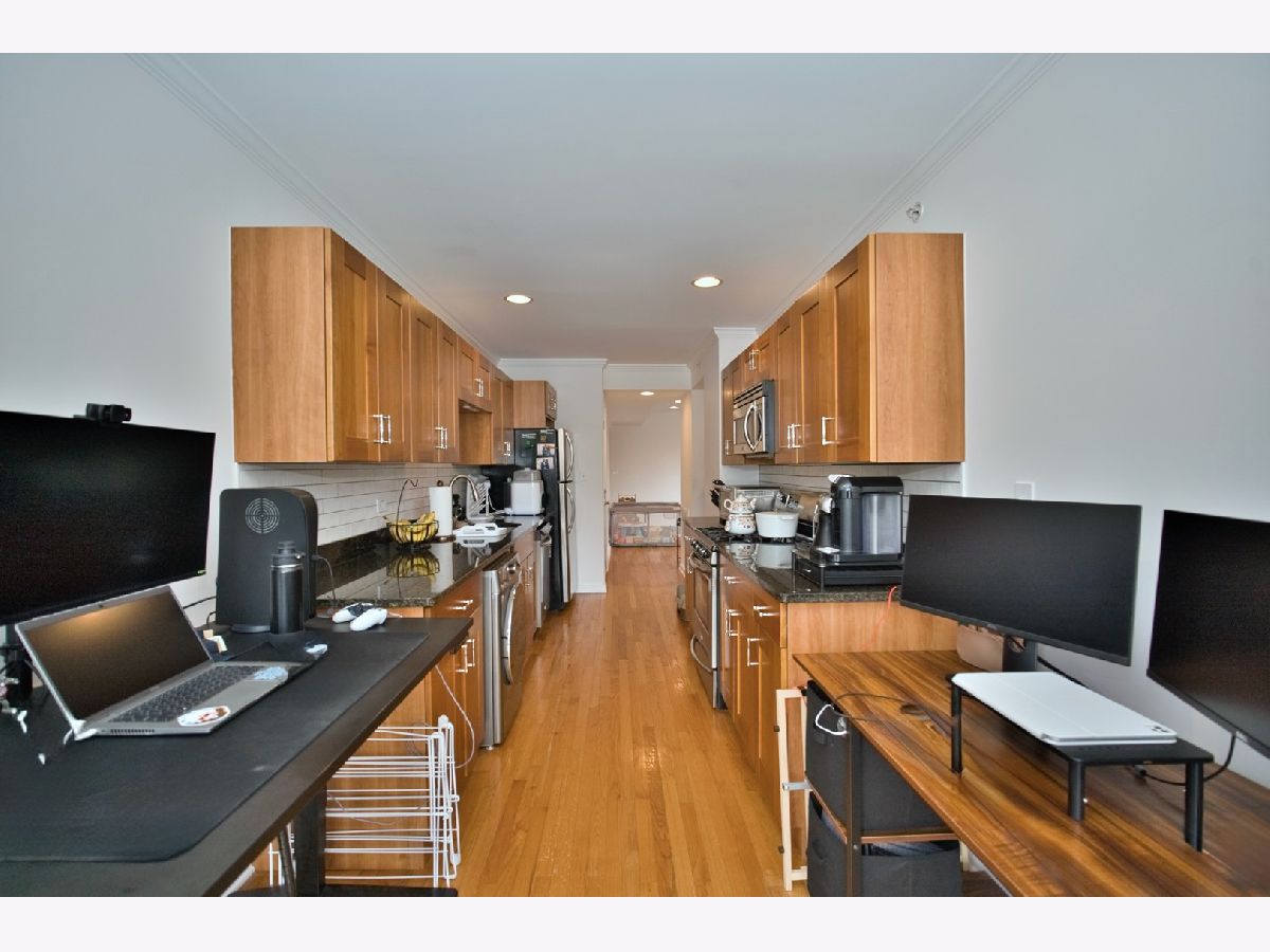 Feel right at home in this spacious 1 bed 1 bath pet friendly condo that has been tastefully maintained and updated. Expansive living areas with crown moldings throughout living room and bedroom, spacious galley kitchen with plenty of storage and a dine-in area which can also be used as a workspace. Built in organizers for coat closet, linen niche, and bedroom closets. Heated bathroom floors for those chilly winter nights. Metra, EL, NU Shuttle, and bustling Main ST/Chicago AVE all in close proximity. Freshly painted in 2025. Backsplash redesign 2025. LG Washer/dryer combo 2022. Covered parking space adjacent to entrance walkway! Fabulously managed user/owner HOA which includes hot water as well. Contact listing broker Sargon Zaia with questions.