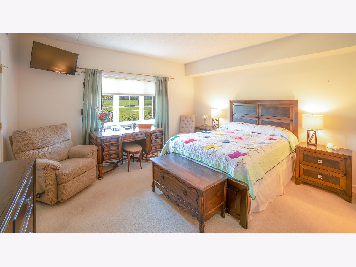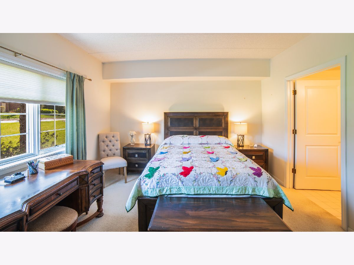 Beautifully maintained, ground-floor condo in Palos Heights, Laurel Glen Condo featuring two bedrooms and two full bathrooms. This unit offers a spacious eat-in kitchen with ample cabinet space, a pantry, and a private balcony. The layout includes a formal dining room for entertaining and a large living room with significant natural light. The primary bedroom suite features double walk-in closets and a private bathroom, complemented by a second bedroom and an additional full bath. Further highlights include- Solid flexicore construction. Separate laundry room with storage. Heated semi-private garage with a dedicated storage locker. First-floor access with no obstacles. Close proximity to forest preserves, schools, shopping, and public transportation! Come make this home today!