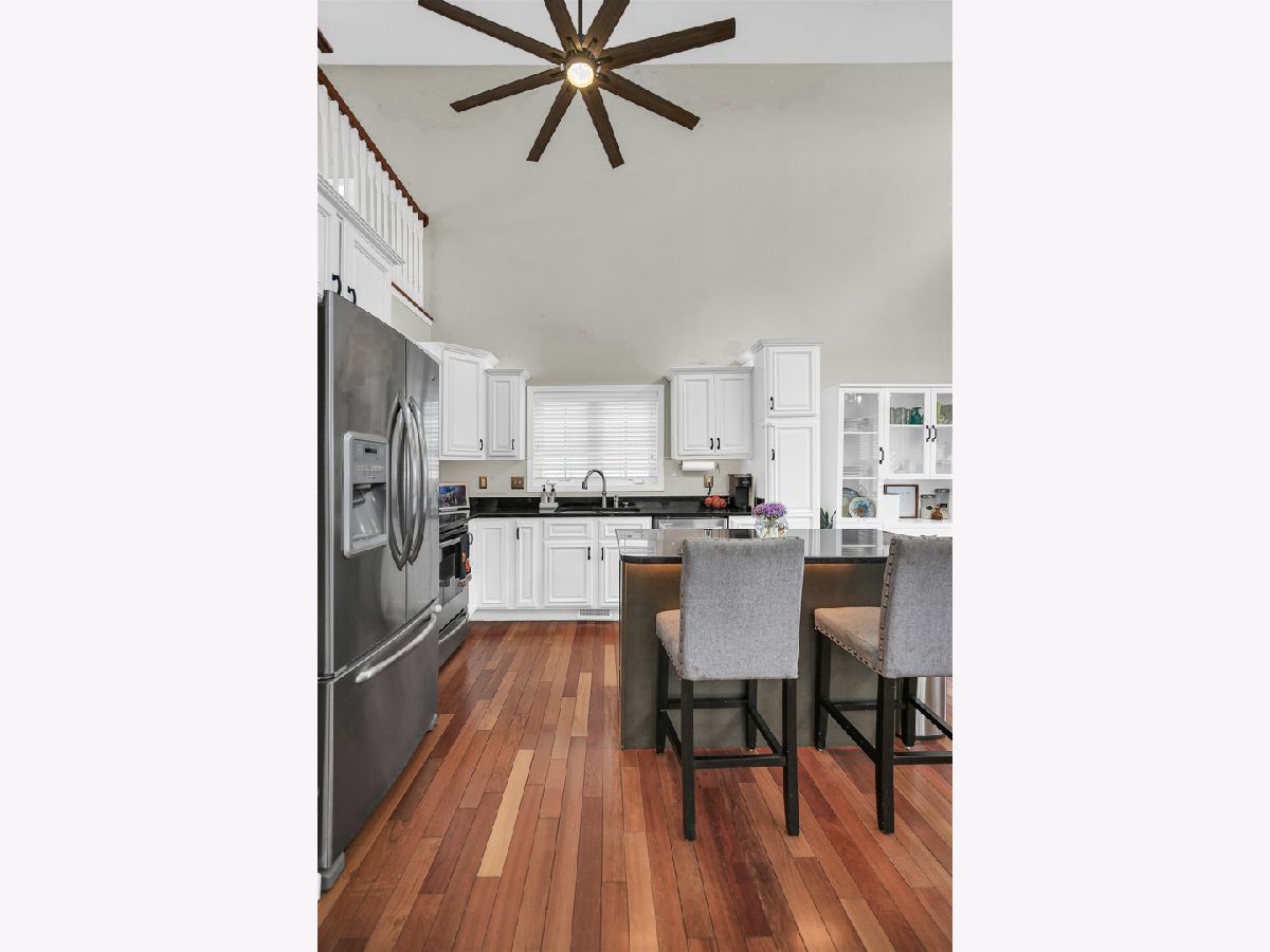 Outstanding, custom built home completely updated in current colors & decor...HGTV style! This 1.5 story, 3 bedroom 3.5 baths home has ~3,000 finished sqft plus another 300 sqft for storage. Traditional exterior with great curb appeal is hiding a WOW, CONTEMPORARY INTERIOR! SOARING 2 story, 20ft CEILINGS, open balconies and A VERY HIP, STYLISH, COOL VIBE... definitely is not your typical "cookie-cutter" floorplan. Enjoy upscale features and fixtures not normally found in this price range. Gorgeous SOLID, BRAZILIAN CHERRY HARDWOOD FLOORING throughout the main living space highlighted by all the natural light streaming through the wall of windows. Modern 5" chunky base trim, high end window treatments, and ceiling fans in the kitchen, living room and all bedrooms. Updated laundry room with new cabinets, sink and newer washer and dryer conveys. BRAND NEW CARPET just installed on the stairs and upstairs hallway is in stock/available for the two bedrooms. Popular, floorplan with kitchen open to the main living space. Super kitchen with strainless appliances, white cabinetry, under counter lighting & solid surface counter tops. Sliding patio door for direct access out back...perfect for cook outs. The spacious great room has a stunning gas log fireplace with a granite surround and full mantle. Extremely hard to find such a large FIRST FLOOR MASTER SUITE, with 11ft. TREY CEILINGS, large walk-in-closet and spa-like bath with a whirlpool tub, separate shower and a double sink granite vanity. FULL FINISHED BASEMENT, with newly added 3rd FULL BATH, a big gathering space/theater room, compete with all equipment. There is also a walk around DRY BAR, with a beverage fridge, and custom granite tops. All set up for the ultimate entertaining space. Outside offers a large FENCED BACK YARD with TREX DECK, a SCREENED IN PORCH, and built in sand box area. EAST FACING FOR GORGEOUS BACK YARD SUNSET VIEWS. Located in the popular Boulder Ridge Subdivision close to the COMMUNITY POND & the lovely SUNSET PARK! You will NOT be disappointed with this one...Call your favorite Realtor to schedule today!