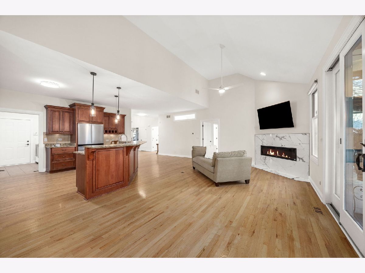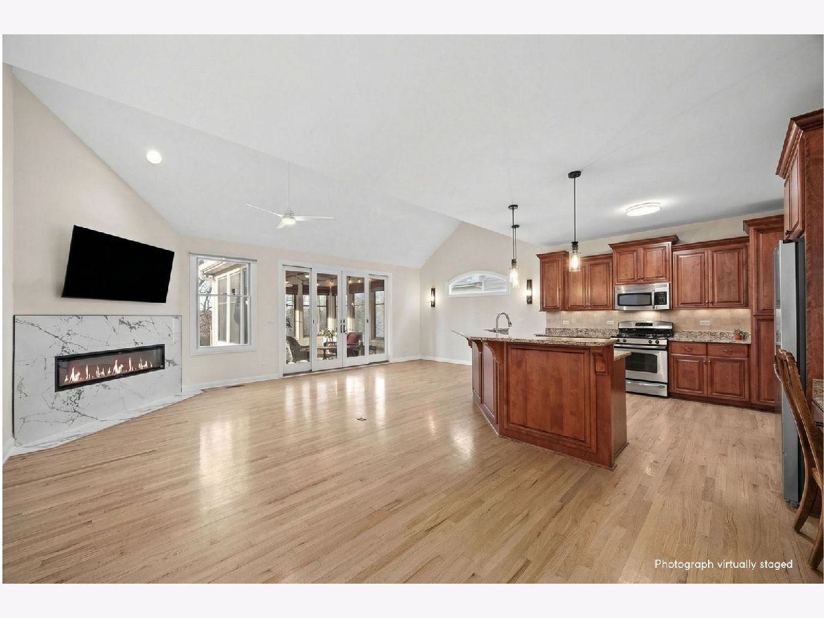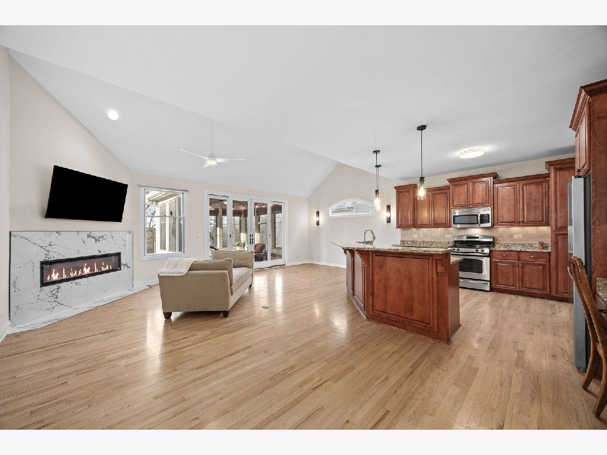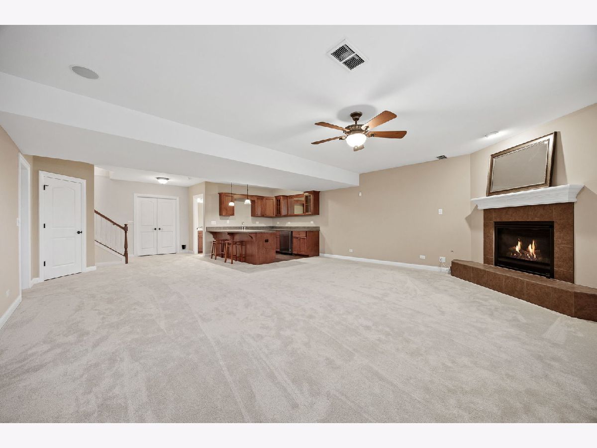 The wait is over! Rarely homes in the Lakelands Club become available! Step inside and get ready to fall in love in this beautifully updated 3 Bedroom, 3 Bath home located in Plainfield's highly sought-after gated Lakelands Club community. With clubhouse access, a pool, and lake rights, this is a lifestyle that truly feels like a retreat. The open floor plan of this home with vaulted ceilings and hardwood floors creates an inviting, light-filled space that's perfect for both everyday living and entertaining. You'll love gathering in the spacious kitchen, where the family room and dining area come together in one large, open space-ideal for hosting holidays, dinner parties, or casual nights in. Kitchen details include granite countertops, Stainless Steel appliances (new Dishwasher and new Refrigerator) and new light fixtures (2025). Cozy up around the brand new fireplace and take in the peaceful views of the surrounding trees. The first-floor den or office with French doors offers wonderful flexibility, whether you need a home office, guest room, or creative space. The main-floor Master Bedroom is a true escape, complete with a fully remodeled bathroom (2025) and a walk-in closet. First-floor laundry makes main-level living effortless. Downstairs, the finished English lookout basement expands your living space with an additional family room featuring a corner fireplace and wet bar, two Bedrooms, a full Bath, and generous storage-perfect for guests, extended family, or entertaining. Start your mornings with a peek of the lake from the front porch, then relax in the covered sunroom surrounded by mature trees and backyard privacy. With recent upgrades including a newer roof and gutters (2020), redone driveway (2021), epoxied garage floor, Tesla charger, and updated mechanicals with a tankless water heater, furnace, humidifier, and A/C, this home is truly move-in ready. Location has quick access to I-55. Residents in the Lakelands community receive full lake rights including Pool & Clubhouse. HOA includes Swimming Pool, Snow removal, Clubhouse, Gym, Scavenger, Landscaping and Common Insurance. This house is the complete package!