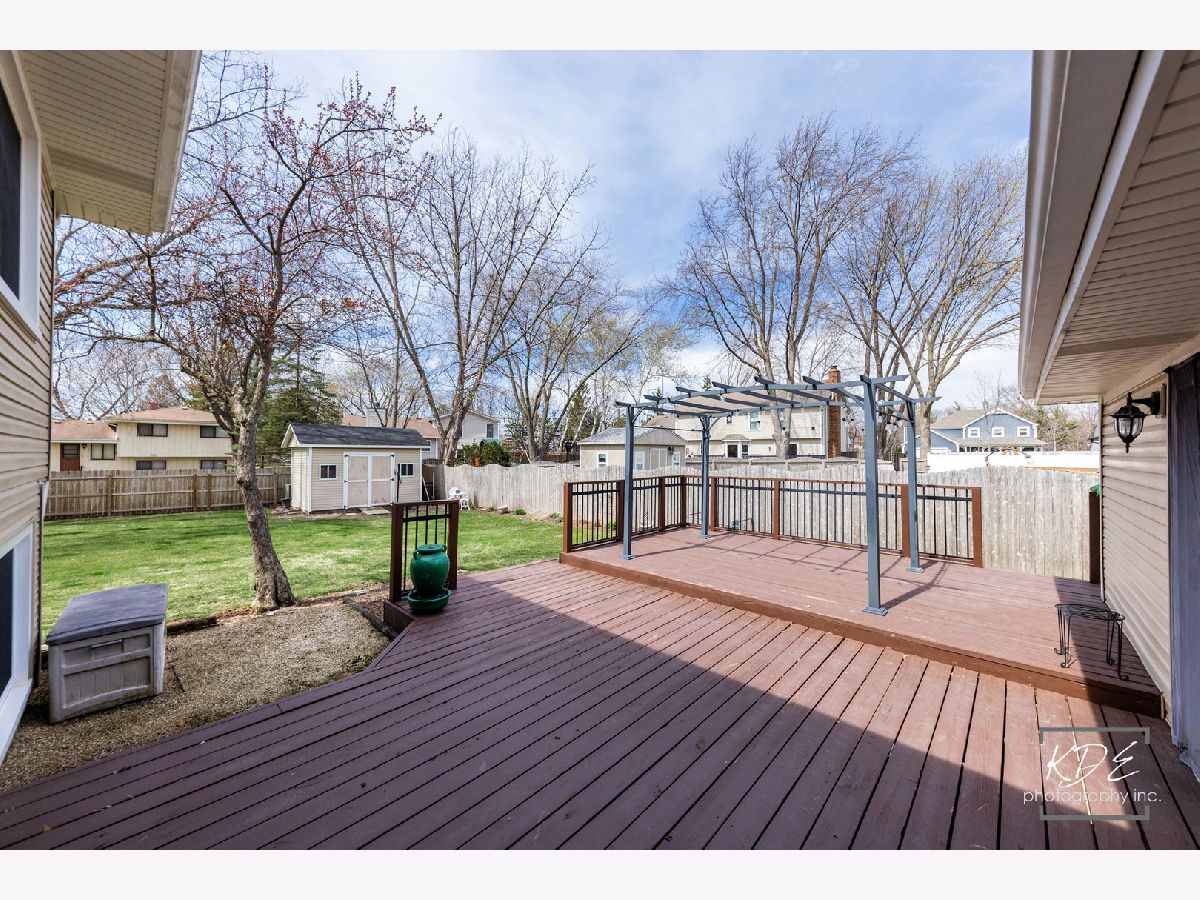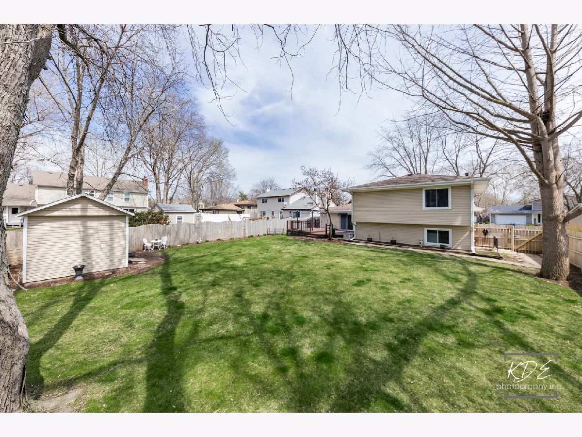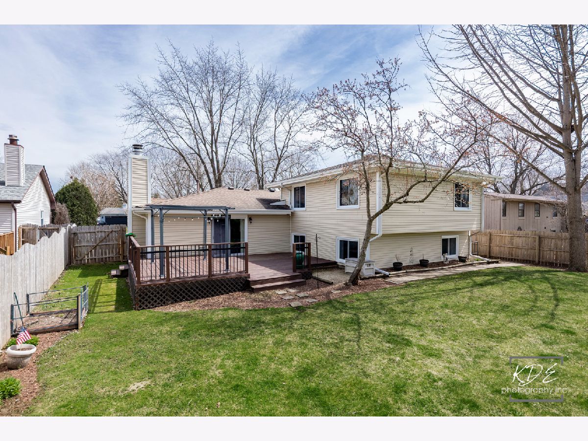 Welcome to this wonderful home nestled in the highly desirable Bay Colony neighborhood, located within acclaimed District 203 schools and just minutes from vibrant downtown Naperville! This well-maintained 4-bedroom, 2-bath split-level home offers comfort, functionality, and space both inside and out. The large, fully fenced backyard is perfect for relaxing or entertaining, complete with a generously sized storage shed. Step inside to a bright and spacious living and dining room combination featuring beautiful hardwood floors that flow seamlessly into the kitchen. The kitchen showcases freshly painted cabinetry, granite countertops, stainless steel appliances (2011), and a charming built-in bistro-style breakfast table. It opens to the inviting family room, where you'll find a cozy fireplace with a gas line and ceramic logs-perfect for gathering on cooler evenings. Sliding glass doors lead to an expansive deck, redone in 2020, with a pergola that stays-ideal for outdoor dining and entertaining. The oversized 2-car garage is a standout feature, offering heat, insulated doors (10' wide by 7' tall), and ample built-in cabinetry-all included. Major mechanicals, including the furnace, air conditioner, and water heater, have been well maintained and regularly serviced. Upstairs, you'll find the primary bedroom with a private sink and direct access to a spacious shared full bath, along with two additional bedrooms featuring closet organizers. The upper level is comfortably carpeted throughout. The lower level provides even more living space, including a cozy office or homework nook with built-in shelving, the second full bathroom, a fourth bedroom with a large closet, and a laundry room with washer and dryer included. A rear door from this level offers convenient access to the backyard. Additional updates include windows (2011, with the exception of the original front picture window), roof and gutters (2013), and siding (2013). This is a fantastic opportunity to own a beautifully cared-for home in an unbeatable location-come see it and make it yours!