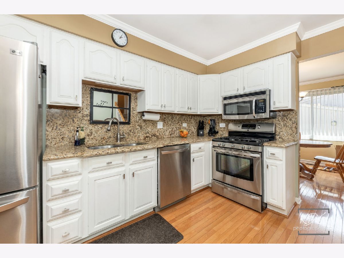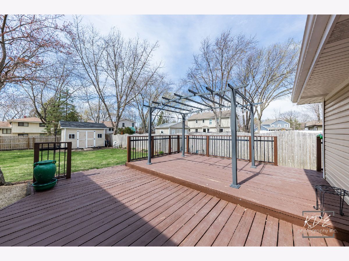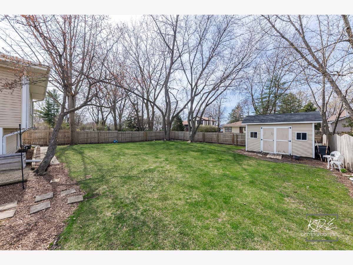 Welcome to this wonderful home nestled in the highly desirable Bay Colony neighborhood, located within acclaimed District 203 schools and just minutes from vibrant downtown Naperville! This well-maintained 4-bedroom, 2-bath split-level home offers comfort, functionality, and space both inside and out. The large, fully fenced backyard is perfect for relaxing or entertaining, complete with a generously sized storage shed. Step inside to a bright and spacious living and dining room combination featuring beautiful hardwood floors that flow seamlessly into the kitchen. The kitchen showcases freshly painted cabinetry, granite countertops, stainless steel appliances (2011), and a charming built-in bistro-style breakfast table. It opens to the inviting family room, where you'll find a cozy fireplace with a gas line and ceramic logs-perfect for gathering on cooler evenings. Sliding glass doors lead to an expansive deck, redone in 2020, with a pergola that stays-ideal for outdoor dining and entertaining. The oversized 2-car garage is a standout feature, offering heat, insulated doors (10' wide by 7' tall), and ample built-in cabinetry-all included. Major mechanicals, including the furnace, air conditioner, and water heater, have been well maintained and regularly serviced. Upstairs, you'll find the primary bedroom with a private sink and direct access to a spacious shared full bath, along with two additional bedrooms featuring closet organizers. The upper level is comfortably carpeted throughout. The lower level provides even more living space, including a cozy office or homework nook with built-in shelving, the second full bathroom, a fourth bedroom with a large closet, and a laundry room with washer and dryer included. A rear door from this level offers convenient access to the backyard. Additional updates include windows (2011, with the exception of the original front picture window), roof and gutters (2013), and siding (2013). This is a fantastic opportunity to own a beautifully cared-for home in an unbeatable location-come see it and make it yours!
