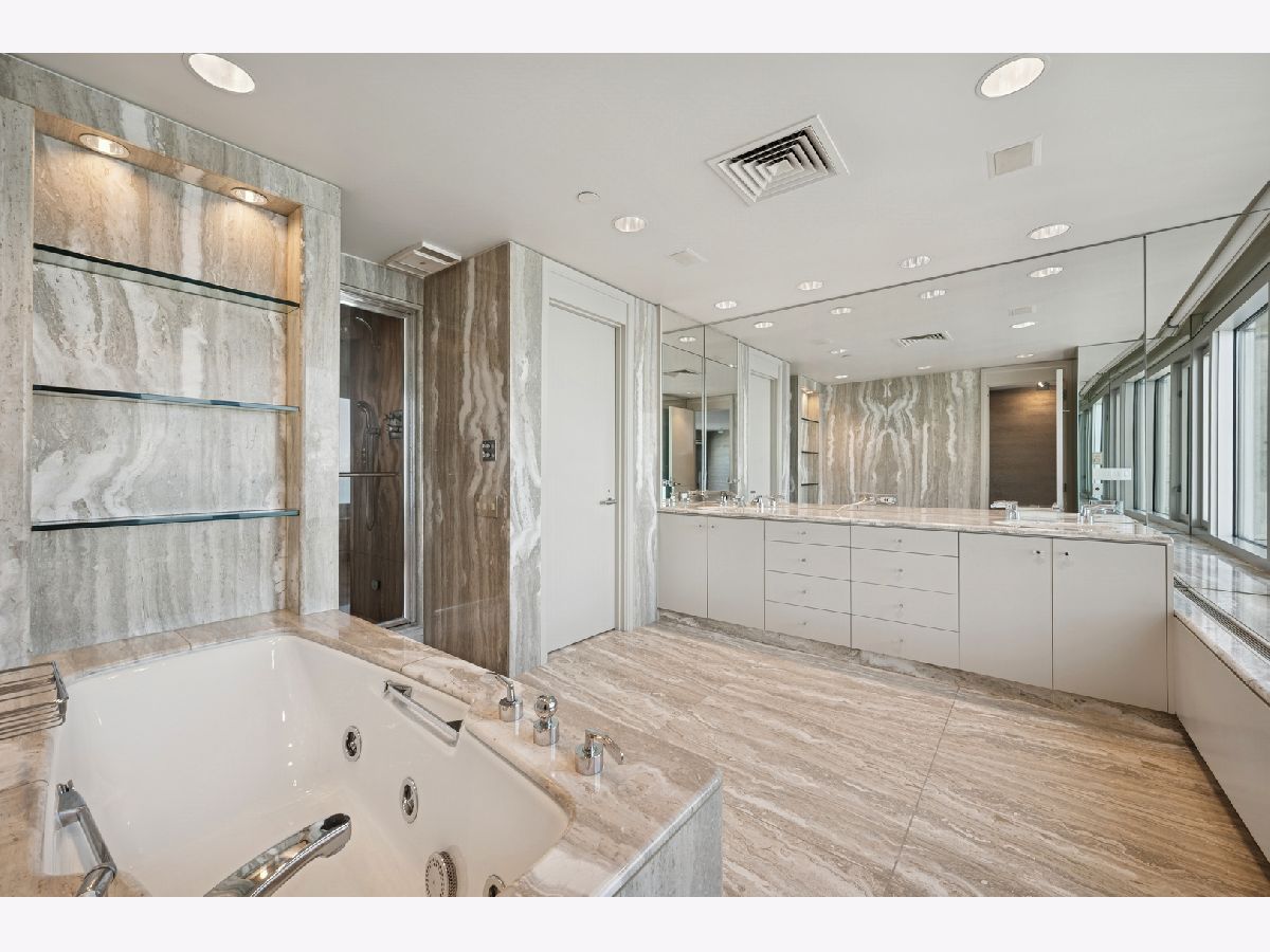 Three directional views like no other condo in Chicago! Luxurious Four Season residences offers you this, only one of two, 5,592 square foot dream homes to enjoy both sunrises and sunsets from walls of windows which frame those coveted, unforgettable, postcard views of Lake Michigan to the east, wrapping south to include Chicago's famous skyline of iconic skyscrapers and the magic of the Magnificent Mile as it turns to the west to showcase endless views to the suburbs and the planes landing into O'Hare airport. Your views are endless, eye popping and an absolute show stopper. Your thoughtful floor plan offers you spacious room sizes for easy living and gracious entertaining and, your perfect 4 bedroom, 4 1/2 bath home is in impeccable condition and provides all the bells and whistles to make your life style -beautiful. Enjoy a large foyer to showcase your art, a massive eat-in chef's kitchen with views that keep you at the table for hours, a bar and lounge area, enormous walk in closets; a dream for any fashionista, marble baths, motorized shades on all windows, four furnaces, four humidification systems, two central vacuum systems and so much more that you must come to see in person. This treasured home is perfectly located above the exclusive and renovated Four Seasons Hotel offering you all the coveted amenities you desire- concierge service, room service, spa/wellness center, fitness center, indoor pool, whirlpool, sauna and steam rooms within the luxurious men's and women's locker rooms- that will make you feel like you're living in a resort every day of the week. On site valet or self- parking options available to residents and their guests. Dogs welcome too!