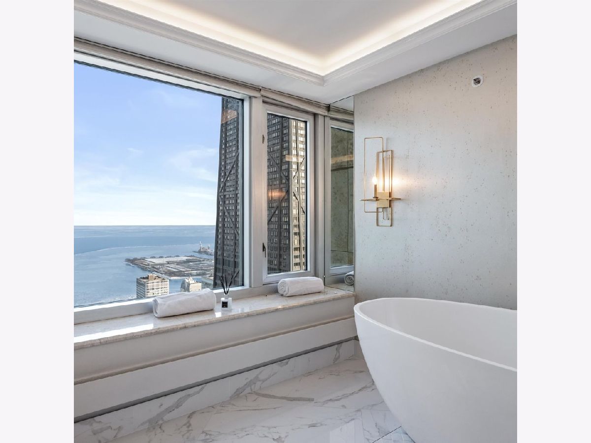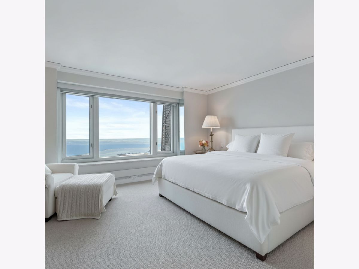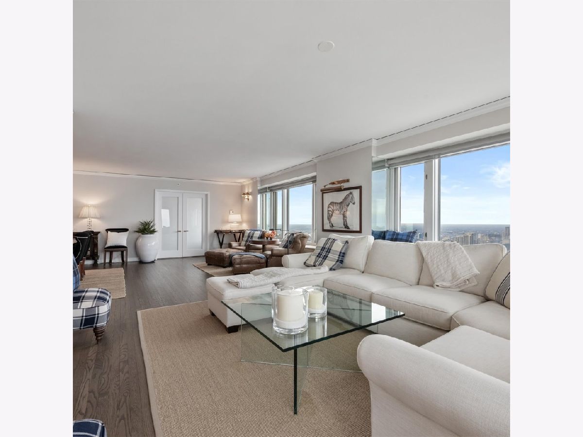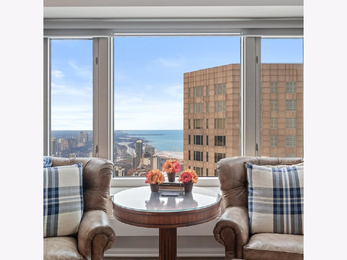 Move right into this stunning home. Perched on the 51st floor above the Four Seasons Hotel in Chicago's iconic Gold Coast, this expansive 3 bed, 3 bath corner residence offers drop-dead gorgeous panoramic north and east views of Lake Michigan and the city skyline. Renovated recently with a modern/transitional/timeless/streamlined aesthetic, the home features an open-concept living and dining area, with a spacious home office or third bedroom, and wide-plank oak flooring. The chef's kitchen is outfitted with Sub-Zero and Wolf appliances, porcelain tile floors, a striking walnut island, custom two-tone cabinetry, and open shelving for display. The primary suite is a large, serene retreat. The extraordinary primary bath is spa-like, with views overlooking the lake, marble tile, a walk-in shower, and a large dressing room/walk-in closet. The second bedroom includes its own full bath. The home has an in-unit laundry room with great storage, and a beautiful built-in dry bar as well. Enjoy full-service living above the Four Seasons Hotel Chicago, with optional access to hotel amenities including room service and spa offerings-all just steps from world-renowned shopping and dining on Michigan Avenue. Don't miss this rare opportunity for turnkey luxury in one of Chicago's most prestigious addresses. Monthly valet parking available, reserved parking is offered but currently has a waitlist. Cats and Dogs okay, no weight limit. A 48-hour notice will be required to show. Exclusions: Zebra mirror in the foyer and the large mirror in the master bedroom.