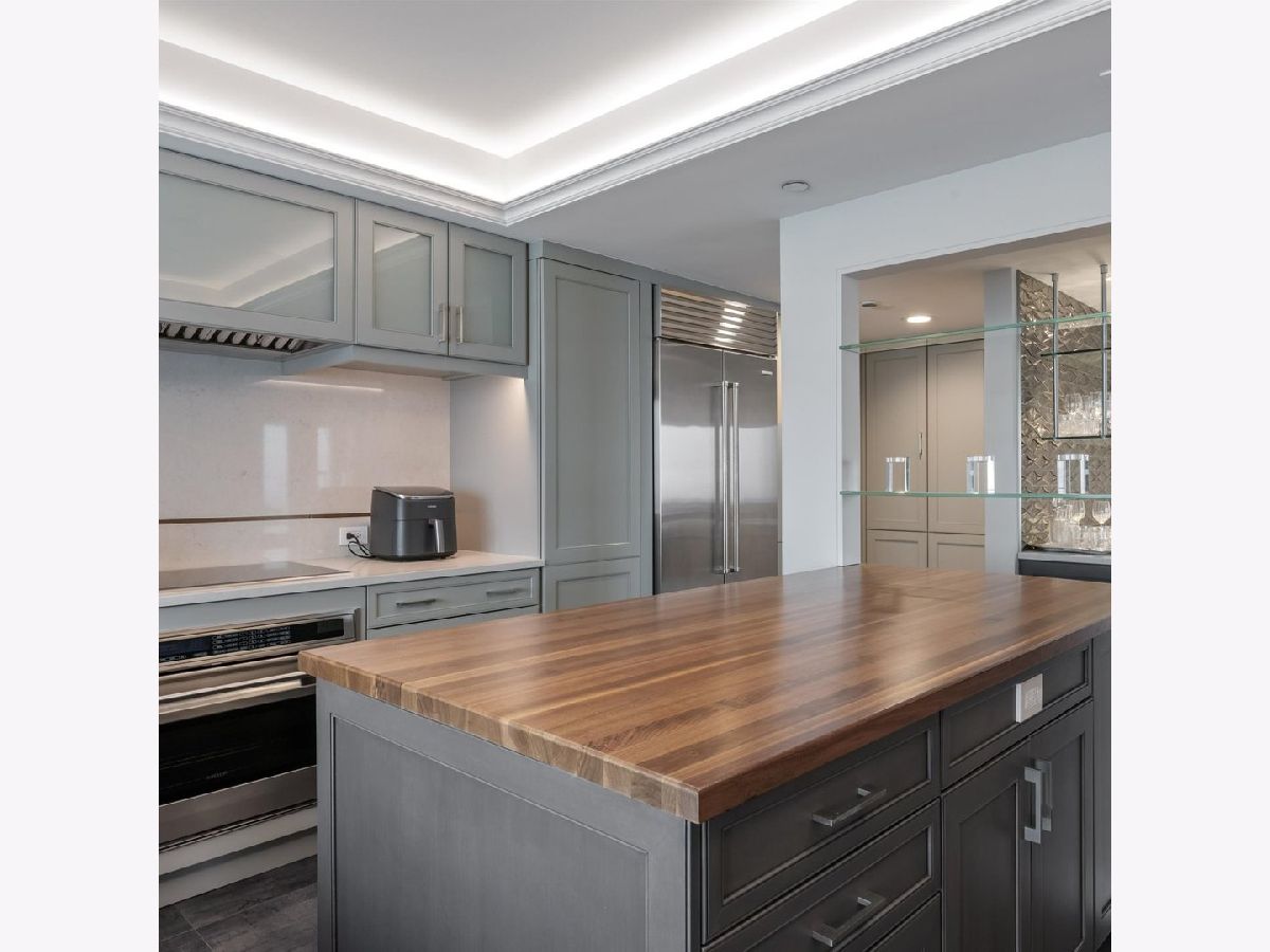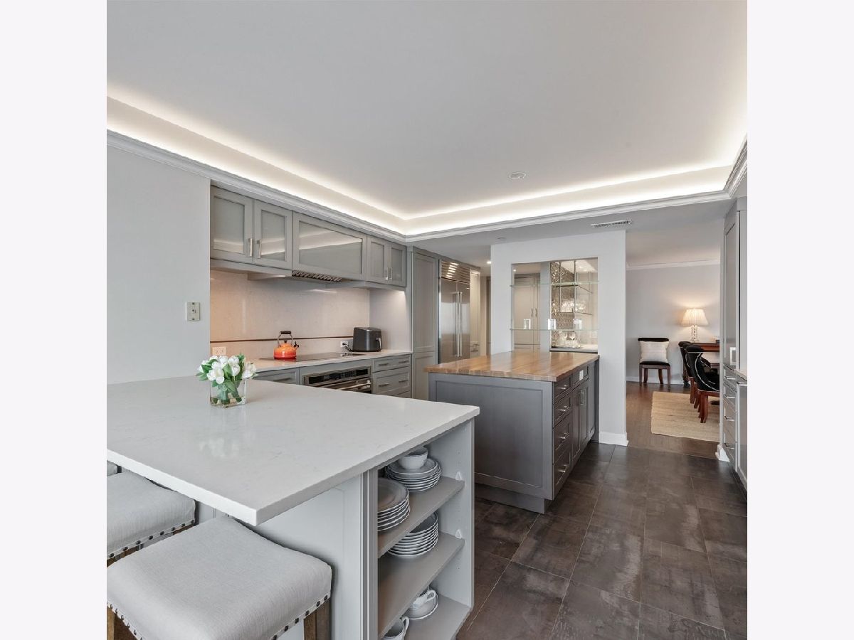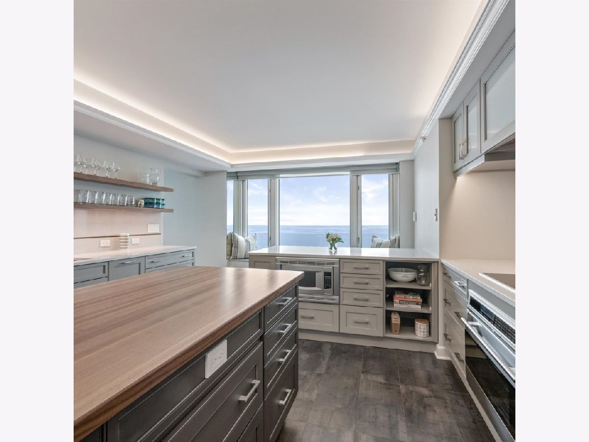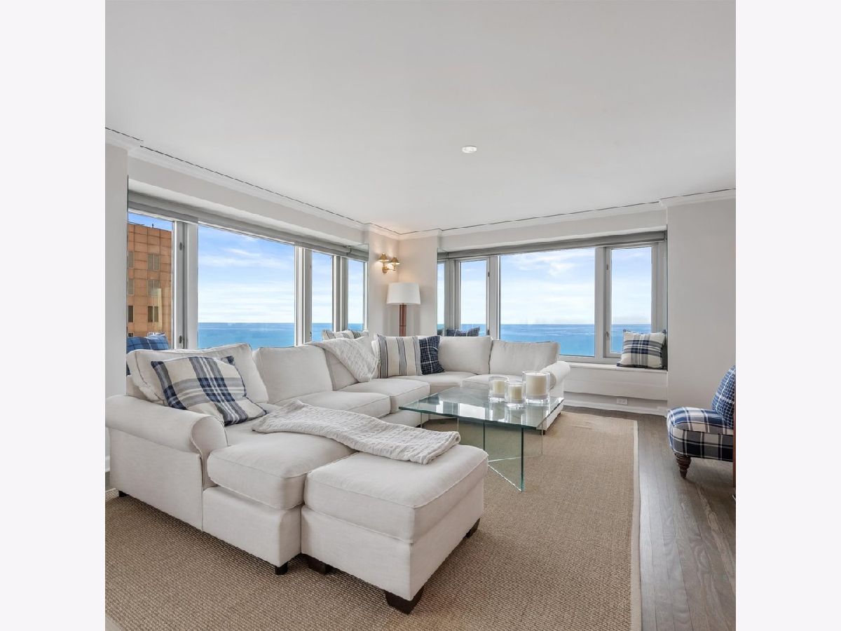 Move right into this stunning home. Perched on the 51st floor above the Four Seasons Hotel in Chicago's iconic Gold Coast, this expansive 3 bed, 3 bath corner residence offers drop-dead gorgeous panoramic north and east views of Lake Michigan and the city skyline. Renovated recently with a modern/transitional/timeless/streamlined aesthetic, the home features an open-concept living and dining area, with a spacious home office or third bedroom, and wide-plank oak flooring. The chef's kitchen is outfitted with Sub-Zero and Wolf appliances, porcelain tile floors, a striking walnut island, custom two-tone cabinetry, and open shelving for display. The primary suite is a large, serene retreat. The extraordinary primary bath is spa-like, with views overlooking the lake, marble tile, a walk-in shower, and a large dressing room/walk-in closet. The second bedroom includes its own full bath. The home has an in-unit laundry room with great storage, and a beautiful built-in dry bar as well. Enjoy full-service living above the Four Seasons Hotel Chicago, with optional access to hotel amenities including room service and spa offerings-all just steps from world-renowned shopping and dining on Michigan Avenue. Don't miss this rare opportunity for turnkey luxury in one of Chicago's most prestigious addresses. Monthly valet parking available, reserved parking is offered but currently has a waitlist. Cats and Dogs okay, no weight limit. A 48-hour notice will be required to show. Exclusions: Zebra mirror in the foyer and the large mirror in the master bedroom.