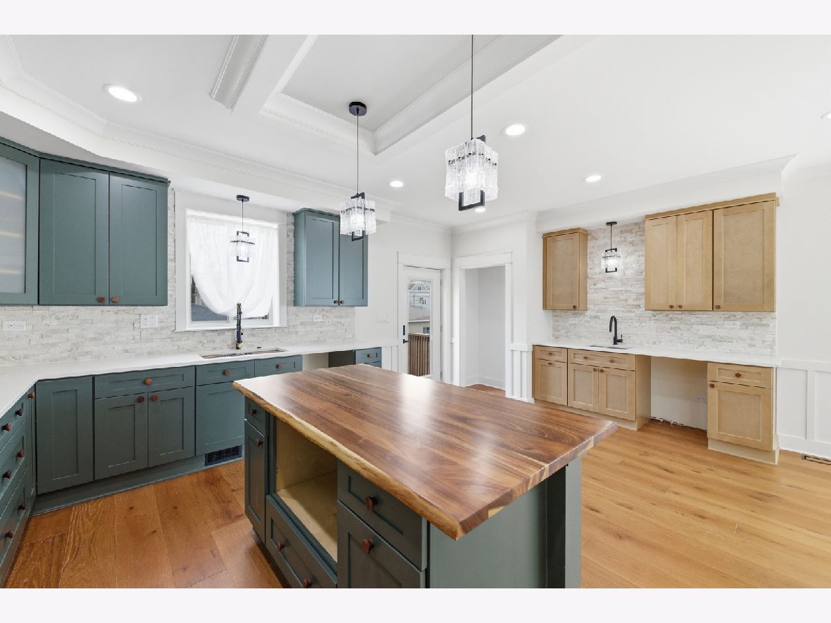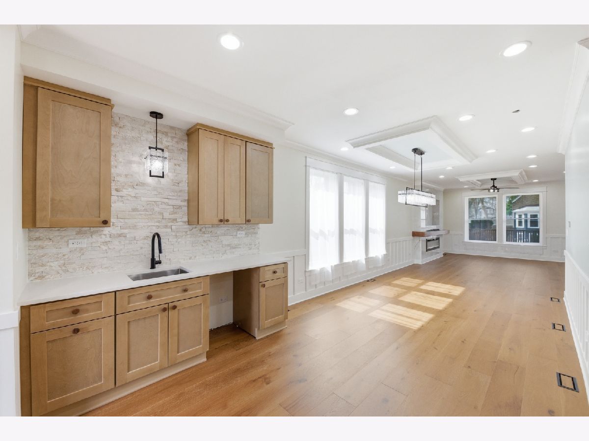 Welcome to this fully rehabbed Berwyn home, thoughtfully renovated with modern design and timeless finishes. This stunning property sits on a standard lot with an additional lot available with a separate PIN number. Step inside to a bright, open layout featuring oversized windows with natural light and wire brushed engineered wood flooring. The inviting living room showcases a tray ceiling and sleek electric fireplace. Enjoy an L shaped kitchen layout with a walk in pantry, quartz countertops, a statement butcher block island, and stylish sage green cabinetry. A dedicated honey wheat wet bar adds an elevated touch for hosting. Retreat to the spacious primary suite, complete with his-and-her closets and a private spa inspired bath featuring elegant travertine natural stone finishes. This home offers 3 bedrooms top floor, 1 bed room in basement. 3.5 bathrooms, 2 full baths on top floor, half on main floor and 1 full bath in basement. The basement offers the convenience of two separate laundry areas ideal for multi level living. Major mechanicals include dual furnaces and A/C systems for optimal comfort and efficiency. Ideally situated near top performing local schools, including Jefferson Elementary and Lincoln Middle School, both recognized with notable school ratings. A true turnkey opportunity blending luxury, functionality, and thoughtful design this is Berwyn living at its finest.