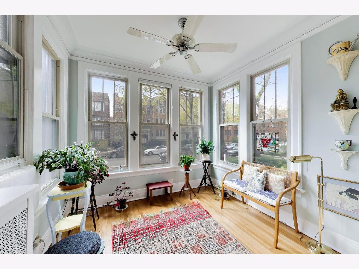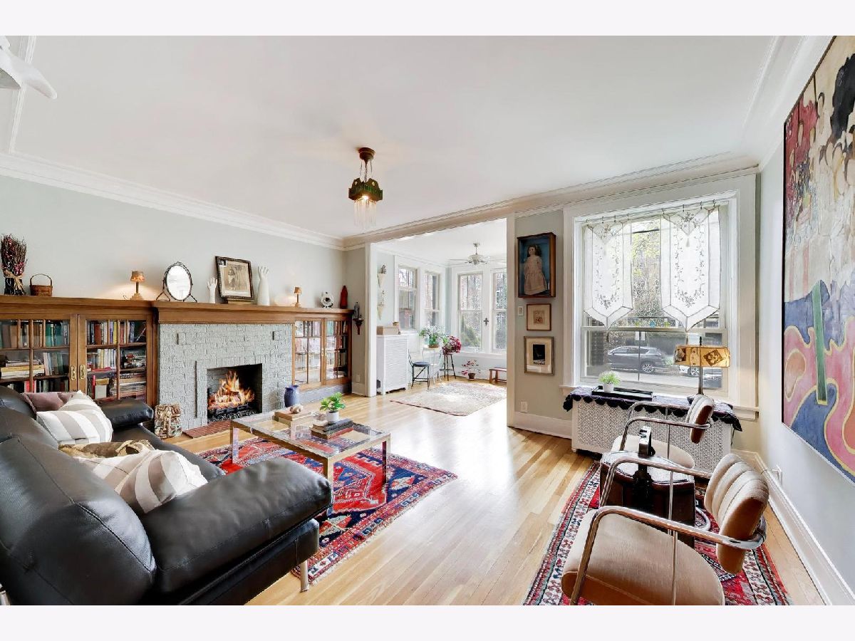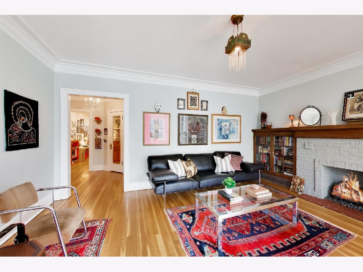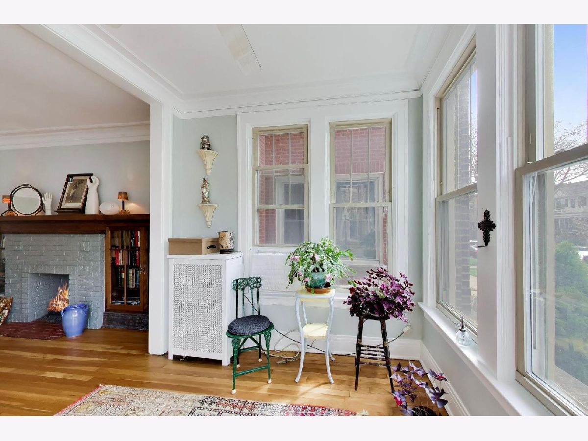Bright and spacious vintage 2 bed, 2 bath home in a charming 6-flat building located in East Rogers Park on a quiet, tree lined block with a beautifully landscaped front entry. As you step in, the living room is filled with natural light from large windows and features a gas fireplace with a classic mantel, recently installed and operated by remote control, framed by built in bookshelves. The space flows seamlessly into a front sunroom, creating a perfect sitting area or reading nook. Hardwood floors, crown molding, and thoughtful updates run throughout, blending with the home's vintage character. A long hallway provides great separation and leads to a formal dining room with original built ins, offering an ideal setup for entertaining. The fully renovated kitchen stands out with new cabinetry, updated stainless steel appliances, and a one of a kind island crafted from a refinished bowling alley, along with a charming built in detail that ties in the vintage feel. Off the back, an additional sunroom or bonus space features great natural light, newer flooring, and an extra closet, making it perfect for a home office, workspace, or additional storage. Both bedrooms are tucked down the hallway for added privacy. The primary bedroom includes a walk in closet and an updated en suite bath with a newer vanity and a glass enclosed walk in shower with tub. The second bedroom is well sized and positioned down the hall, offering flexibility for guests or a home office. The second full bath is located just next to the bedroom and has been updated with a newer vanity and a walk in shower. Very large basement includes common laundry with washer and dryer, a dedicated storage unit, and additional space for bikes or extra storage. Well maintained building with lush front and back yard greenery. Garage parking included. Conveniently located near Loyola Park, the lakefront, Red Line, Loyola University, and neighborhood dining and shopping.
