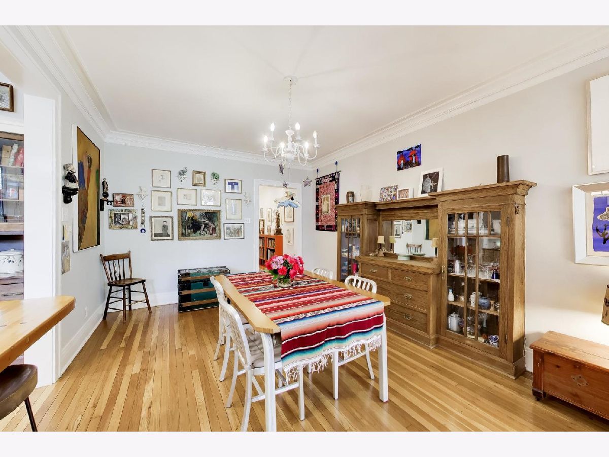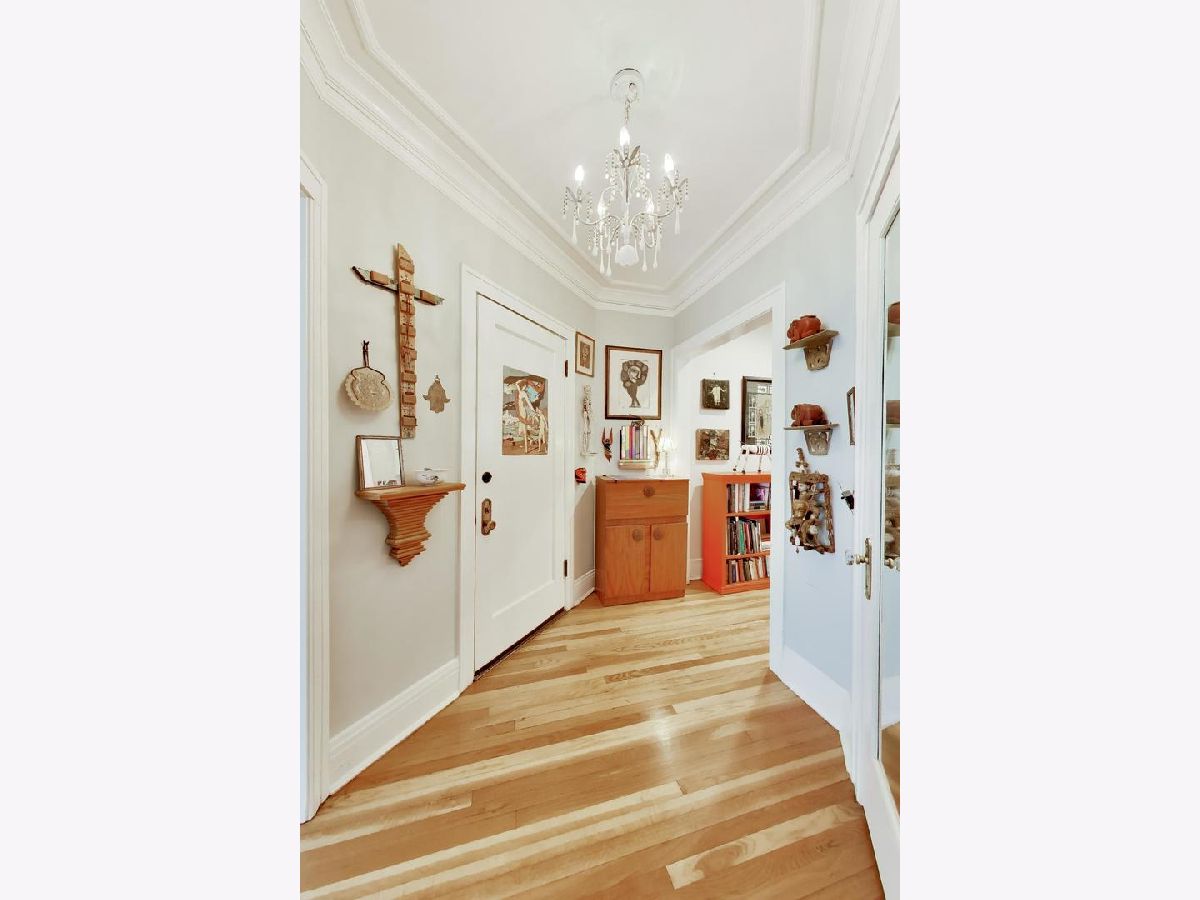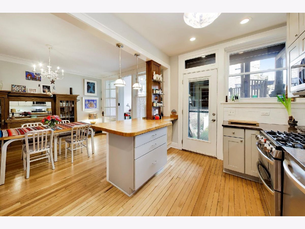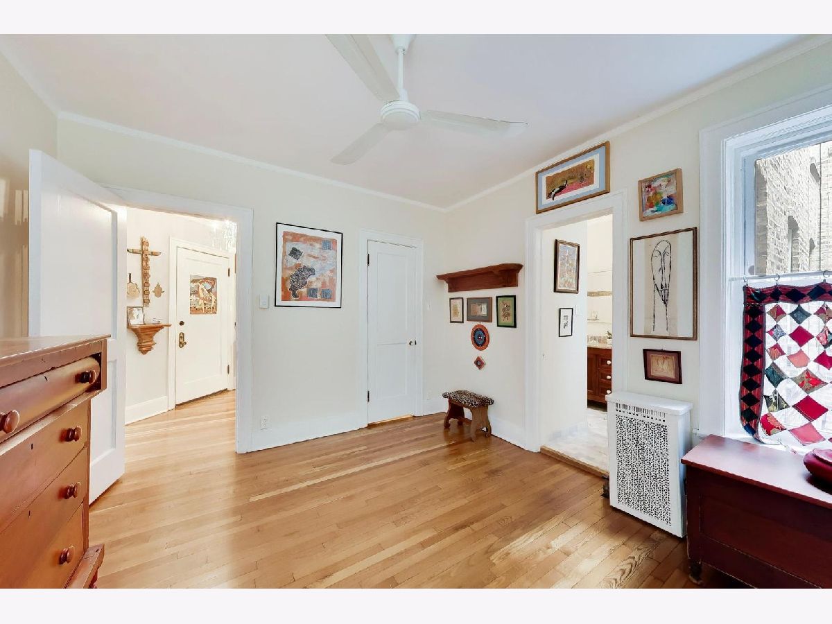 Bright and spacious vintage 2 bed, 2 bath home in a charming 6-flat building located in East Rogers Park on a quiet, tree lined block with a beautifully landscaped front entry. As you step in, the living room is filled with natural light from large windows and features a gas fireplace with a classic mantel, recently installed and operated by remote control, framed by built in bookshelves. The space flows seamlessly into a front sunroom, creating a perfect sitting area or reading nook. Hardwood floors, crown molding, and thoughtful updates run throughout, blending with the home's vintage character. A long hallway provides great separation and leads to a formal dining room with original built ins, offering an ideal setup for entertaining. The fully renovated kitchen stands out with new cabinetry, updated stainless steel appliances, and a one of a kind island crafted from a refinished bowling alley, along with a charming built in detail that ties in the vintage feel. Off the back, an additional sunroom or bonus space features great natural light, newer flooring, and an extra closet, making it perfect for a home office, workspace, or additional storage. Both bedrooms are tucked down the hallway for added privacy. The primary bedroom includes a walk in closet and an updated en suite bath with a newer vanity and a glass enclosed walk in shower with tub. The second bedroom is well sized and positioned down the hall, offering flexibility for guests or a home office. The second full bath is located just next to the bedroom and has been updated with a newer vanity and a walk in shower. Very large basement includes common laundry with washer and dryer, a dedicated storage unit, and additional space for bikes or extra storage. Well maintained building with lush front and back yard greenery. Garage parking included. Conveniently located near Loyola Park, the lakefront, Red Line, Loyola University, and neighborhood dining and shopping.