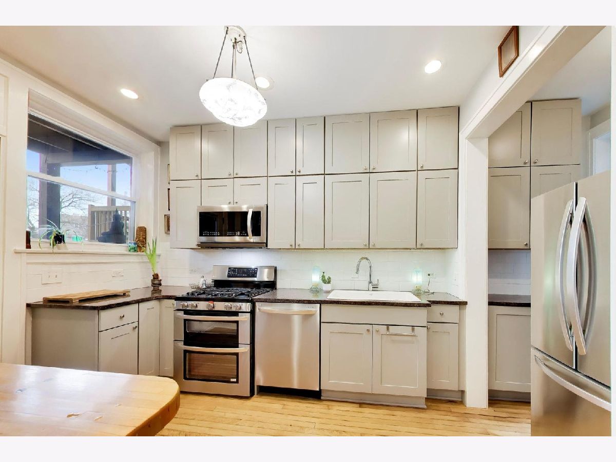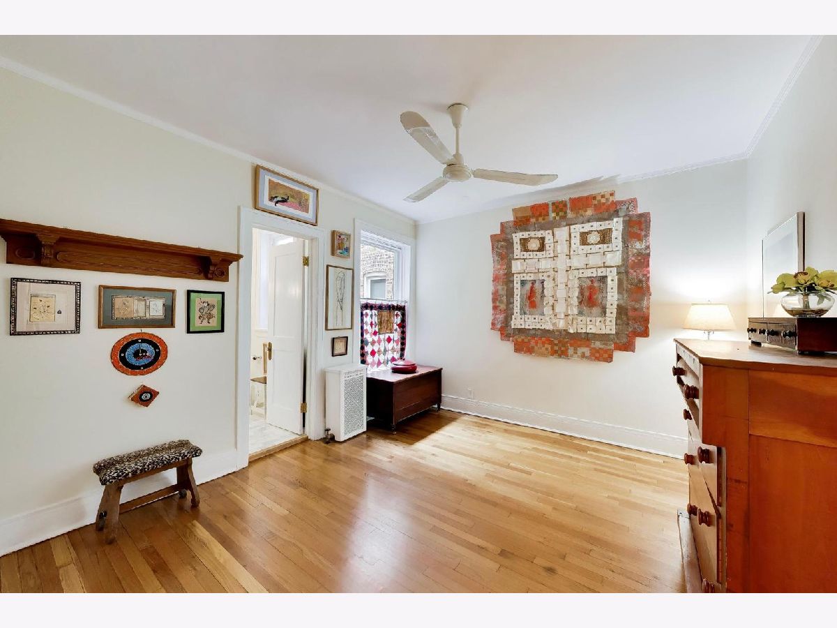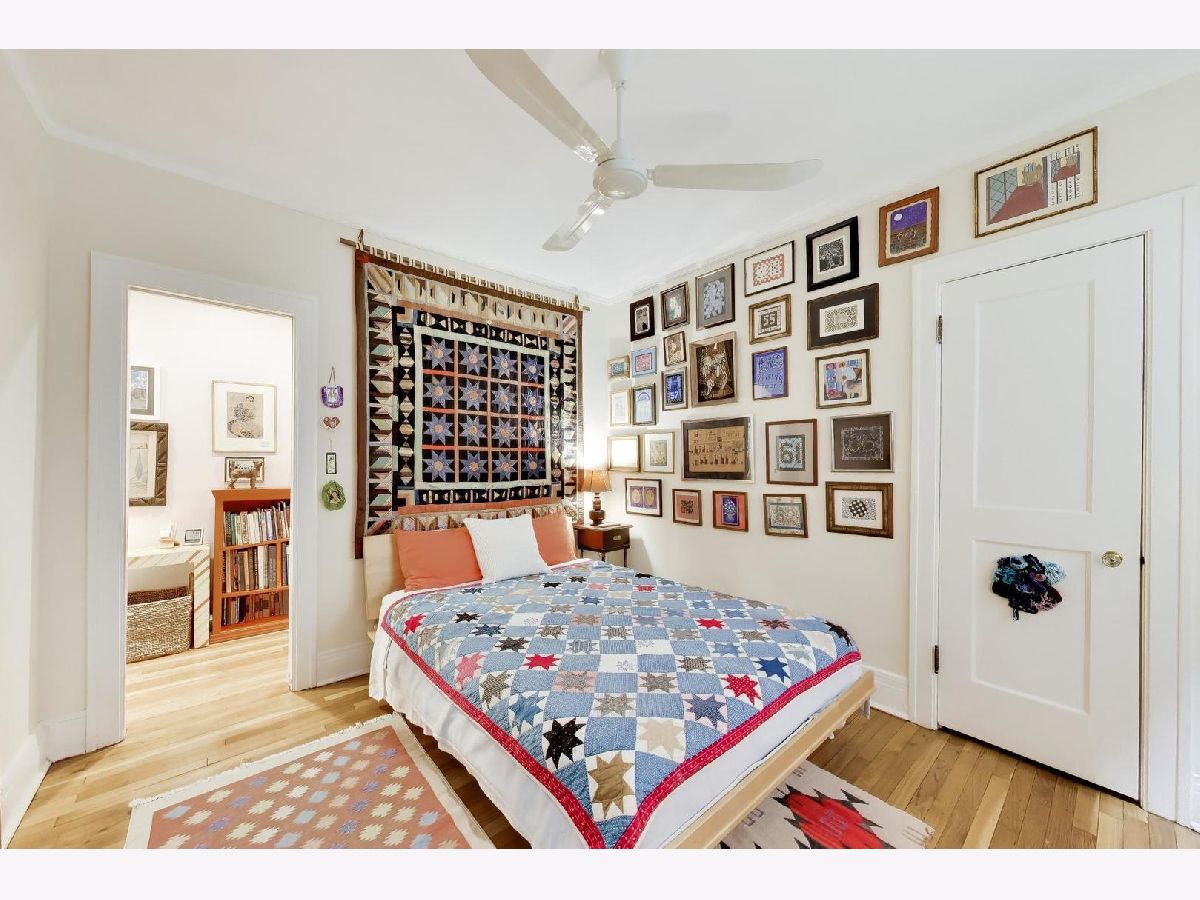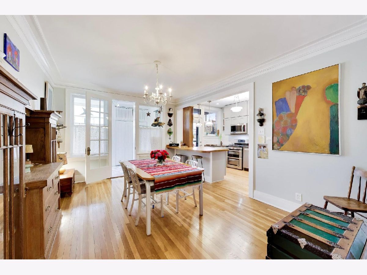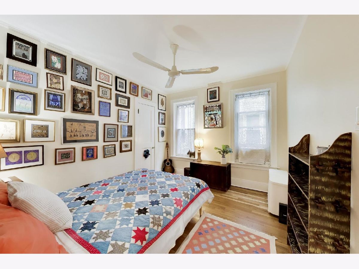 Bright and spacious vintage 2 bed, 2 bath home in a charming 6-flat building located in East Rogers Park on a quiet, tree lined block with a beautifully landscaped front entry. As you step in, the living room is filled with natural light from large windows and features a gas fireplace with a classic mantel, recently installed and operated by remote control, framed by built in bookshelves. The space flows seamlessly into a front sunroom, creating a perfect sitting area or reading nook. Hardwood floors, crown molding, and thoughtful updates run throughout, blending with the home's vintage character. A long hallway provides great separation and leads to a formal dining room with original built ins, offering an ideal setup for entertaining. The fully renovated kitchen stands out with new cabinetry, updated stainless steel appliances, and a one of a kind island crafted from a refinished bowling alley, along with a charming built in detail that ties in the vintage feel. Off the back, an additional sunroom or bonus space features great natural light, newer flooring, and an extra closet, making it perfect for a home office, workspace, or additional storage. Both bedrooms are tucked down the hallway for added privacy. The primary bedroom includes a walk in closet and an updated en suite bath with a newer vanity and a glass enclosed walk in shower with tub. The second bedroom is well sized and positioned down the hall, offering flexibility for guests or a home office. The second full bath is located just next to the bedroom and has been updated with a newer vanity and a walk in shower. Very large basement includes common laundry with washer and dryer, a dedicated storage unit, and additional space for bikes or extra storage. Well maintained building with lush front and back yard greenery. Garage parking included. Conveniently located near Loyola Park, the lakefront, Red Line, Loyola University, and neighborhood dining and shopping.