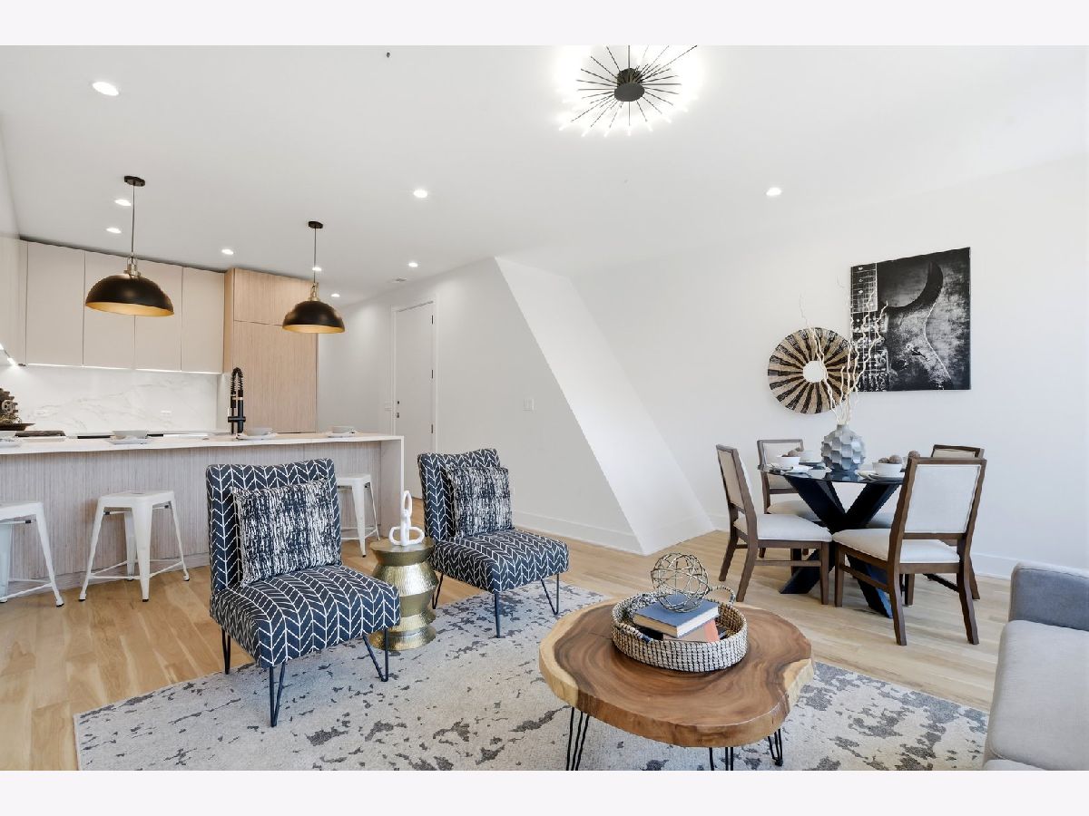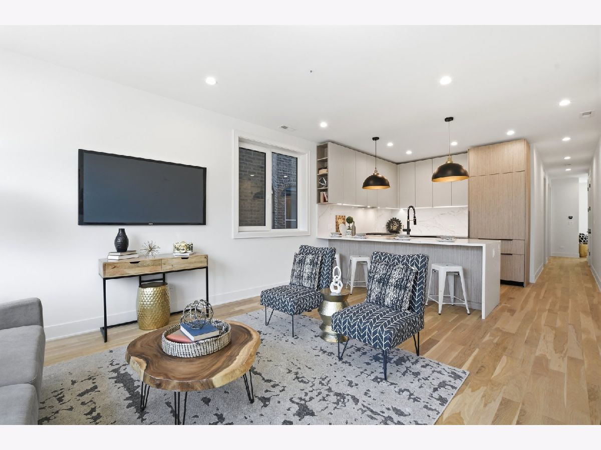 Experience elevated living in this brand-new Simplex in the heart of Ukrainian Village. This exceptional 3-bedroom, 2-bath residence offers a thoughtfully designed living space with luxury finishes throughout. The main level features a bright, open-concept layout anchored by massive, floor-to-ceiling west-facing European tilt-and-turn windows, delivering abundant natural light along with superior insulation and soundproofing. Wide-plank flooring and designer lighting add warmth and sophistication. The chef's kitchen showcases custom European cabinetry, quartz countertops with a dramatic waterfall edge and full-height backsplash, and a premium Thermador appliance package with a fully integrated refrigerator and dishwasher. Down the hall, you'll find oversized bedrooms and spa-inspired baths adorned with large-format tile and high-end finishes. The primary suite offers a peaceful eastern exposure, a generous walk-in closet, and a luxurious bath with a soaking tub, double vanity, and a separate glass-enclosed shower. Additional highlights include top-tier mechanicals with a tankless water heater, high-efficiency furnace, central AC, and humidifier. The home also features a private outdoor space, a carport garage space with an EV charger, and a one-year builder's warranty. Ready for immediate occupancy. Ideally located near Division Street and all the dining, shopping, parks, and CTA access that Ukrainian Village and Wicker Park have to offer, this home perfectly blends modern luxury with neighborhood charm.