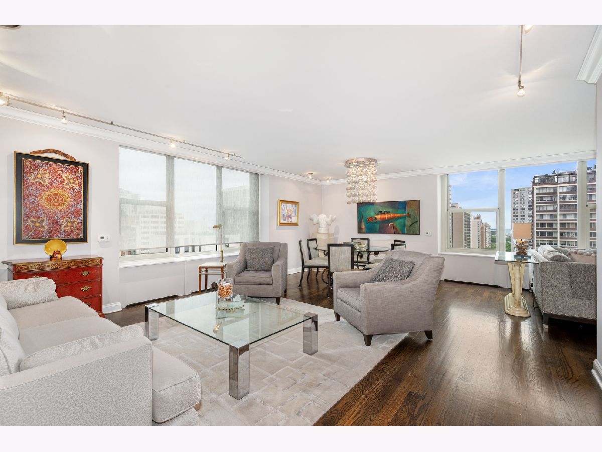 GOLD COAST LOCATION WITH NYC SOPHISTICATION. STUNNING, UNIQUE DESIGN WITH THE HIGHEST FINISHES THROUGHOUT. ENTER THE GRACIOUS FOYER WITH FLOOR TO CEILING WHITE-GLAZED PANELS AND DOORS DEFINING THE PUBLIC AND PRIVATE ROOMS WITH PIN-POINT LIGHTING ON THE ARTWORK AND FOYEE TABLE. THE LIVING ROOM IS TO THE RIGHT WITH VIEWS DOWN ON THE HISTORIC STATE PARKWAY, THE LAKE, AND LINCOLN PARK. THE LIVING ROOM AND DINING AREA ARE SPACIOUS, PERFECT FOR LARGE GATHERINGS AND INTIMATE DINING. FOR THOSE WHO APPRECIATE ART, THE ROOM OFFERS A 12' BUILT-IN, ILLUMINATED SHELVING UNIT, WALL SPACE FOR FINE ART, AND CHANNEL TRACK POINT-POINT LIGHTING. THE SEATING AREA IS ELEGANT, YET COMFORTABLE. THE DINING AREA EASILY ACCOMMODATES A TABLE WITH SEATING FOR 10 GUESTS. TAKE ANOTHER LOOK OUT THE WINDOW AT THE MANY HISTORIC PROPERTIES INCLUDING THE PLAYBOY MANSION/CONDOMINIUM. ADJOINING THE FORMAL ROOM IS THE FAMILY ROOM OPEN TO THE KITCHEN, IDEAL FOR QUIET EVENINGS AT HOME OR CASUAL ENTERTAINING. A BUILD-IN SUSPENDED CABINET WITH STONE COUNTER AND BOOKSHLEVES THAT FLANK THE ENTERTAINMENT CENTER. COZY UP ON THE SOFA WHILE YOU PREPARE DINNER IN THE TOTALLY UPDATED CONTEMPORARY KITCHEN: MEILE APPLIANCES, CUSTOM GERMAN CABINETRY, QUARTZ COUNTERS, ACCENT LIGHTING. THE COMBINATION OF BOTH MORE SOPHISTICAED FORMAL ROOMS WITH AN OPEN-KITCHEN FAMILY ROOM OFFERS THE IDEAL LAYOUT. RETURN TO THE PANELED FOYER AND PUSH OPEN THE PANEL THAT LEADS TO THE BEDROOMS AND BATHS. THE MASTER SUITE IS ENORMOUS ACCOMMODATING A FULL SUITE OF KING-SIZED FURNITURE, AN OVERSIZED CHAIR WITH OTTOMEN, AND A DESK. THERE ARE TWO WALK-IN CLOSETS BEHIND THE POCKET-DOORS, FULLY OUTFITTED WITH SHELVING, DRAWERS AND PLENTY OF HANGING CUBICLES. THE MASTER BATH WAS RECENTLY RENOVATED WITH AN OVERSIZED RAINSHOWER AND SUSPENDED CABINET. THE SECOND BEDROOM IS ALSO GENEROUSLY SIZED WITH TWO ADDITIONAL OUT-FITTED CLOSETS. THE SECOND BATH IS UPDATED WITH A DEEP CAST-IRON TUB, MABLE WALLS AND FLOORING AND A SUSPENDED VANITY. IN-UNIT LAUNDRY ROOM HAS STACKABLE BOSCH UNITS, A DEEP WASH BASIN AND ROOM FOR A PORTABLE LAUNDRY CART. THE ENTIRE HOME HAS RICK RED-OAK HARDWOOD FLOORS, SHARP CROWN MOLDINGS, ROLLER SHADES, AND A NUETRAL DECOR. BUILDING AMENITIES INCLUDE A GRACIOUS LOBBY, AN OUTDOOR POOL, LANDSCAPED ROOF TERRACE, LAUNDRY ROOM, VALET GARAGE PARKING FOR YOU AND YOUR GUESTS, 24 HOUR DOORMAN, ON-SITE MANAGER AND ENGINEERING STAFF. THE ASS'N IS WELL RUN. RECENT IMPROVEMENTS INCLUDE ALL NEW COOPER PIPING (2025), AIR-HANDLER, ELEVATORS, ROOFS, ROOF DECK WITH FURNITURE & LANDSCAPING, POOL UPDATES. 2026 BUDGETED PLAN INCLUDE LOBBY AND HALLWAY REDECORATING. WALK THROUGH CHICAGO MOST ELEGANT AND HISTORIC NEIGHBORHOOD, YET STEPS FROM THE LAKE, PARK, RUSH STREET, MAG MILE AND OLD TOWN. EXCELLENT PUBLIC AND PRIVATE SCHOOLS WITHIN BLOCKS. SPECIAL ASSESSMENT HAS BEEN LEVIED FOR 2025-2026 MAJOR CAPITAL IMPROVEMENTS. SCHEDULE IN PLACE TO COVER ASSESSMENT AND IS NEGOTAIABLE -----*****NOTE: OWNER IS A LICENSED REAL ESTATE AGENT IN ILLINOIS****-----