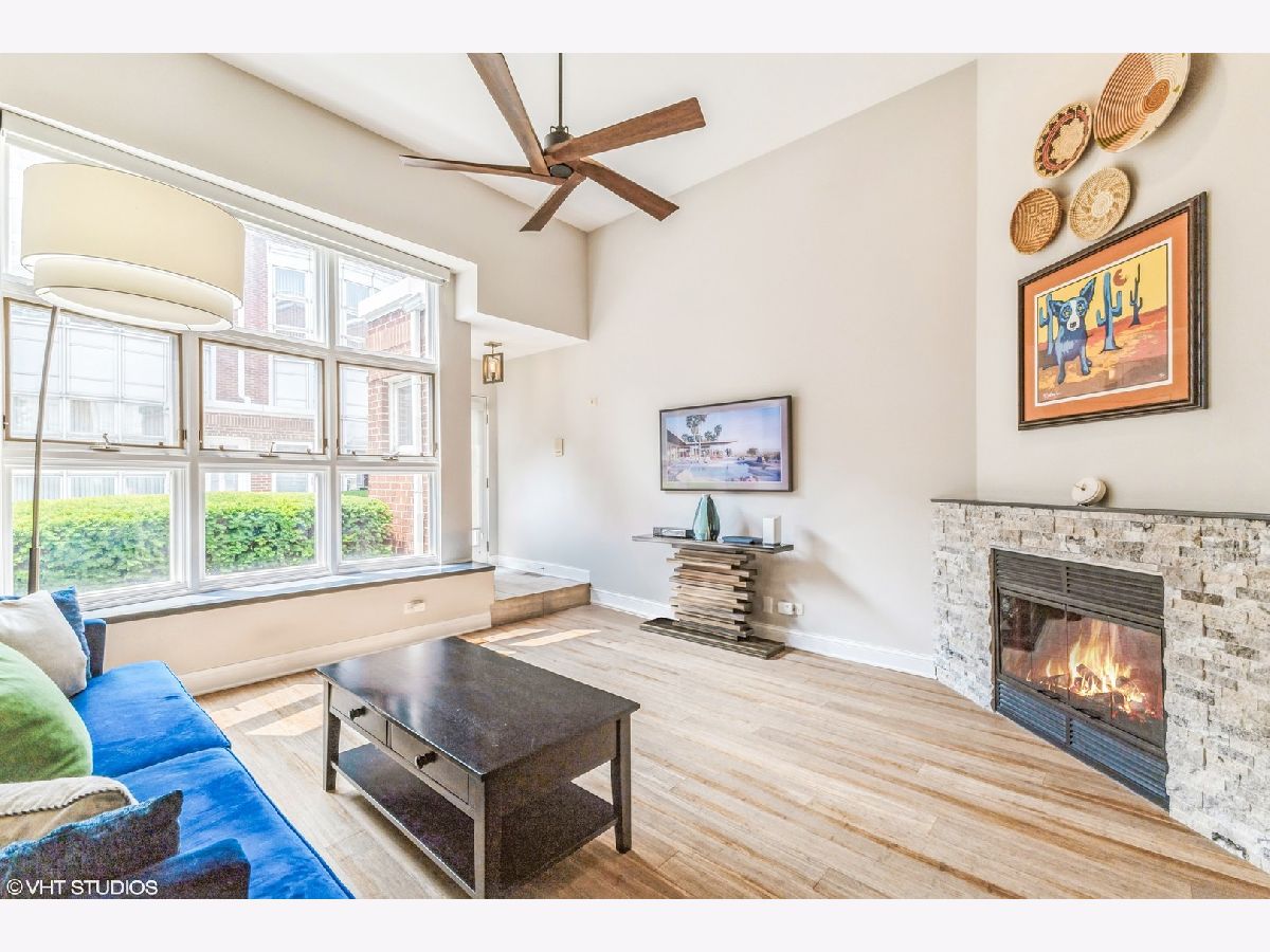 Rarely available townhome in the highly sought-after Dearborn Park II community of Chicago's vibrant South Loop. This spectacular, sun-drenched 2-bedroom, 2-bath home features a large bay window that fills the cozy living room with natural light, a fireplace, and hardwood floors throughout. The updated kitchen offers gray quartz countertops, stainless steel appliances, and a separate dining area. The spacious primary bedroom includes an ensuite bath, while both bedrooms provide access to the private balcony. The laundry room includes an updated washer/dryer, ample storage, and a massive crawl space under the living room for additional storage. Enjoy the convenience of an attached 1-car garage. Perfect location-just steps to South Loop Elementary, Cotton Tail Park, Mariano's, Jewel, Trader Joe's, local shops, restaurants, and public transportation.