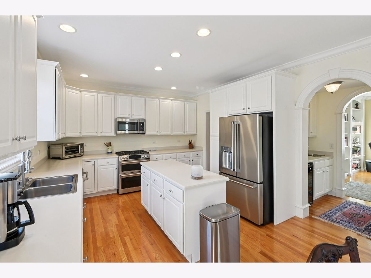 Welcome to this beautifully maintained 4-bedroom, 2.5-bathroom single-family residence, perfectly situated on a generously sized corner lot, offering the ideal blend of modern living and outdoor enjoyment. The interior boasts updated stainless steel kitchen appliances and a fully functional butler's pantry featuring a wet bar and wine fridge. Extensive millwork was added in 2019, including crown molding, baseboards, arches, and custom built-in floor-to-ceiling bookcases. The exterior features, a full paver patio, installed in 2016, includes a large fireplace, perfect for outdoor entertaining, complemented by paver brick driveway and sidewalks surrounding the home. The heated, fully dry walled, and insulated garage also includes a Level 2 electric vehicle charger. Updates and approximate dates include: Roof 50-year shingles in 2015, Furnace 2017, A/C condenser 2018, HWT 2016, Appliances 2020 .