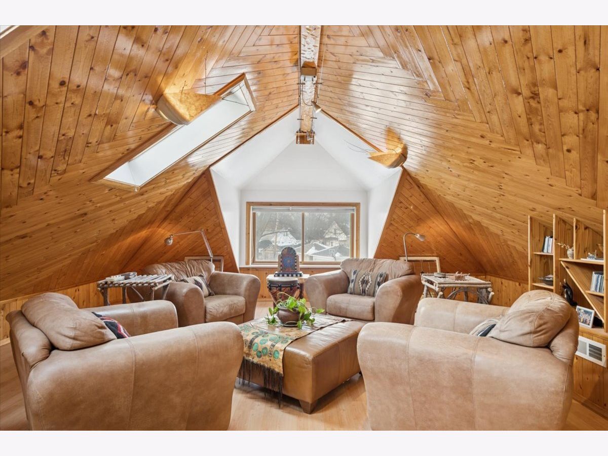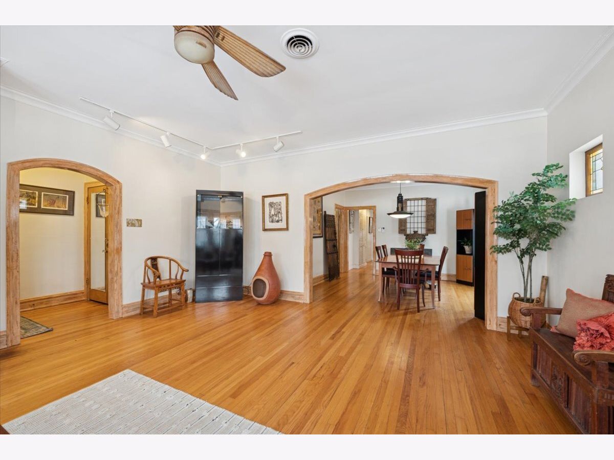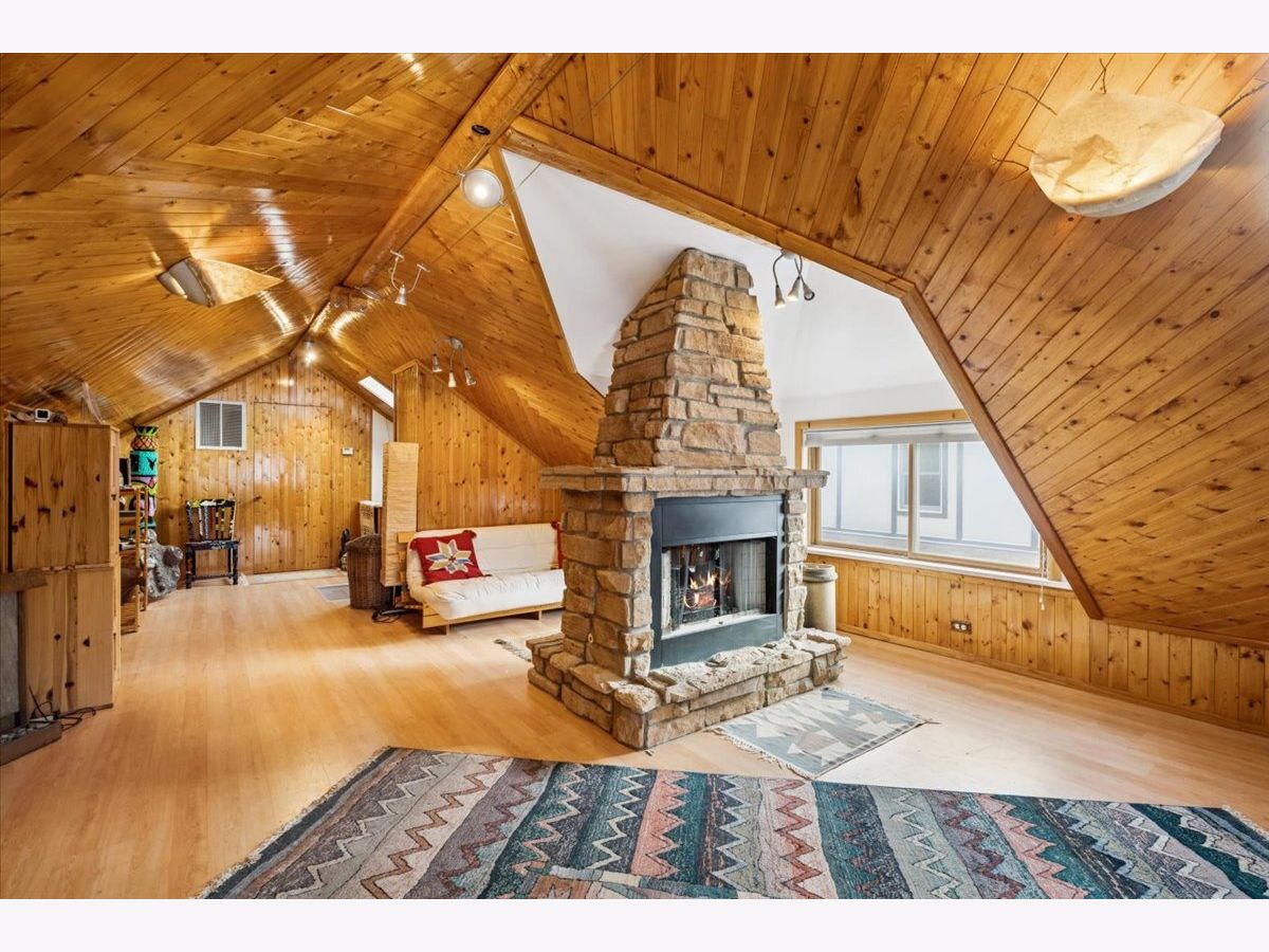 Set on a quiet, tree-lined street, this sunny 3+ bedroom brick bungalow blends classic charm with flexible living on every level. Situated on a wide lot with generous space between neighboring homes, you'll love the privacy and open feel. Step into a bright front living room featuring beautiful art glass and hardwood floors throughout most of the main level. There's a separate dining room for gatherings, plus a spacious and light-filled family room addition off the back that looks out to the private, fully fenced yard. The open kitchen connects seamlessly to the family room, making everyday living and entertaining a breeze. The second bedroom features a convenient Murphy bed, making it an ideal guest space that folds up and can double as a home office. Upstairs, you'll get those cozy lakehouse vibes as you step into an incredible open living space with a working fireplace, separate heat and air, and a spacious tucked-away storage area-perfect for a future primary suite, studio, or an extra hangout space. The finished basement adds even more versatility with a 4th bedroom, an additional office, and a huge rec room, plus it's plumbed for a bathroom, offering plenty of room to work, play, and relax. And the cherry on top: a four-car garage, a rare find. Conveniently located near all three downtowns-Oak Park, River Forest, and Forest Park-with easy access to shops, dining, Washington Commons Park, and commuting options, including the Metra and the Blue and Green Lines. Recent updates: house and garage tuckpointed and front porch retiled (2023), new quartz kitchen countertop, refrigerator, and dryer (2024), and new boiler (2025). This is the one you've been waiting for!