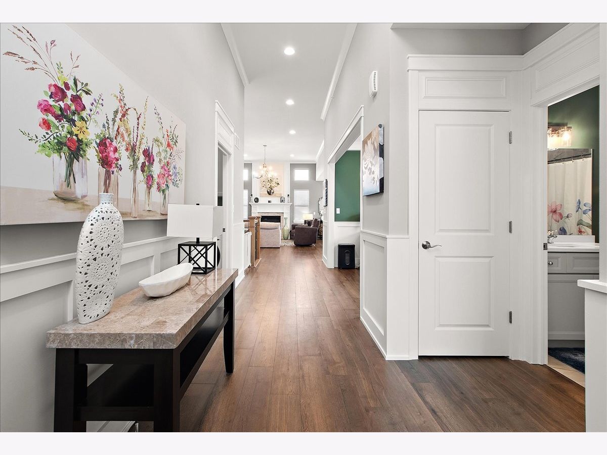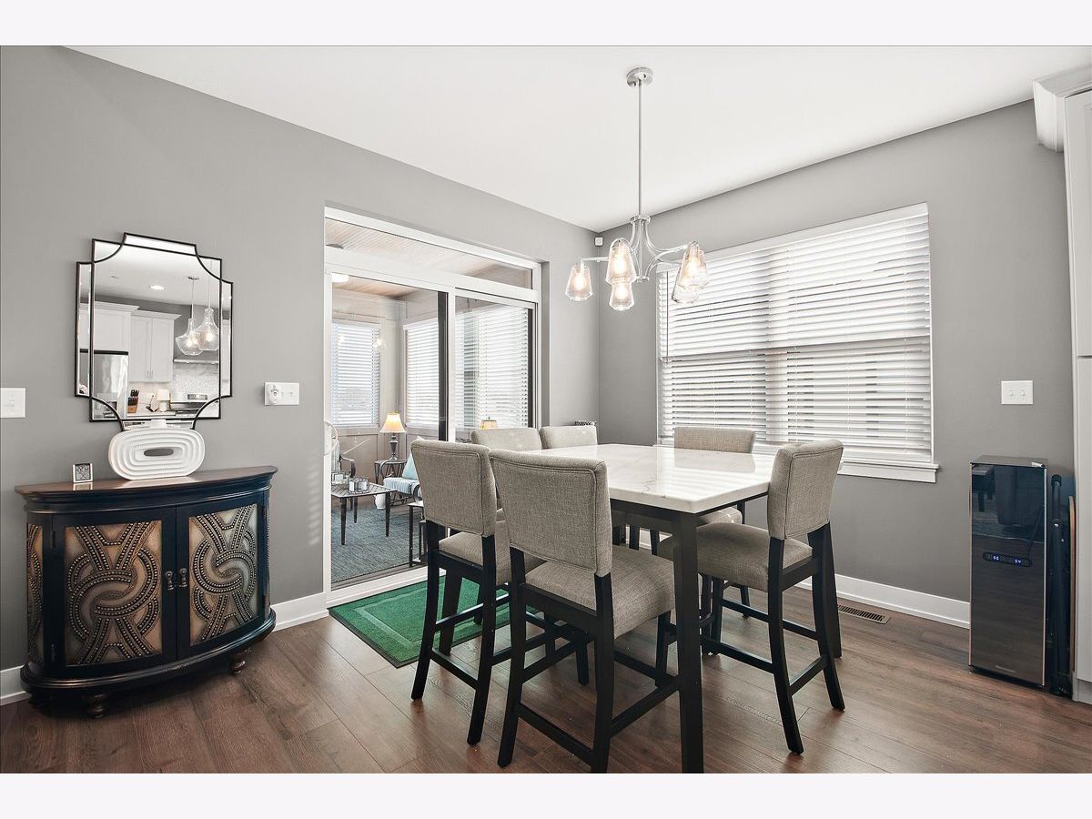 Don't miss this custom duplex townhome that answers many client's desires. End-unit, much like a single family home with 6x7 concrete patio, 144 sq. ft. maintenance free deck and enclosed 12x12, 3-season room! Brick and stone masonry, professional landscaping with sprinklers and concrete driveway. Soaring 12 ft. ceilings with crown molding, decorative lighting and luxury flooring throughout. Beautiful formal dining room or study with coffered ceiling and Judges panel wainscoting. Open concept family room with Heatilator Fireplace and custom mantel. Adjacent dry bar or beverage center with refrigerator, complimentary backsplash and under cabinet lighting. A kitchen so lit...packed with must haves including built-in microwave, stainless appliances, island with seating, backsplash with under cabinet lighting. Primary ensuite with upgrades, features a decorative tray ceiling, walk-in closet, dual sinks, a massive curb-less rain shower and extra linen closet. The bedrooms include ceiling fans and window blinds. Finished, open staircase (complete with wainscoting) to full lookout basement including 2 additional bedrooms, a full bath, a family room and an extra finished room for a workout room, an office or storage. Glamour garage with epoxy finished flooring, base trim and painted walls as well as a fast track hanging system. Pull down attic stairs and hot/cold water add function as well. This home includes a Culligan water softener with an R/O system, invisible fence, Schlage encode Wifi locks, Nest thermostat, Simply Safe alarm system, MyQ garage door opener with exterior keypad. Close proximity to downtown Lockport's shopping, dining, METRA and I-355. Schedule a time to see this in person, you won't regret it!