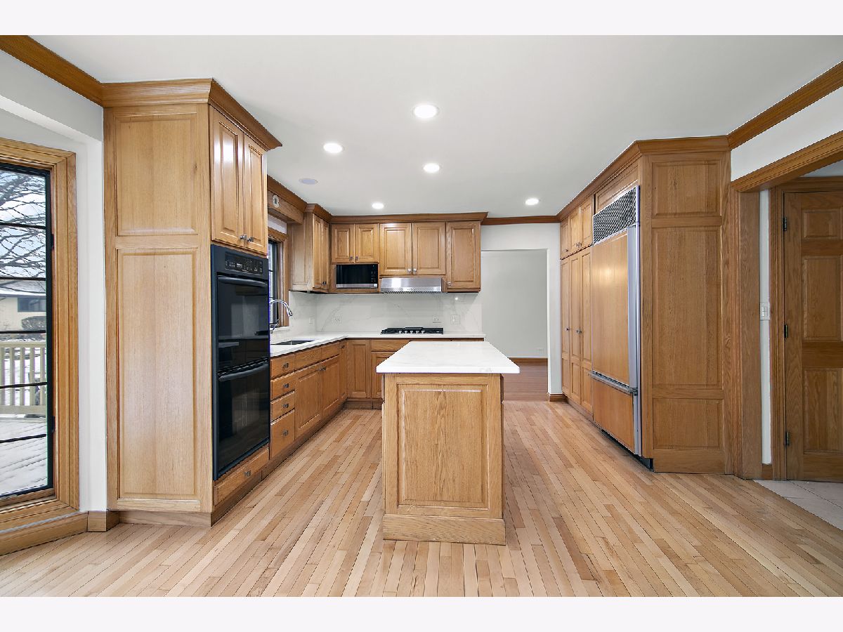 Space, light, and thoughtful design define this beautifully updated 5-bedroom, 4-bath residence in a highly sought-after location. Rich hardwood floors flow throughout, creating a warm and refined backdrop for both daily living and effortless entertaining. The redesigned kitchen serves as the heart of the home, featuring quartz countertops, abundant cabinetry, and a layout that balances elegance with practicality. The open floor plan connects seamlessly to the dining and living areas and extends into a sunken family room highlighted by a striking fireplace. Expansive sliding doors invite in natural light and open to a private backyard oasis with a brand-new oversized deck-perfect for entertaining or unwinding outdoors. All five generously sized bedrooms are conveniently located on the same level, offering a rare and highly functional layout. The primary suite provides a peaceful retreat, while the additional bedrooms offer flexibility for family, guests, or a dedicated home office. The fully finished basement adds incredible versatility with a custom entertainment center, wet bar, second kitchen, and full bath-ideal for gatherings, recreation, or extended living arrangements. A charming front balcony, access to scenic nature trails, and placement in a top-rated A+ school district complete the appeal. Spacious, stylish, and move-in ready-this home delivers comfort and sophistication at every turn. New roof and more!