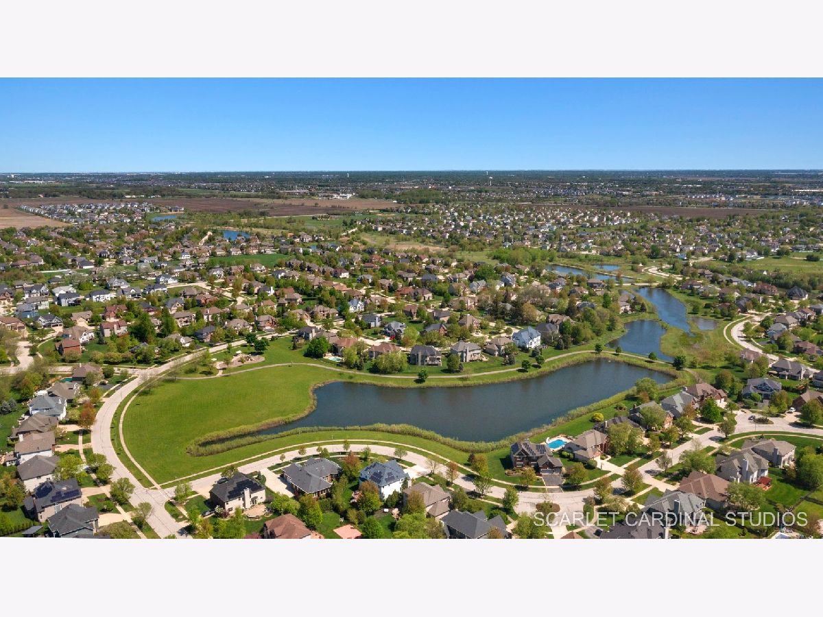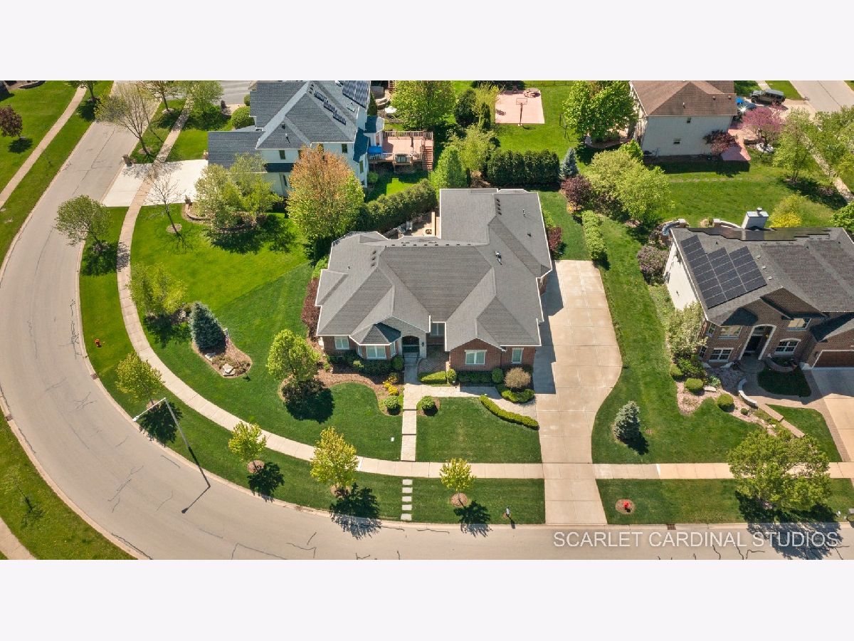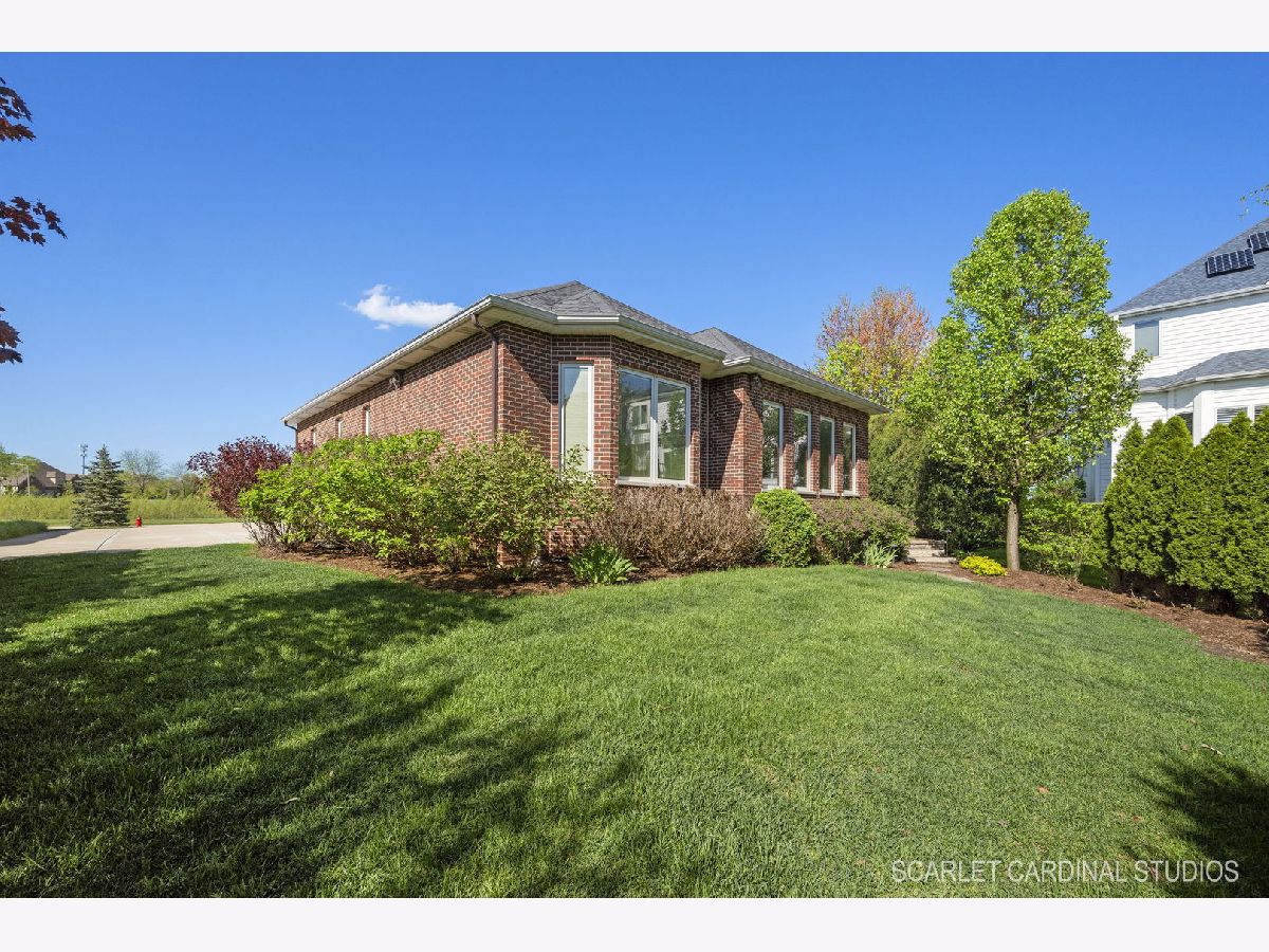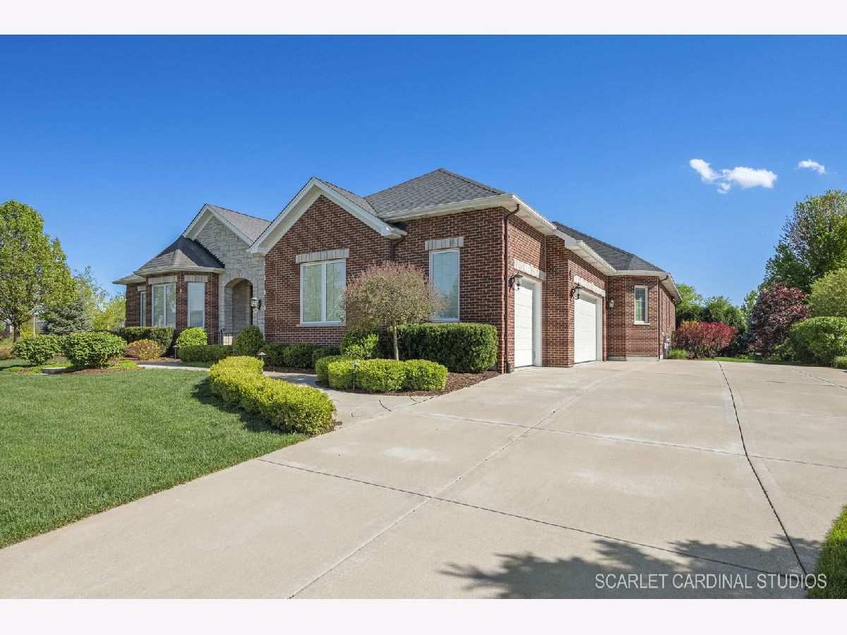 Why wait for new Construction! Nestled within the prestigious Dunmoor Estates, this exquisite one-of-a-kind Custom Ranch-style residence, crafted by Oak Hill Builders, stands as a testament to luxury living. Its captivating blend of All Brick and Stone exterior exudes timeless elegance, setting the stage for a truly remarkable home. With four bedrooms and three and a half bathrooms, this residence epitomizes spaciousness and comfort, showcasing meticulous attention to detail throughout, from the full finished basement to the 3 1/2 car heated garage. Step inside to discover an open floor plan seamlessly integrating the living spaces. The gourmet kitchen, the heart of the home, is a haven for culinary enthusiasts. Featuring Brakur custom cabinetry with custom built-ins and pull-out drawers, granite counters, a Center Island, breakfast bar, eat-in area, walk-in pantry, and top-of-the-line Thermador appliances including a dual oven, cooktop, and dishwasher, it epitomizes sophistication. Entertain guests effortlessly in the expansive family room, adorned with soaring ceilings, a custom stone gas log fireplace, dual oversized skylights, surround sound, and 4" hardwood Oak flooring. Find serenity in the sunroom, boasting French doors and a slider leading to the brick paver patio, perfect for moments of relaxation. The master suite offers a private retreat, complete with a voluminous ceiling, a generous walk-in closet, and a luxurious ensuite bath with a whirlpool tub, separate shower, elegant lighting, and dual vanities. Additional highlights include a first-floor office/den, a dining room adorned with an elegant chandelier, wainscotting, and hardwood flooring, as well as a laundry room for added convenience. The deep pour basement offers a fourth bedroom, a full bathroom, huge recreation area, and ample storage space. This home boasts numerous upgrades, including 10' ceilings on the first floor, 4" hardwood floors throughout the first floor (Except Sunroom) , crown molding, columns, 8" baseboards, tankless hot water tank, high-efficiency furnace with UV light protection, central vacuum, inground lawn sprinklers, and upgraded Pella windows. Home is professionally landscaped with a front brick paver patio as well. With impeccable craftsmanship and unparalleled amenities, it epitomizes luxury living at its finest. Don't miss the opportunity to make this your dream home, conveniently located near District #202 schools and overlooking the tranquil pond and park. Welcome Home!