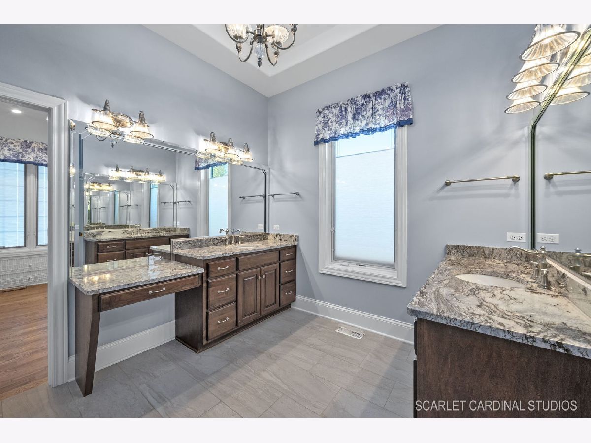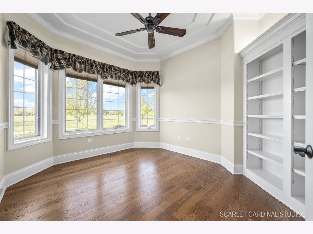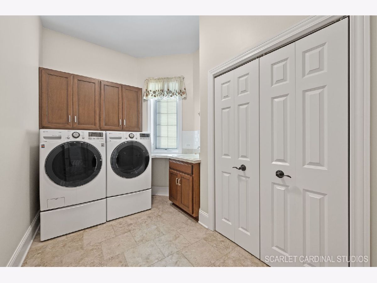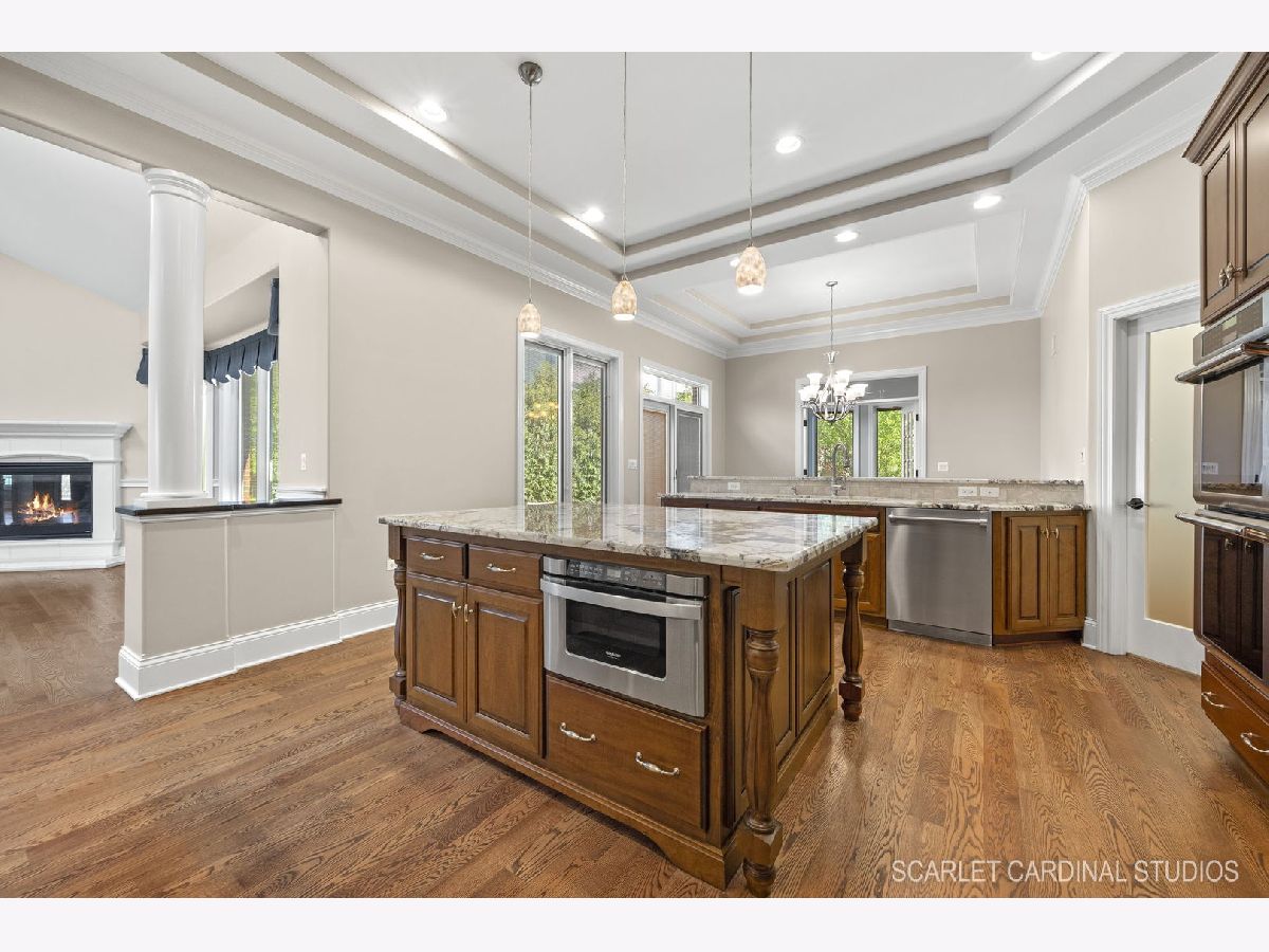 Why wait for new Construction! Nestled within the prestigious Dunmoor Estates, this exquisite one-of-a-kind Custom Ranch-style residence, crafted by Oak Hill Builders, stands as a testament to luxury living. Its captivating blend of All Brick and Stone exterior exudes timeless elegance, setting the stage for a truly remarkable home. With four bedrooms and three and a half bathrooms, this residence epitomizes spaciousness and comfort, showcasing meticulous attention to detail throughout, from the full finished basement to the 3 1/2 car heated garage. Step inside to discover an open floor plan seamlessly integrating the living spaces. The gourmet kitchen, the heart of the home, is a haven for culinary enthusiasts. Featuring Brakur custom cabinetry with custom built-ins and pull-out drawers, granite counters, a Center Island, breakfast bar, eat-in area, walk-in pantry, and top-of-the-line Thermador appliances including a dual oven, cooktop, and dishwasher, it epitomizes sophistication. Entertain guests effortlessly in the expansive family room, adorned with soaring ceilings, a custom stone gas log fireplace, dual oversized skylights, surround sound, and 4" hardwood Oak flooring. Find serenity in the sunroom, boasting French doors and a slider leading to the brick paver patio, perfect for moments of relaxation. The master suite offers a private retreat, complete with a voluminous ceiling, a generous walk-in closet, and a luxurious ensuite bath with a whirlpool tub, separate shower, elegant lighting, and dual vanities. Additional highlights include a first-floor office/den, a dining room adorned with an elegant chandelier, wainscotting, and hardwood flooring, as well as a laundry room for added convenience. The deep pour basement offers a fourth bedroom, a full bathroom, huge recreation area, and ample storage space. This home boasts numerous upgrades, including 10' ceilings on the first floor, 4" hardwood floors throughout the first floor (Except Sunroom) , crown molding, columns, 8" baseboards, tankless hot water tank, high-efficiency furnace with UV light protection, central vacuum, inground lawn sprinklers, and upgraded Pella windows. Home is professionally landscaped with a front brick paver patio as well. With impeccable craftsmanship and unparalleled amenities, it epitomizes luxury living at its finest. Don't miss the opportunity to make this your dream home, conveniently located near District #202 schools and overlooking the tranquil pond and park. Welcome Home!
