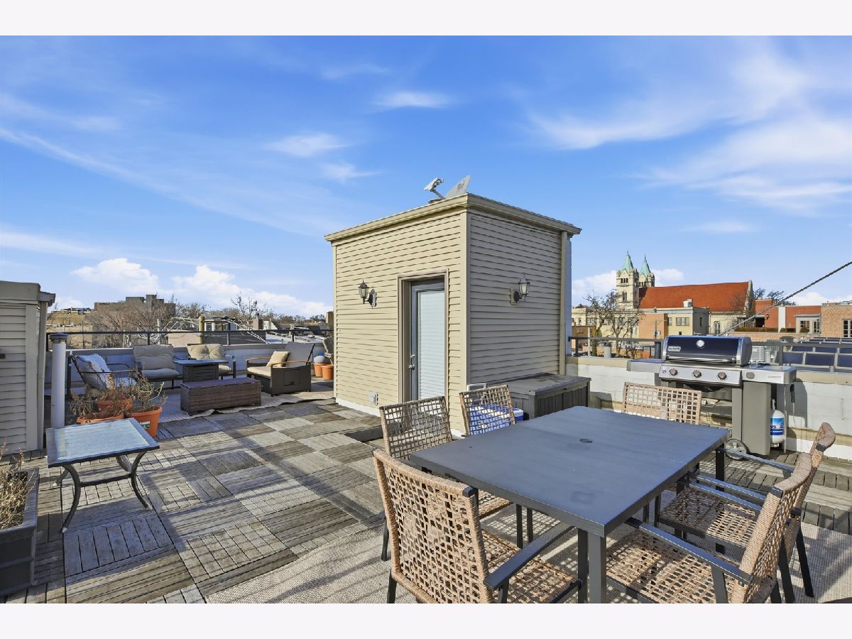 Stunning Lincoln Park Townhome with 800 SF Rooftop Deck & Skyline Views Welcome to this spacious, turnkey townhome tucked inside a charming gated & lush courtyard in the heart of Lincoln Park. Designed for both everyday comfort and unforgettable entertaining, this home is crowned by a spectacular 800 sq ft private rooftop deck with unobstructed sunset and city views-an entertainer's dream and a perfect urban retreat. The 1st floor is thoughtfully designed for hosting, complete with a powder room and laundry featuring a new washer and dryer, plus fresh paint and modern lighting throughout. Inside, enjoy hardwood floors and stairs, custom molding and trim, and a stylish wood-burning fireplace anchoring the living space. The open-concept kitchen shines with white 42" cabinetry, stainless steel appliances, new countertops, and a new custom backsplash, along with a cozy breakfast sitting area. A first-floor powder room has been upgraded with a new vanity and sink.There is also potential to reconfigure the powder room or large bath to create a second full bath. Upstairs, you'll find two generously sized bedrooms with excellent closet space. The primary suite features two walk-in closets and custom accent trim. The large hall bathroom offers a dual vanity, whirlpool tub, and separate walk-in shower. This well-maintained building has seen significant improvements since 2017, including new roof and deck, furnace and A/C, siding, exterior doors, and all windows. Additional highlights include: Assigned detached garage parking with wall storage potential Custom paint, lighting, and millwork throughout Located in the highly sought-after Mayer Elementary and Lincoln Park High School districts Steps to everything: Summer House Santa Monica, Sushi Taku, Oz Park, the Clybourn Corridor, shopping, nightlife, movie theater, and the river Easy commute with nearby Brown and Red Lines and multiple bus routes Groceries close by: Mariano's (4 blocks), Trader Joe's (5 blocks), Target and Whole Foods (approx. 1 mile) This is a rare opportunity to own a beautifully upgraded townhome in one of Chicago's most coveted neighborhoods.