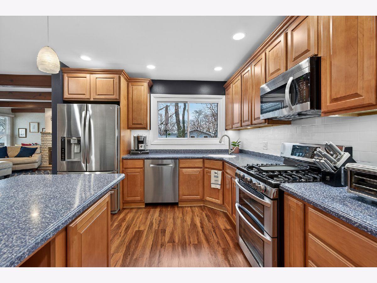 Rare opportunity to own a 4-bedroom, 2.5-bath Hearth model in the sought-after Highpoint subdivision of Hoffman Estates, just 3 blocks from Hoffman Estates High School and walking distance to the neighborhood elementary school and park. Located within District 54 and District 211. The exterior is what immediately separates this home from others in the neighborhood. Craneboard solid-core insulated siding (2023) was thoughtfully designed in three complementary styles, creating a distinctive architectural presence rather than a standard replacement including the repainted shed to match. The roof was replaced in 2021 and enhanced with Leaf Guard gutter guards (2023). Windows were updated in 2022, along with the addition of 12 inches of attic insulation - meaningful improvements that impact comfort and efficiency. Professional landscaping and hardscaping completed in 2022-2023 frame the home beautifully, while the expansive wrap-around wood deck-professionally refurbished and stained in 2025-plus a concrete patio and fenced backyard create exceptional outdoor living entertaining space that feels intentional. Inside, the kitchen is designed for both function and flow, featuring quality cabinetry, generous counter space, and stainless steel appliances including a double oven. The classic split-level layout provides multiple living areas, including a lower-level family room, offering flexibility for entertaining, daily living, or work-from-home needs. Minutes to Woodfield Mall, The Arboretum of South Barrington, and Schaumburg's business corridor, with convenient access to I-90, I-290, I-294, Route 53, and I-355. Approximately 24 minutes to O'Hare International Airport. These long-time owners leave a home that has been thoughtfully improved over time and is truly move-in ready. This home provides it all, architectural presence, outdoor living and a location that can not be beat.