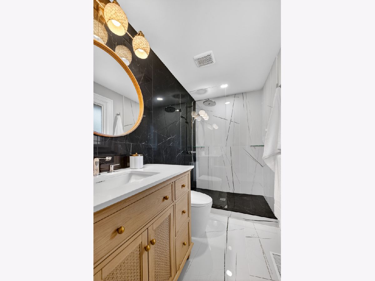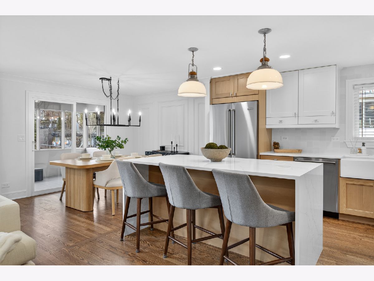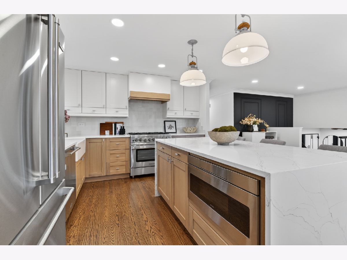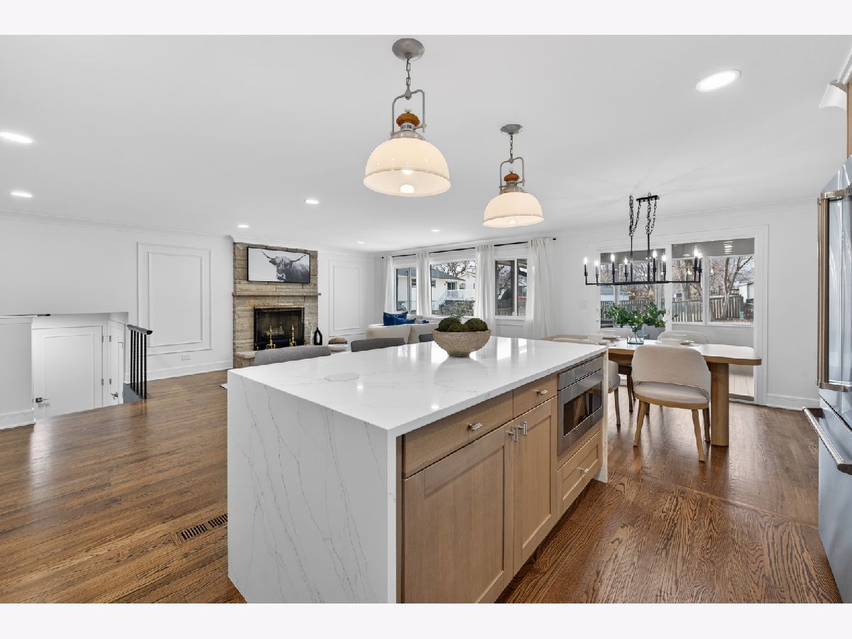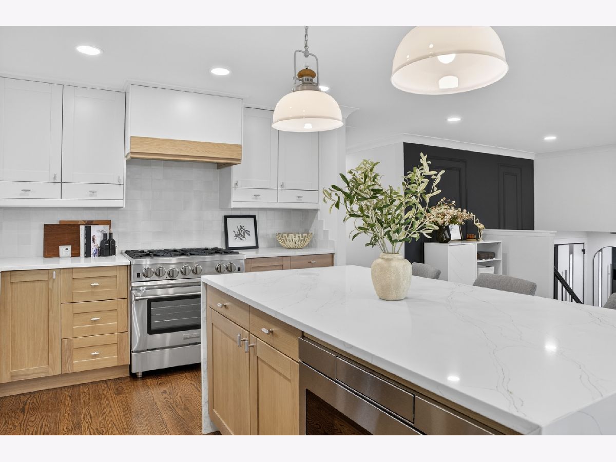 Welcome to 1338 Radcliffe! This completely reimagined FIVE bedroom home sits on an oversized lot in the highly desirable Weathersfield neighborhood. From the moment you step inside, it's clear every inch has been thoughtfully designed with high-end, magazine level finishes. The main level features beautiful hardwood flooring and custom millwork throughout, including detailed crown molding that elevates the entire space. The layout opens seamlessly for entertaining, allowing natural light to pour through the home. At the center is the designer kitchen, white oak cabinetry, a statement waterfall island, and top of the line BlueStar appliances, a professional grade choice known for true restaurant level performance. It's both stunning and functional. The spacious living room is anchored by a beautiful stone fireplace, creating warmth and balance to the open design. Down the hall, lined with added storage and thoughtful closet space, you'll find a fully redesigned hall bath finished with premium Grohe fixtures and three generously sized bedrooms, each complete with organized closet systems. The primary suite offers a striking white-on-black modern bathroom with a spacious walk-in shower and clean, bold finishes. The lower level expands the living space even further. A second real wood-burning fireplace centers the large family room, and a sleek wet bar with beverage fridge makes this level ideal for entertaining. Sliding patio doors lead directly to the backyard for seamless indoor-outdoor flow. Two additional bedrooms are located on this level, both featuring walk-in closets, along with another full bath complete with an oversized walk-in shower. And one of the true standouts of this home, a massive 14x17 laundry room. Not a pass-through. Not an afterthought. A fully functional space with room for storage, folding, organizing, and real everyday use. Located in highly sought-after District 54/211 and just minutes to the Schaumburg Township Library, Prairie Center for the Arts, Spring Valley Nature Center, parks, festivals, Woodfield Mall, expressways, and Metra. A true top to bottom transformation in one of Schaumburg's most established neighborhoods.
