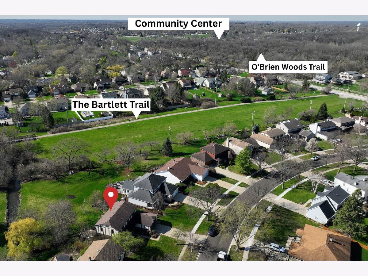 NEED SPACE??!! THIS FANTASTIC DOWNTOWN BARTLETT CHARMER FITS THE BILL WITH 4 LARGE BEDROOMS, 2.1 BATHS, FULL FINISHED BASEMENT, AND RARE .3 ACRE LOT BACKING TO EVEN MORE OPEN LAND! ~ Welcoming formal living room ~ Separate formal dining room ~ Light, bright kitchen with granite countertops, stainless steel appliances, spacious eating area, and oversized sliding glass door to deck ~ Family room featuring beamed ceiling and stunning brick fireplace ~ Second floor landing with built-in bookcases ~ Primary bedroom has walk-in closet and private bath ~ The finished basement is ready for entertaining with super cool built-in brick bar, and plenty of room for game tables and TV viewing ~ Extra large basement storage room ~ Hardwood flooring ~ Attached 2 car garage with opener ~ New dishwasher 2023 ~ New washing machine 2023 ~ New refrigerator 2022 ~ New oven 2020 ~ New microwave 2020 ~ Backyard deck ~ Incredible green space extending to neighborhood stream ~ Fiber optic cable coming to the area very soon ~ 1 mile to community center, pool, library, downtown restaurants, and Metra ~ Close to parks, forest preserves, and biking/hiking trails ~ Easy access to top notch Bartlett schools ~ 3,000 SQUARE FEET OF TOTAL LIVING SPACE ~ HUGE LOT ~ STELLAR LOCATION ~ TERRIFIC POSSIBILITIES ~ BRING YOUR IDEAS!!