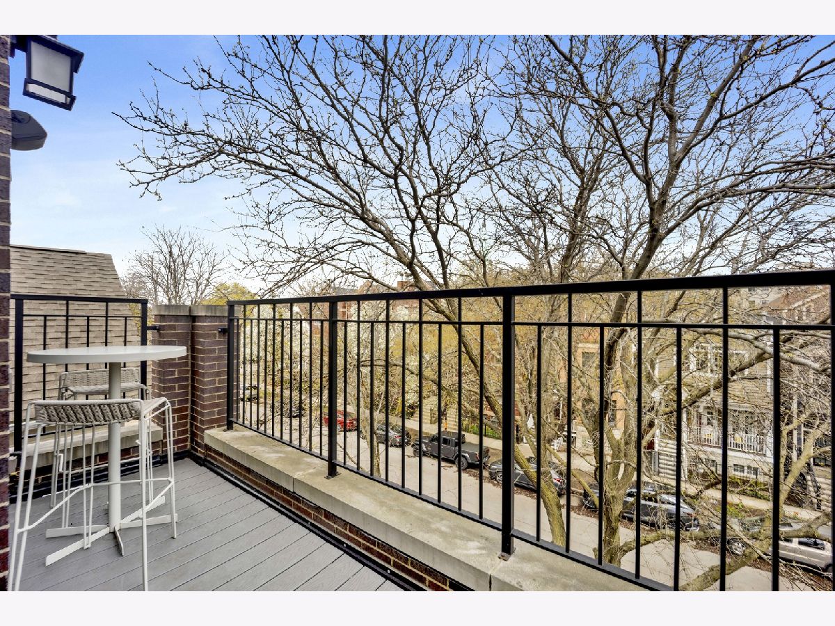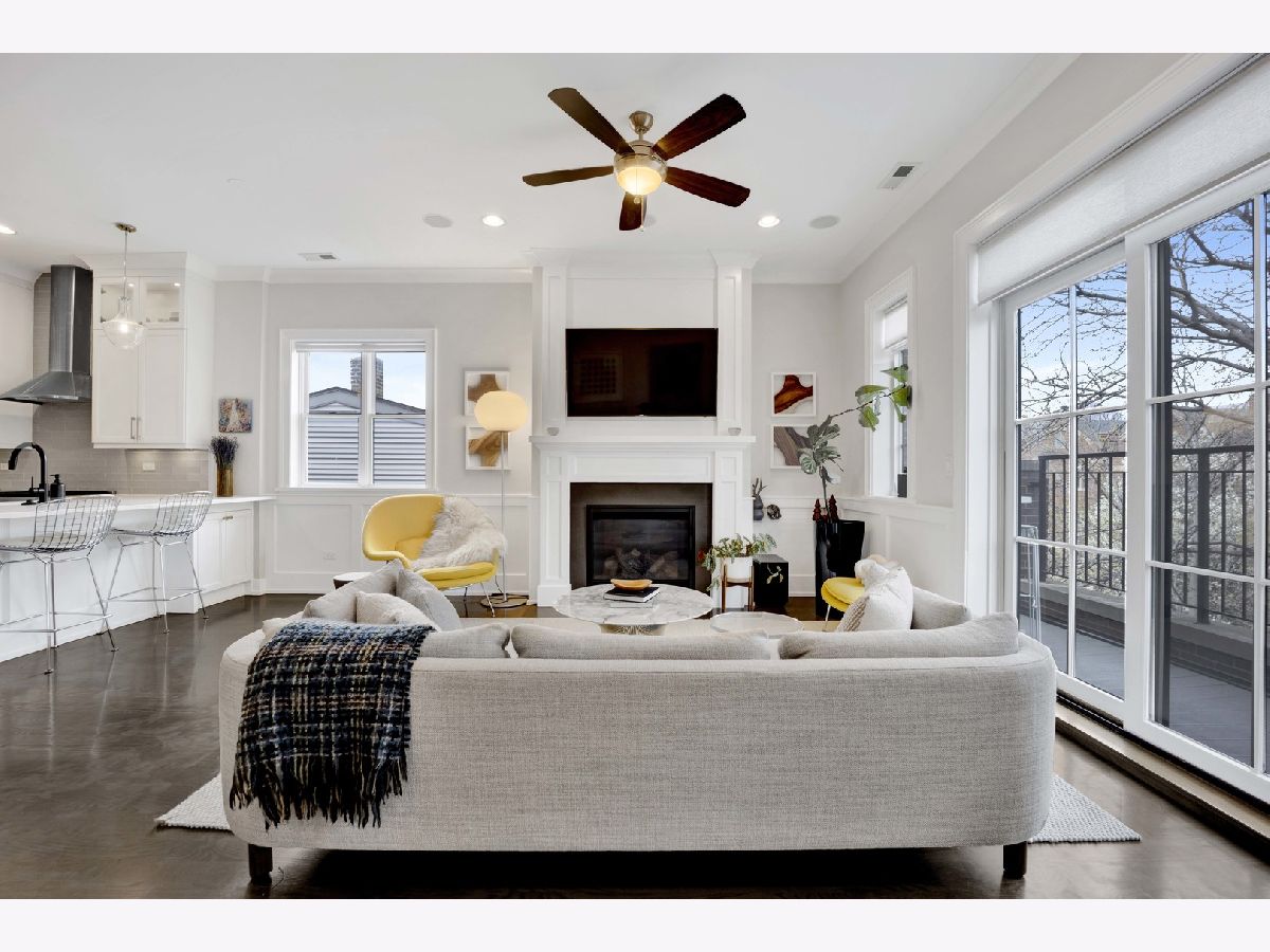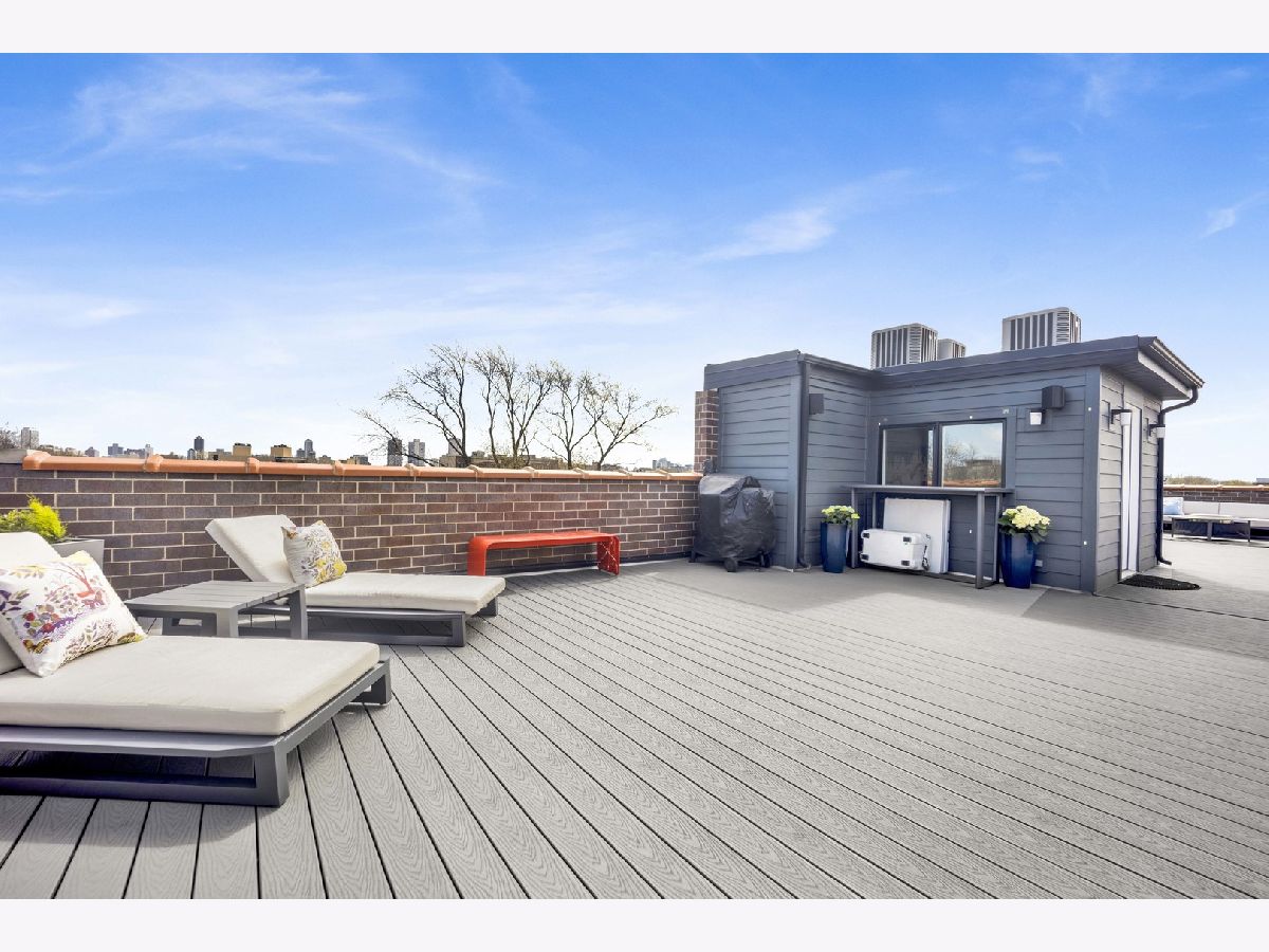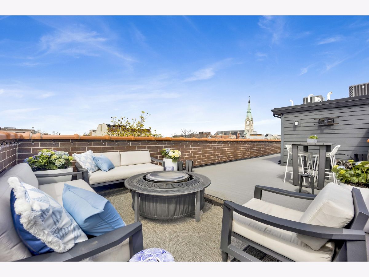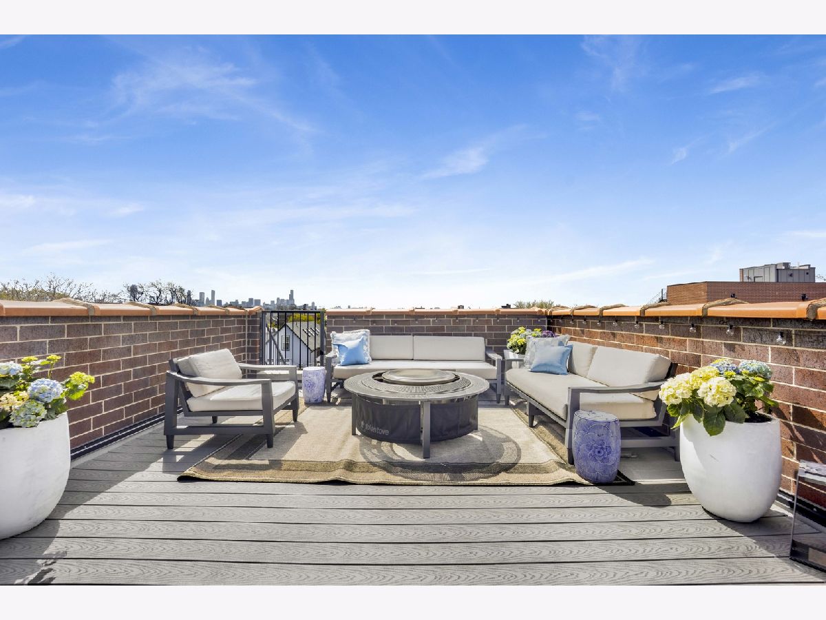 Discover refined city living in this exceptional top-floor 2-bedroom, 2-bath residence with a full outdoor rooftop deck. Perfectly situated on a quiet, tree-lined street, this is just steps from the vibrant heart of the Southport Corridor. Chic and stylish, this beautifully appointed home offers a thoughtfully designed open layout, highlighted by a show-stopping custom kitchen featuring premium Viking, Wolf, and Bosch appliances, sleek quartz countertops, and a designer tile backsplash, all flowing seamlessly into a bright, inviting, and spacious living room with a cozy fireplace, ideal for entertaining. Gracious and sophisticated touches include wainscoting and crown moldings. A rare front terrace extends the living space outdoors, perfect for morning coffee or evening relaxation. The luxurious primary suite serves as a true retreat, complete with a dual vanity, quartz counters, elegant marble flooring, heated floors, an oversized walk-in shower with rain head and steam and a professionally organizes walk-in closet. A generously sized second bedroom and a stunning second bathroom with a deep soaking tub provide both comfort and flexibility for guests or a home office. Interior stairs lead to a rooftop level featuring a built-in prep area with wine fridge and custom cabinetry, opening to a large private deck that is ideal for summer dining and effortless indoor-outdoor entertaining. Additional highlights include rich hardwood floors throughout, custom millwork, and designer lighting. All of this in an unbeatable location within walking distance to the lakefront, parks, restaurants, shopping, and everything Southport has to offer. Garage parking spot and a storage closet on the ground floor are included. WELCOME HOME.