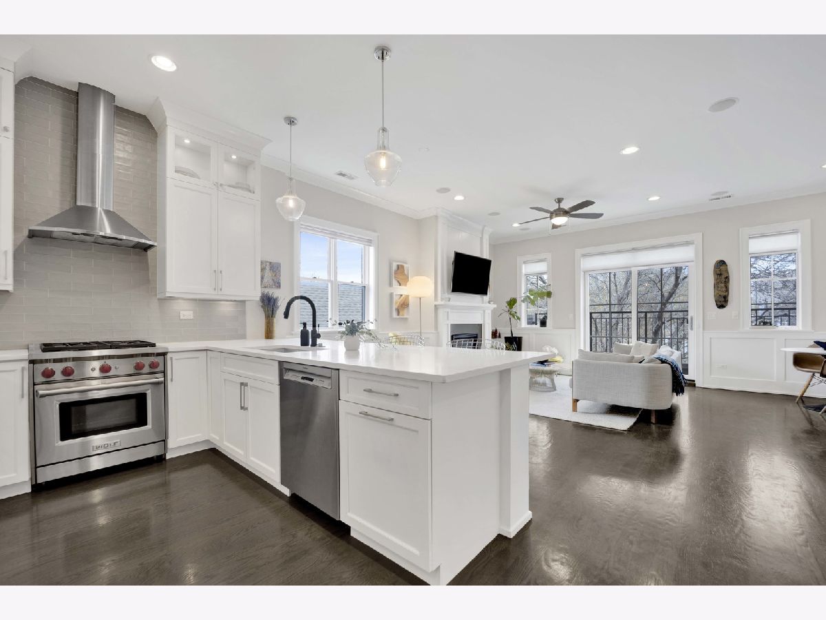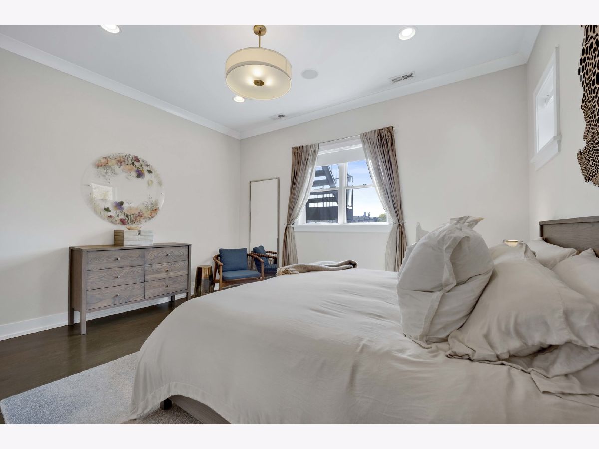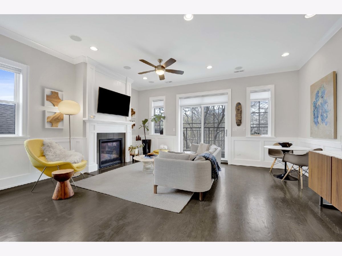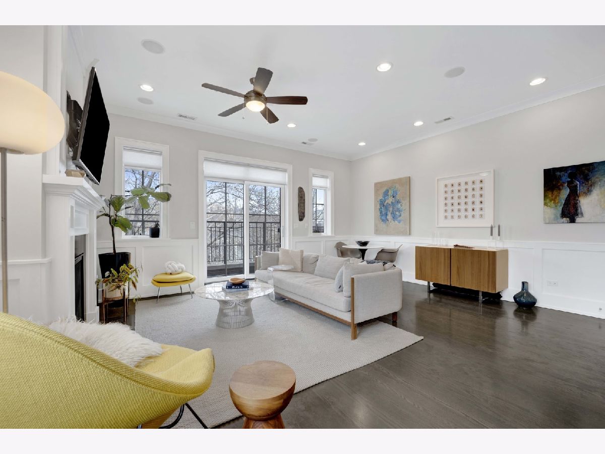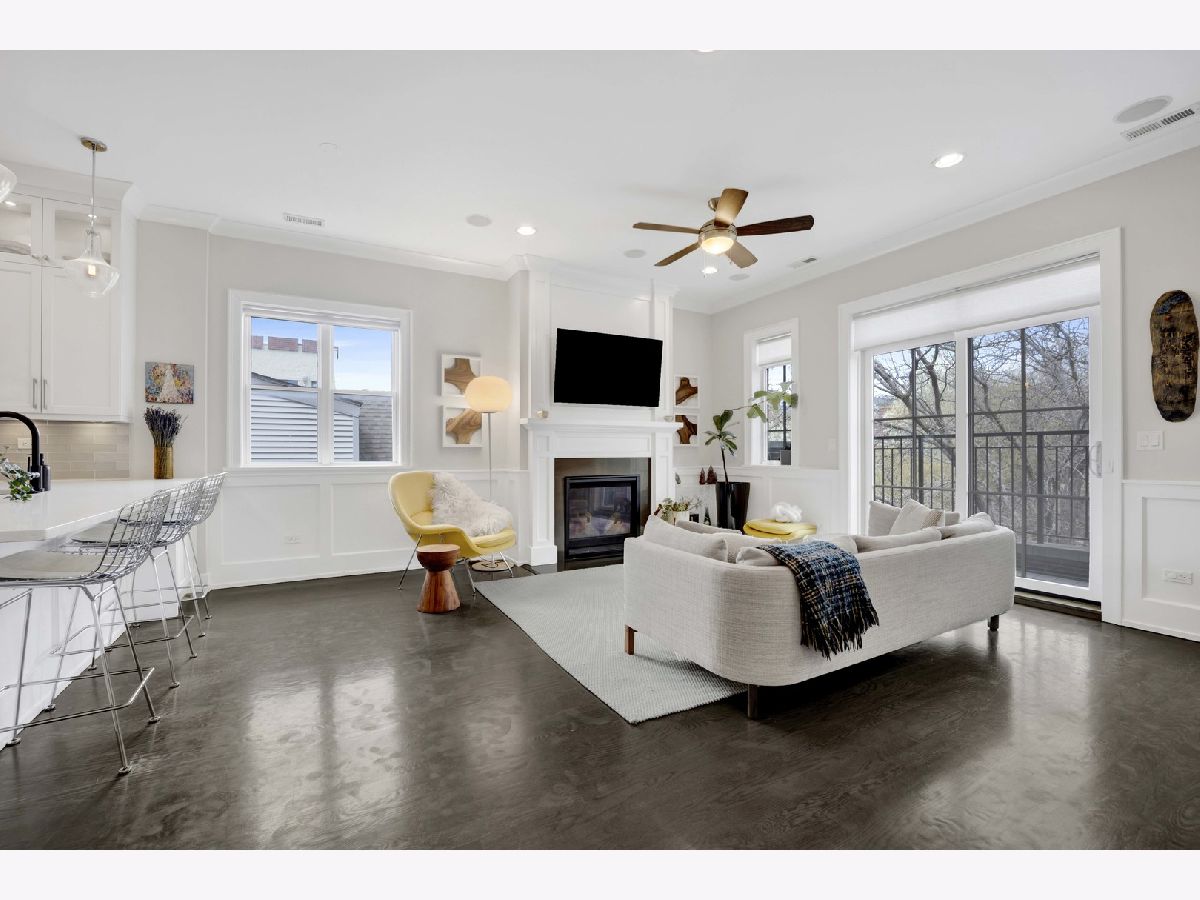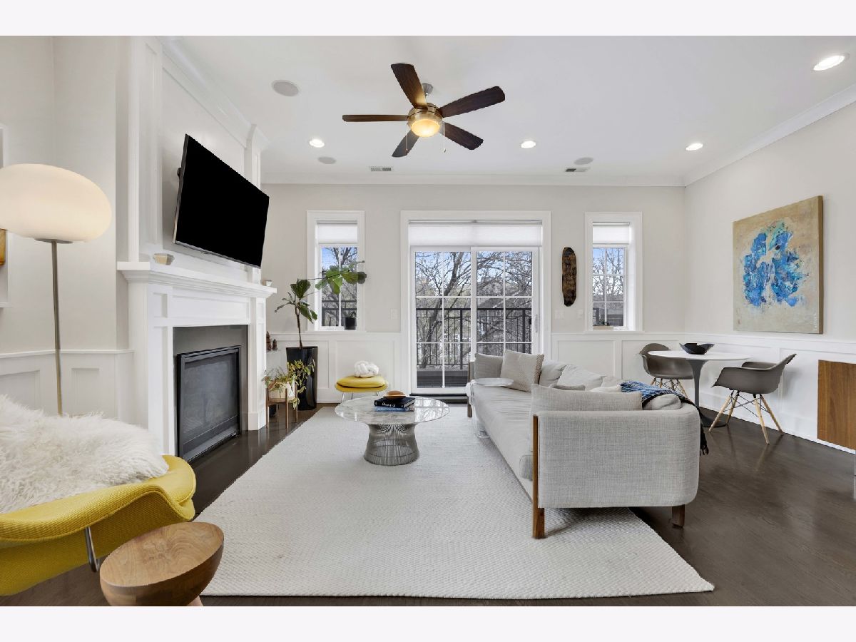 Discover refined city living in this exceptional top-floor 2-bedroom, 2-bath residence with a full outdoor rooftop deck. Perfectly situated on a quiet, tree-lined street, this is just steps from the vibrant heart of the Southport Corridor. Chic and stylish, this beautifully appointed home offers a thoughtfully designed open layout, highlighted by a show-stopping custom kitchen featuring premium Viking, Wolf, and Bosch appliances, sleek quartz countertops, and a designer tile backsplash, all flowing seamlessly into a bright, inviting, and spacious living room with a cozy fireplace, ideal for entertaining. Gracious and sophisticated touches include wainscoting and crown moldings. A rare front terrace extends the living space outdoors, perfect for morning coffee or evening relaxation. The luxurious primary suite serves as a true retreat, complete with a dual vanity, quartz counters, elegant marble flooring, heated floors, an oversized walk-in shower with rain head and steam and a professionally organizes walk-in closet. A generously sized second bedroom and a stunning second bathroom with a deep soaking tub provide both comfort and flexibility for guests or a home office. Interior stairs lead to a rooftop level featuring a built-in prep area with wine fridge and custom cabinetry, opening to a large private deck that is ideal for summer dining and effortless indoor-outdoor entertaining. Additional highlights include rich hardwood floors throughout, custom millwork, and designer lighting. All of this in an unbeatable location within walking distance to the lakefront, parks, restaurants, shopping, and everything Southport has to offer. Garage parking spot and a storage closet on the ground floor are included. WELCOME HOME.