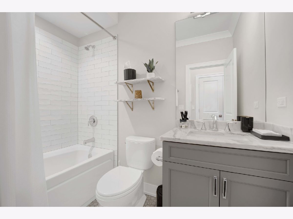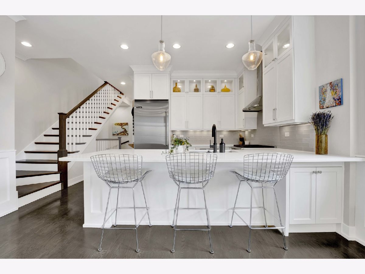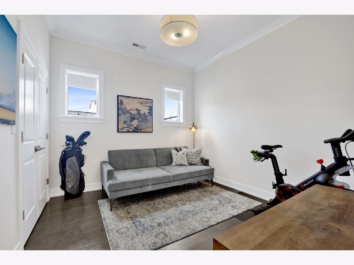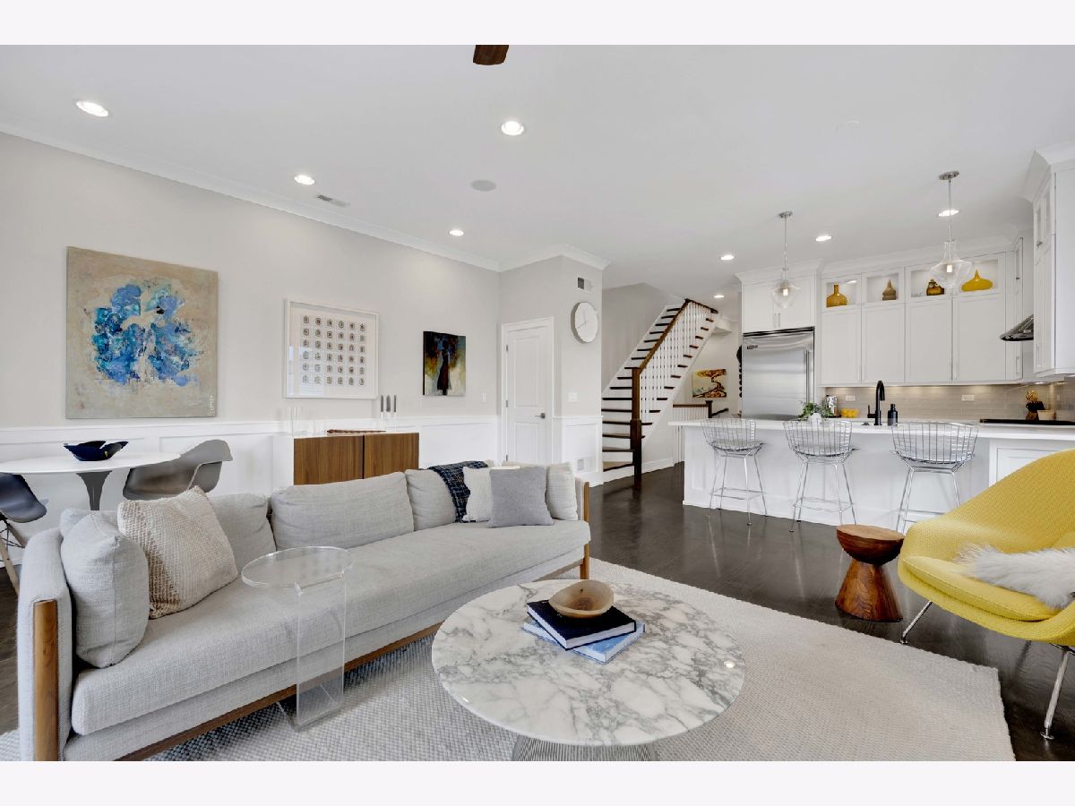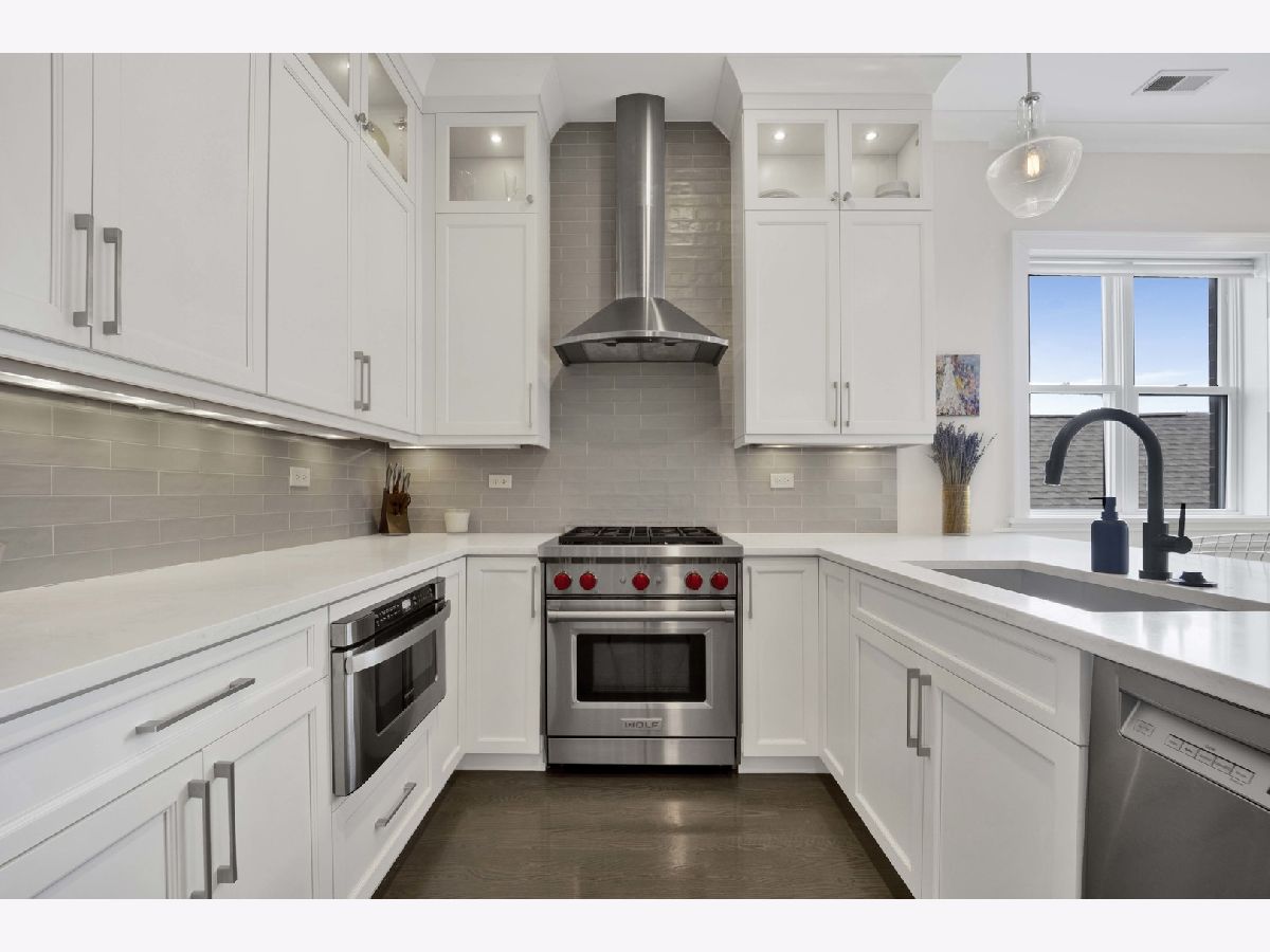 Discover refined city living in this exceptional top-floor 2-bedroom, 2-bath residence with a full outdoor rooftop deck. Perfectly situated on a quiet, tree-lined street, this is just steps from the vibrant heart of the Southport Corridor. Chic and stylish, this beautifully appointed home offers a thoughtfully designed open layout, highlighted by a show-stopping custom kitchen featuring premium Viking, Wolf, and Bosch appliances, sleek quartz countertops, and a designer tile backsplash, all flowing seamlessly into a bright, inviting, and spacious living room with a cozy fireplace, ideal for entertaining. Gracious and sophisticated touches include wainscoting and crown moldings. A rare front terrace extends the living space outdoors, perfect for morning coffee or evening relaxation. The luxurious primary suite serves as a true retreat, complete with a dual vanity, quartz counters, elegant marble flooring, heated floors, an oversized walk-in shower with rain head and steam and a professionally organizes walk-in closet. A generously sized second bedroom and a stunning second bathroom with a deep soaking tub provide both comfort and flexibility for guests or a home office. Interior stairs lead to a rooftop level featuring a built-in prep area with wine fridge and custom cabinetry, opening to a large private deck that is ideal for summer dining and effortless indoor-outdoor entertaining. Additional highlights include rich hardwood floors throughout, custom millwork, and designer lighting. All of this in an unbeatable location within walking distance to the lakefront, parks, restaurants, shopping, and everything Southport has to offer. Garage parking spot and a storage closet on the ground floor are included. WELCOME HOME.