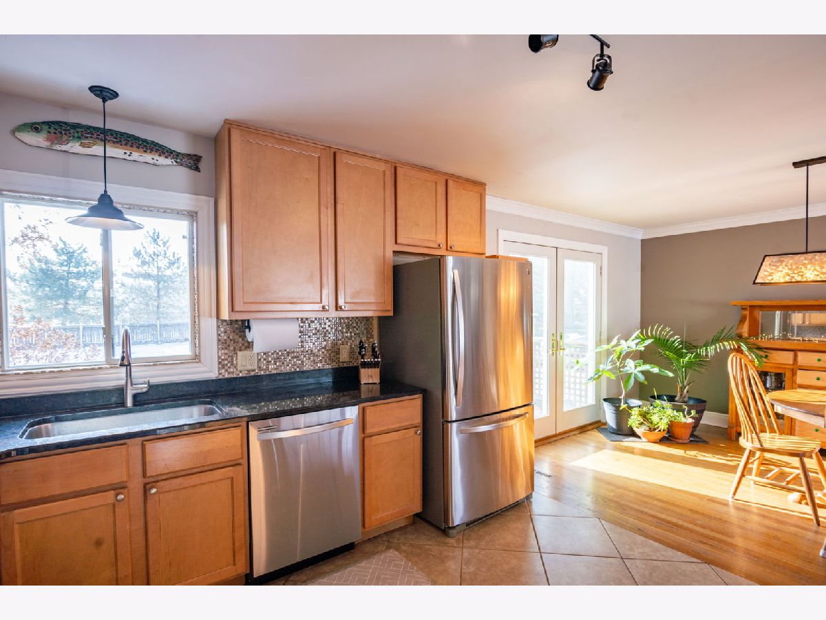 This updated 3 bedroom, 2 bath tri-level delivers a modern farmhouse feel with plenty of flexible living space, including a finished sub basement. The main level features an inviting stone fireplace and an open kitchen with stainless steel appliances, granite counters, maple cabinetry, and a spacious eating area. The lower level offers a cozy second fireplace, tray ceiling with accent lighting, a rec area, a full bath, and direct access to the backyard. The newly finished basement adds even more usable space, ideal for a home gym, playroom, or office. Bedrooms include custom closets and ceiling fans, while the main bath features a rain shower, jetted tub, and skylight. Recent improvements include updated lighting, fresh paint, windows, carpet, refinished hardwood floors, garage doors, landscaping, siding, gutters, mechanicals, a new roof in 2025, new water softener, newer water heater, newer AC, and an EV charging system. Outside, the fenced yard features a newer paver patio, deck, and dog run, creating a great space to relax or entertain, all in a convenient location close to everyday amenities.