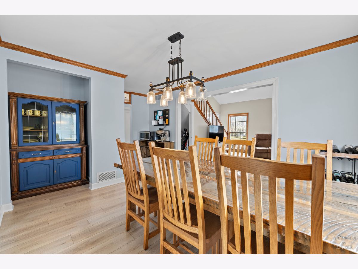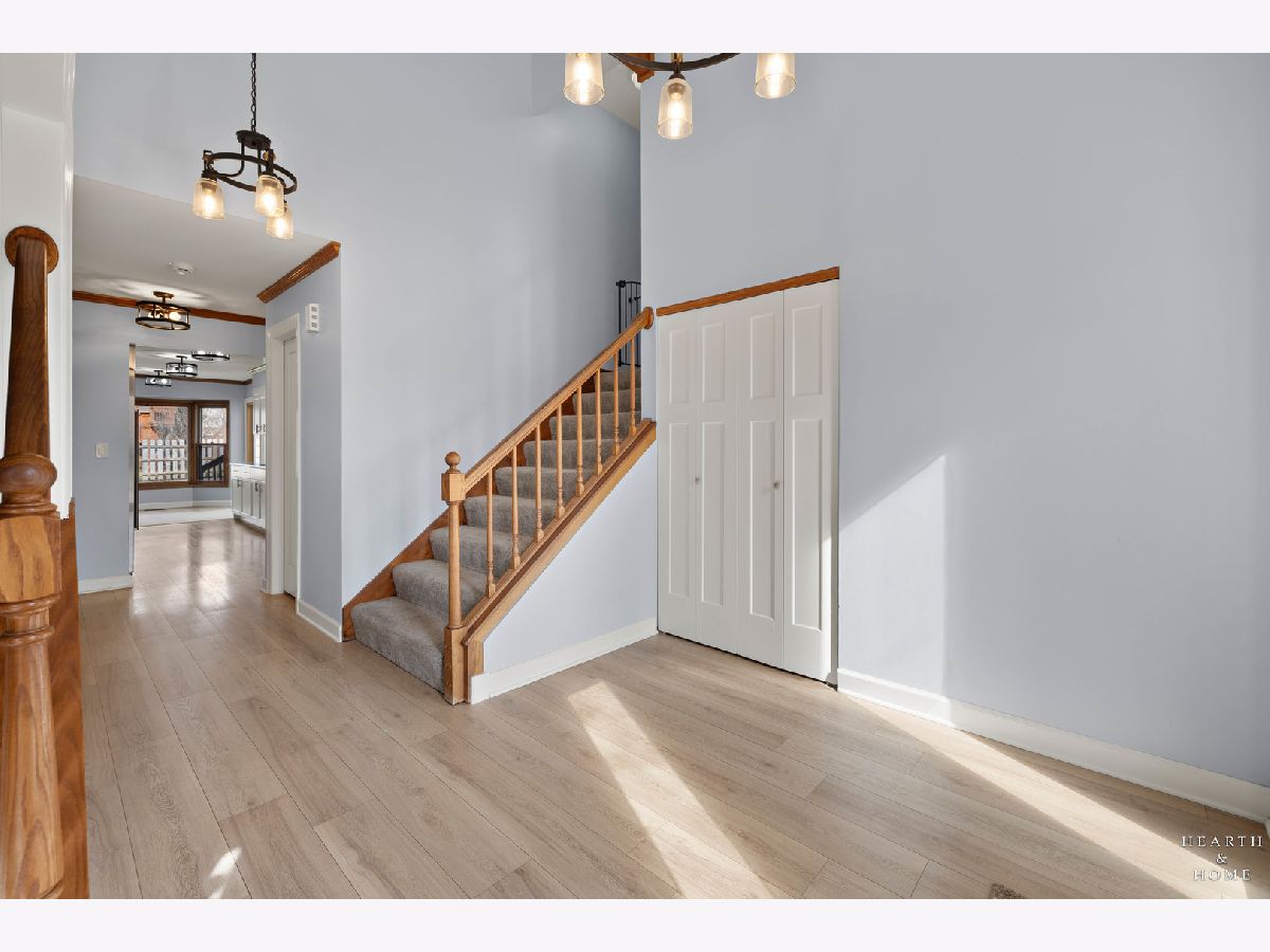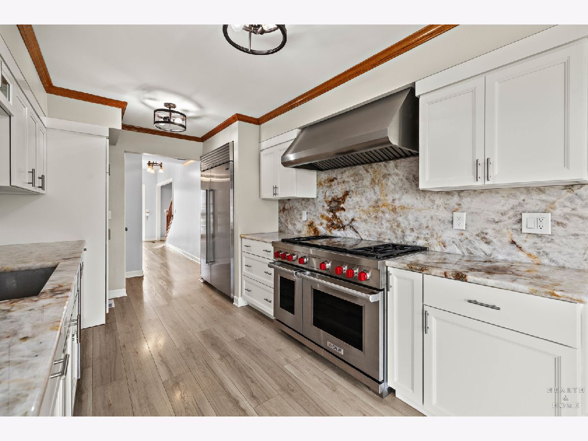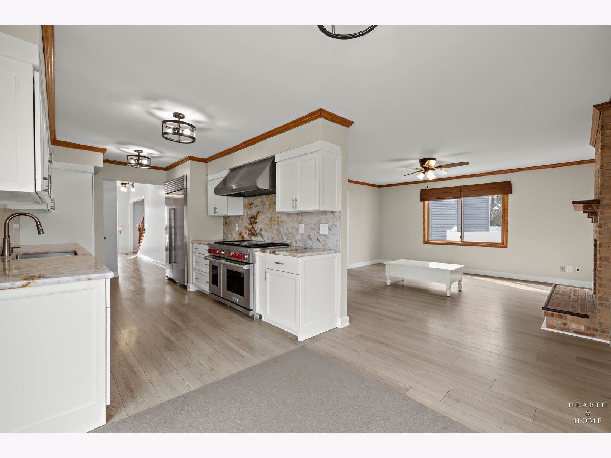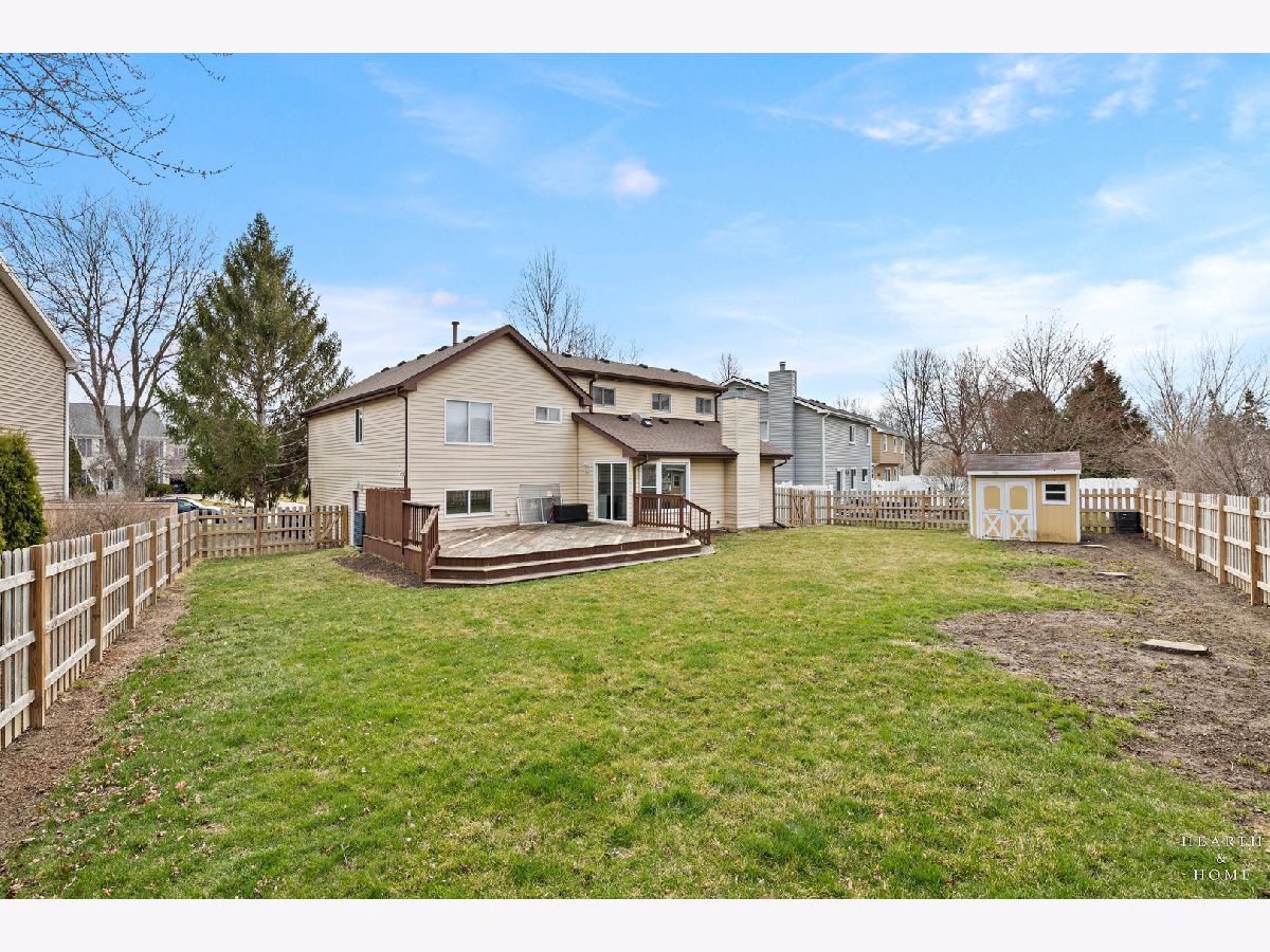 This spacious home offers 5 bedrooms, 3.1 baths, and a 2-car garage with a layout designed for both function and flow. Step inside to high ceilings and a seamless connection between the living and dining areas, creating an open and inviting feel. The kitchen was fully renovated in 2022 and is a true standout, featuring Amish custom cabinetry, Lumix quartzite countertops and backsplash, a Sub-Zero refrigerator, and a 48-inch Wolf range, built for both everyday living and entertaining. The main level also includes a cozy family room with a brick fireplace, a first-floor laundry room, and a versatile office space with built-in cabinets. Upstairs, you'll find a spacious layout with two staircases leading to the second level, adding both convenience and character. The primary suite offers a private retreat with a lit-up vanity, separate shower, drop-in tub, and a large walk-in closet. Recent updates include new LVP flooring and carpet (2021), a new roof (2021), and a new fence (2023). Outside, enjoy a huge fenced backyard with a large deck and shed, perfect for entertaining or relaxing.