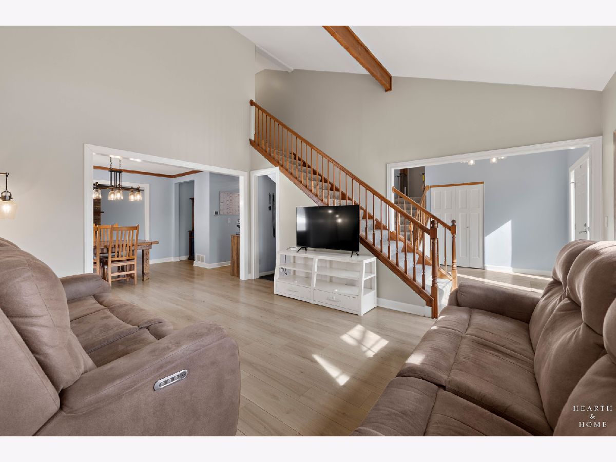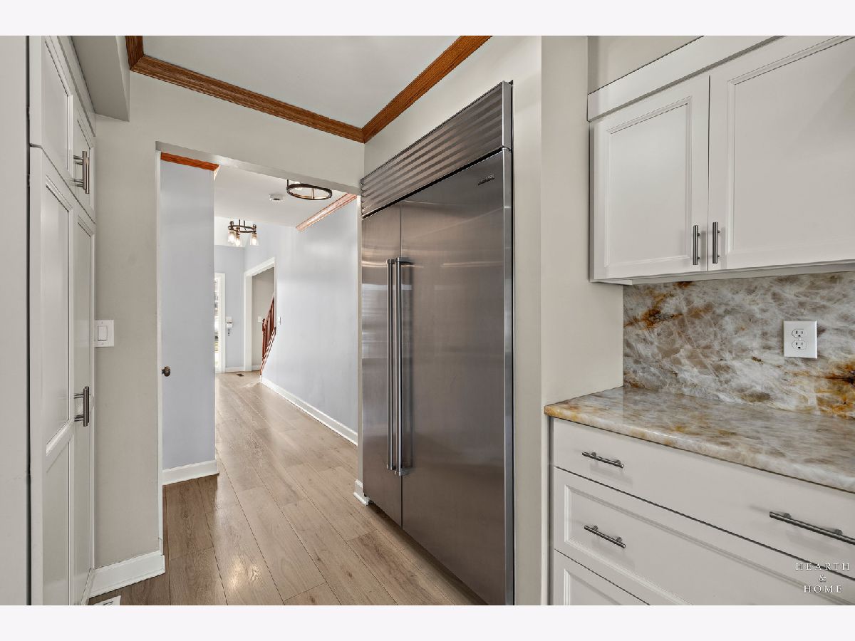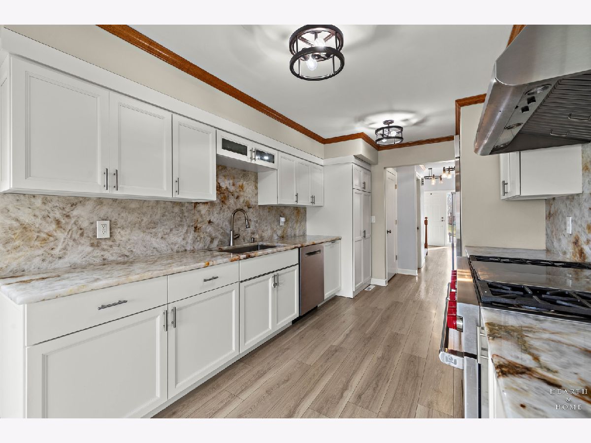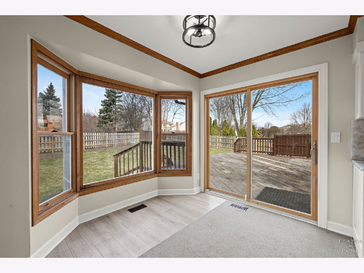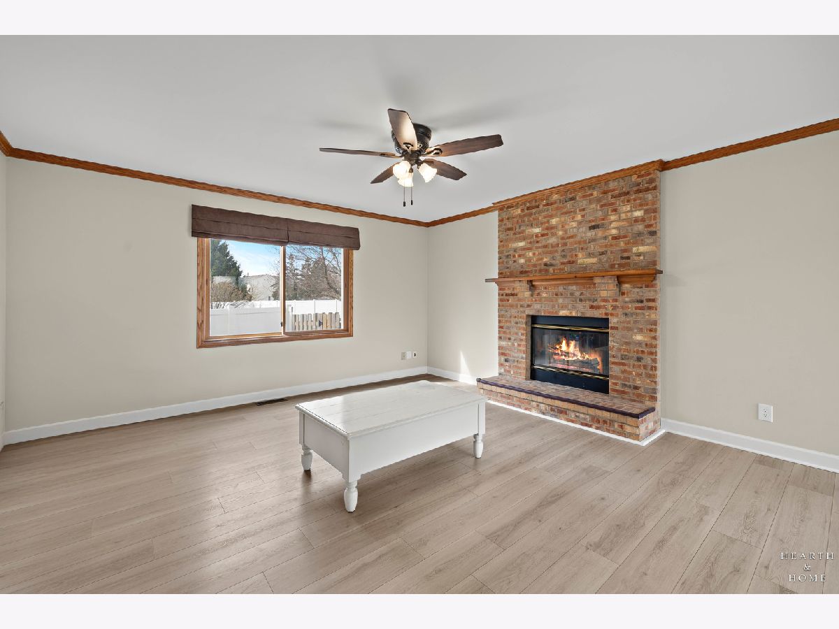 This spacious home offers 5 bedrooms, 3.1 baths, and a 2-car garage with a layout designed for both function and flow. Step inside to high ceilings and a seamless connection between the living and dining areas, creating an open and inviting feel. The kitchen was fully renovated in 2022 and is a true standout, featuring Amish custom cabinetry, Lumix quartzite countertops and backsplash, a Sub-Zero refrigerator, and a 48-inch Wolf range, built for both everyday living and entertaining. The main level also includes a cozy family room with a brick fireplace, a first-floor laundry room, and a versatile office space with built-in cabinets. Upstairs, you'll find a spacious layout with two staircases leading to the second level, adding both convenience and character. The primary suite offers a private retreat with a lit-up vanity, separate shower, drop-in tub, and a large walk-in closet. Recent updates include new LVP flooring and carpet (2021), a new roof (2021), and a new fence (2023). Outside, enjoy a huge fenced backyard with a large deck and shed, perfect for entertaining or relaxing.