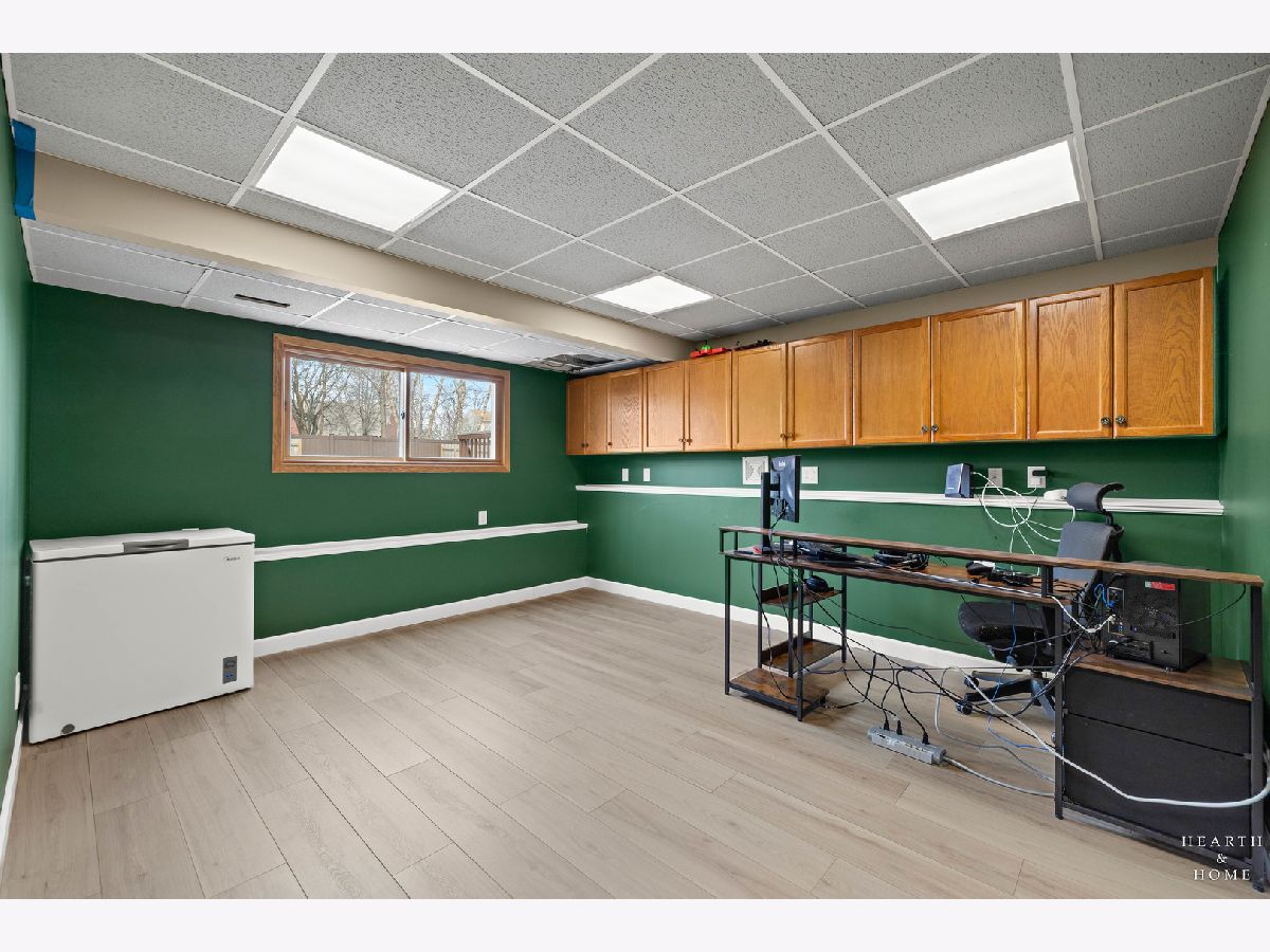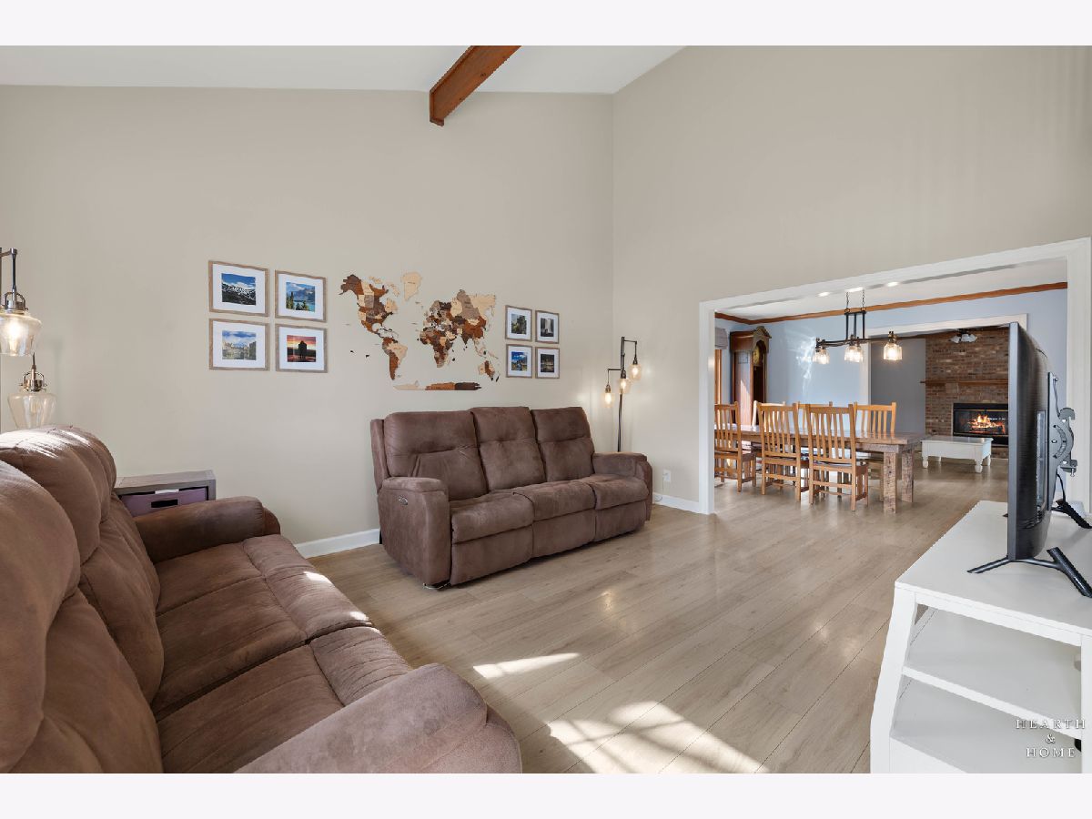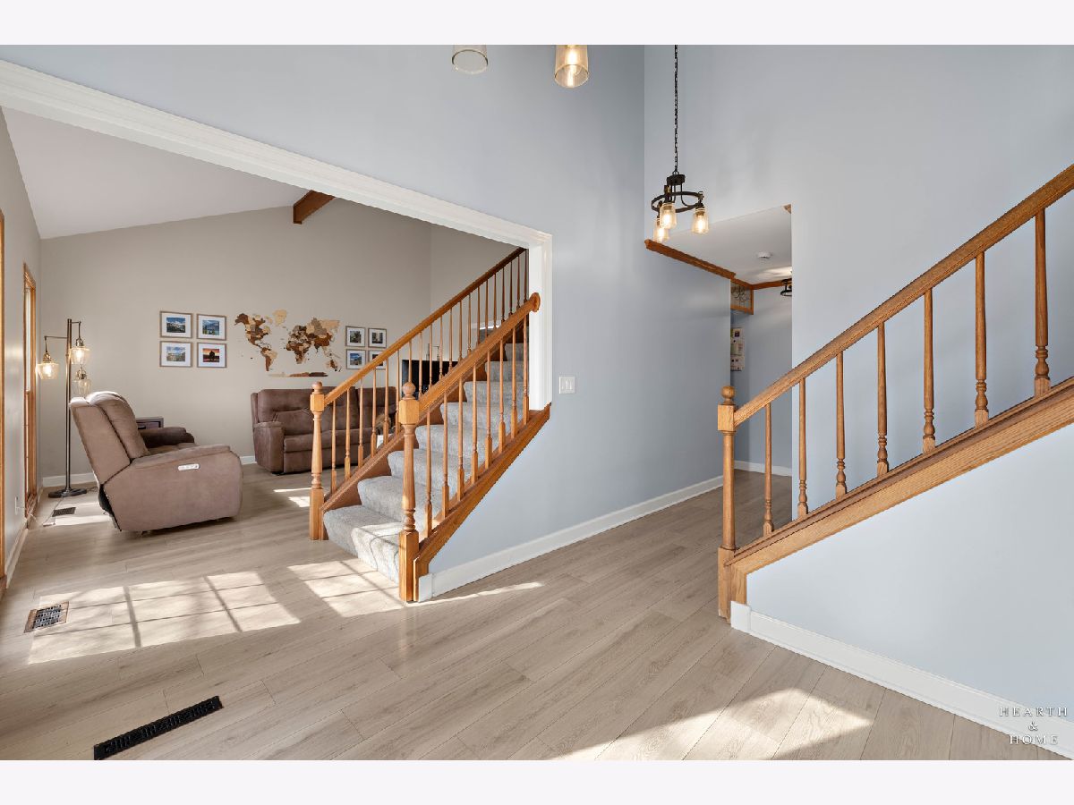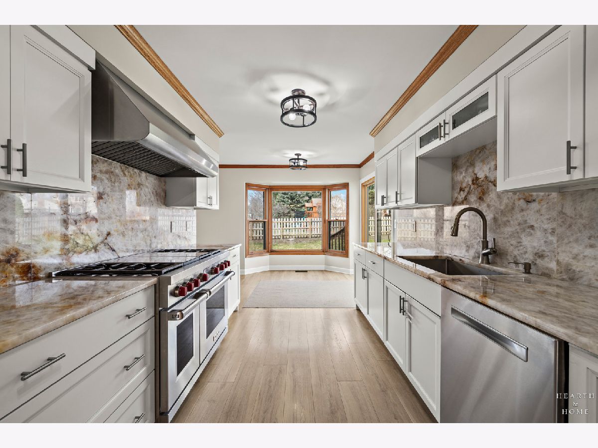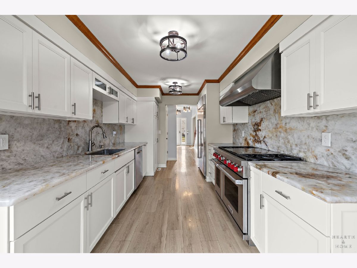 This spacious home offers 5 bedrooms, 3.1 baths, and a 2-car garage with a layout designed for both function and flow. Step inside to high ceilings and a seamless connection between the living and dining areas, creating an open and inviting feel. The kitchen was fully renovated in 2022 and is a true standout, featuring Amish custom cabinetry, Lumix quartzite countertops and backsplash, a Sub-Zero refrigerator, and a 48-inch Wolf range, built for both everyday living and entertaining. The main level also includes a cozy family room with a brick fireplace, a first-floor laundry room, and a versatile office space with built-in cabinets. Upstairs, you'll find a spacious layout with two staircases leading to the second level, adding both convenience and character. The primary suite offers a private retreat with a lit-up vanity, separate shower, drop-in tub, and a large walk-in closet. Recent updates include new LVP flooring and carpet (2021), a new roof (2021), and a new fence (2023). Outside, enjoy a huge fenced backyard with a large deck and shed, perfect for entertaining or relaxing.